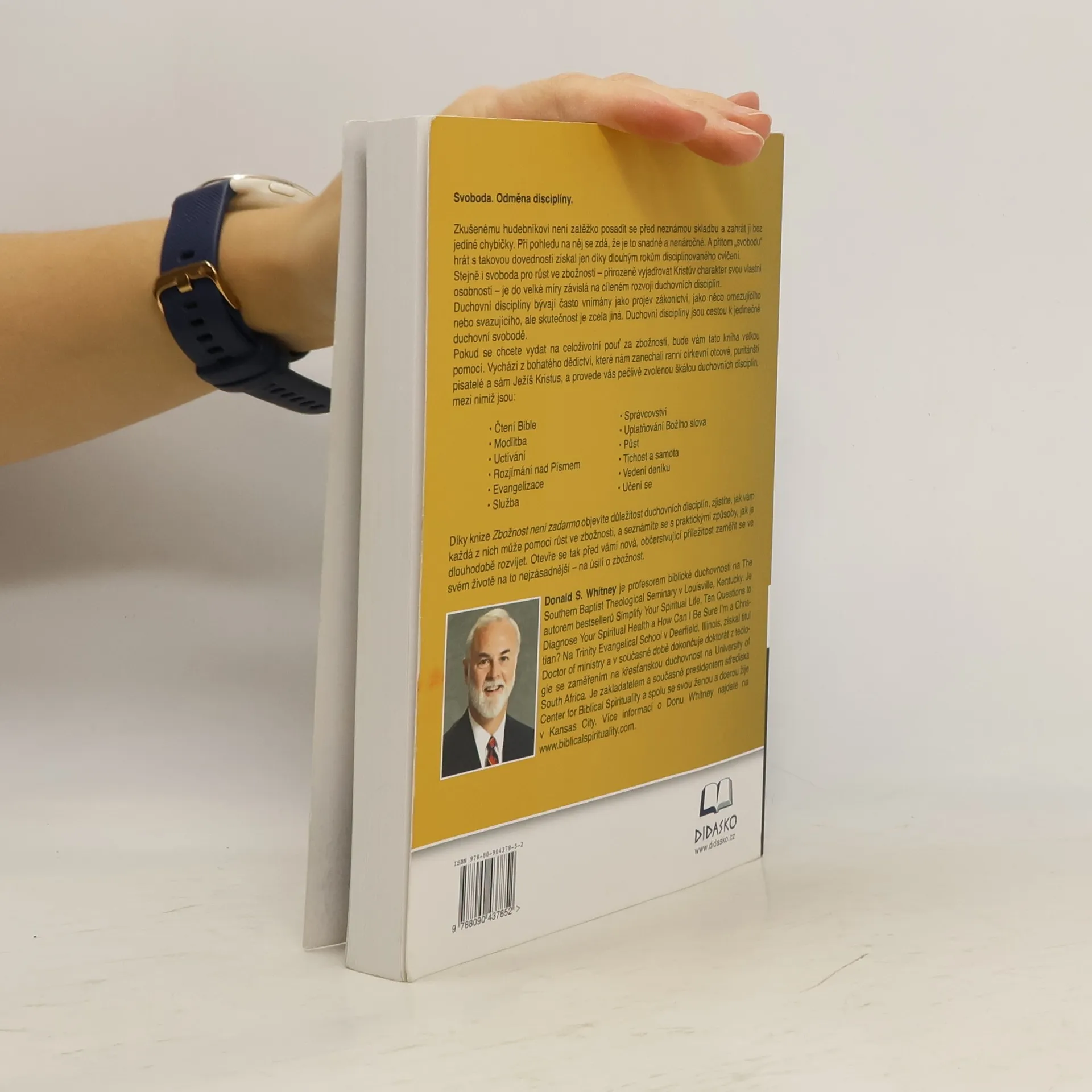 Podtitul: Svoboda, zbožnost, nebo zákonictví? Svoboda je odměnou disciplíny. Zkušenému hudebníkovi není zatěžko posadit se před neznámou skladbu a zahrát ji bez jediné chybičky. Při pohledu na něj se zdá, že je to snadné a nenáročné. „Svobodu“ hrát s takovou dovedností však získal jen díky dlouhým rokům disciplinovaného cvičení. Stejně i svoboda pro růst ve zbožnosti – přirozeně svou osobností vyjadřovat Kristův charakter – je do velké míry závislá na cíleném rozvoji duchovních disciplín. Ty bývají často vnímány jako projev zákonictví, jako něco omezujícího nebo svazujícího, ale ve skutečnosti jsou cestou k duchovní svobodě. Pokud se chcete vydat na celoživotní pouť za zbožností, bude vám tato kniha velkou pomocí.