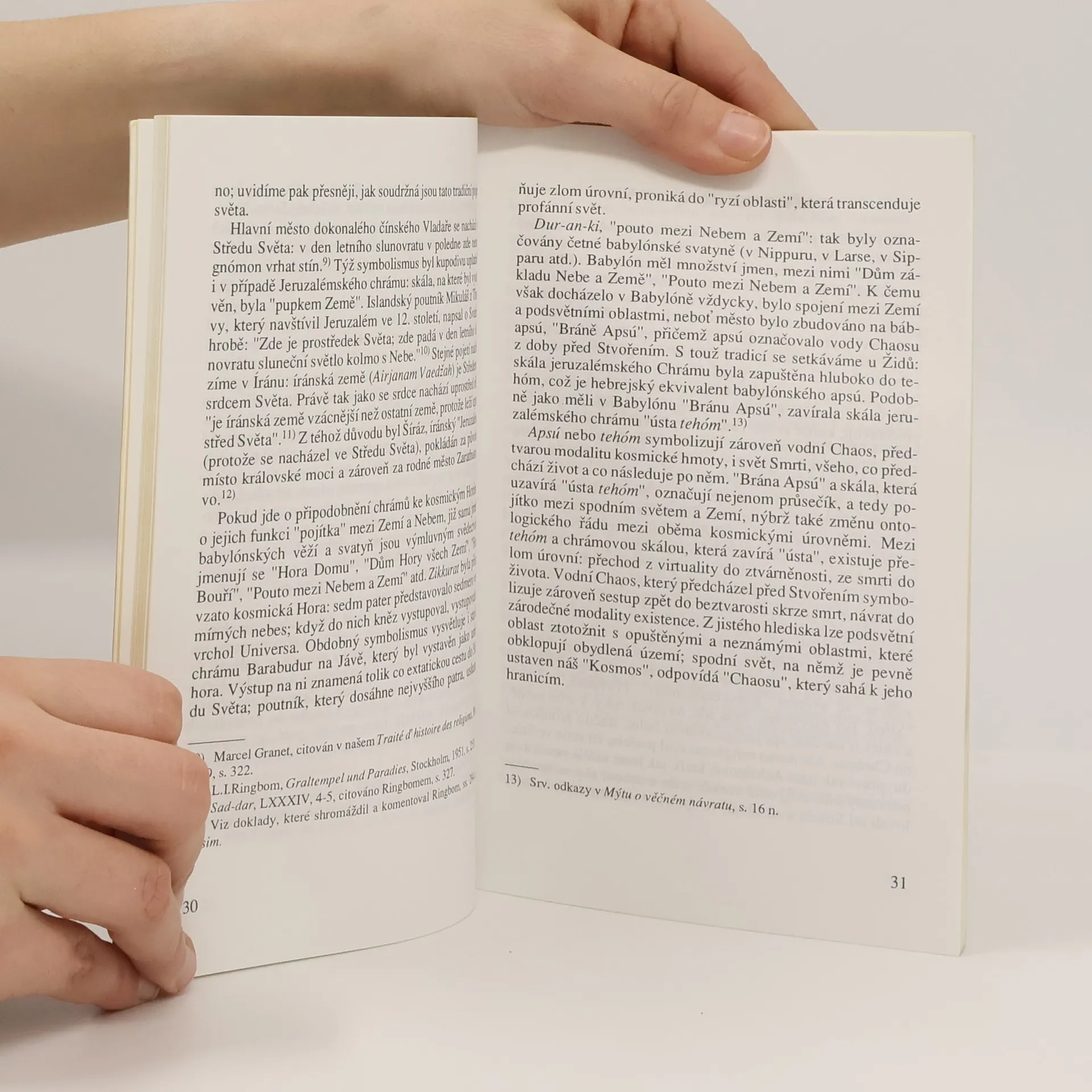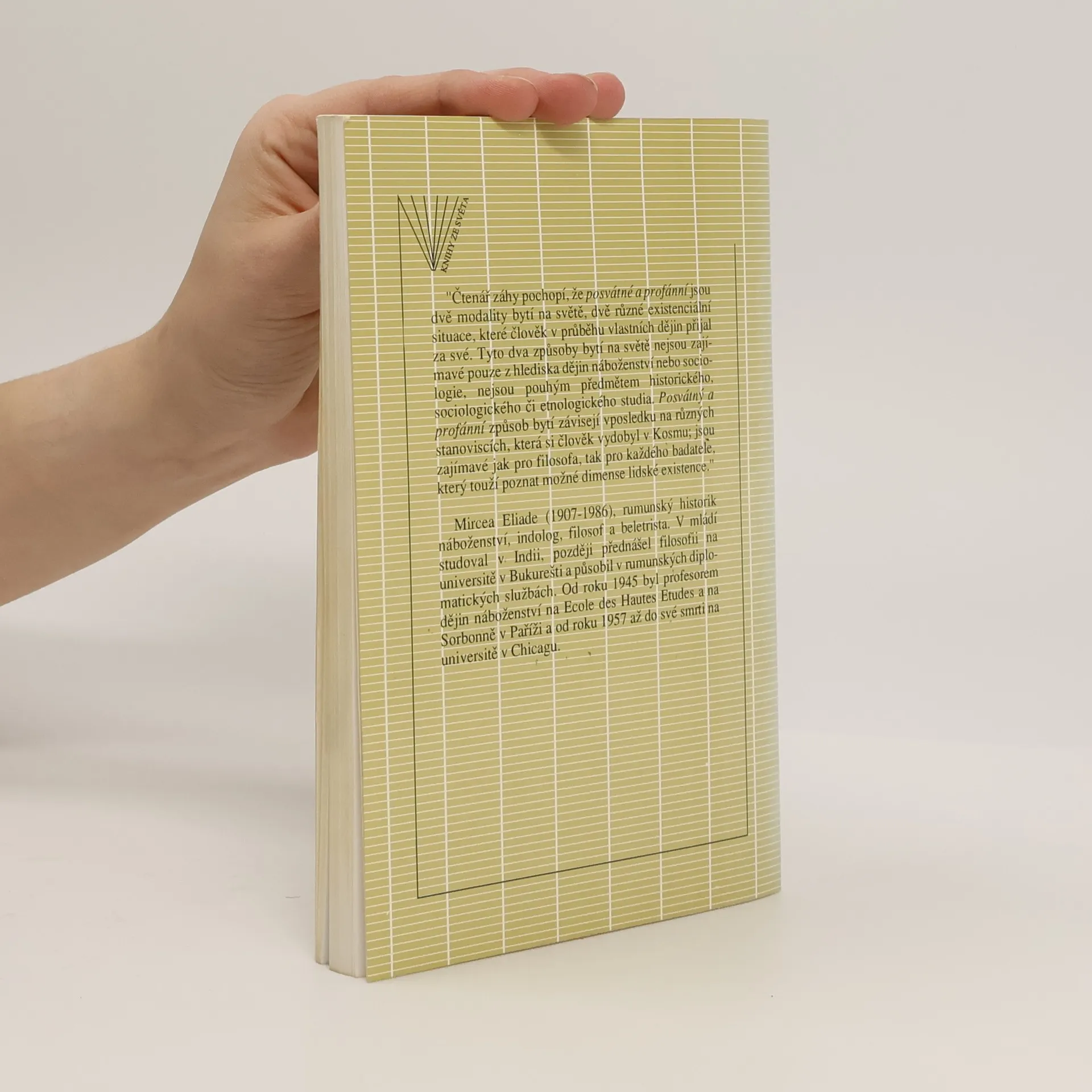 Obecný úvod do fenomenologického a historického studia náboženství z pera klasika moderní religionistiky určený pro široké publikum. Jednotlivé kapitoly knihy pojednávají o vztahu posvátného a profánního na rovině prostoru, času, přírody a lidského života.