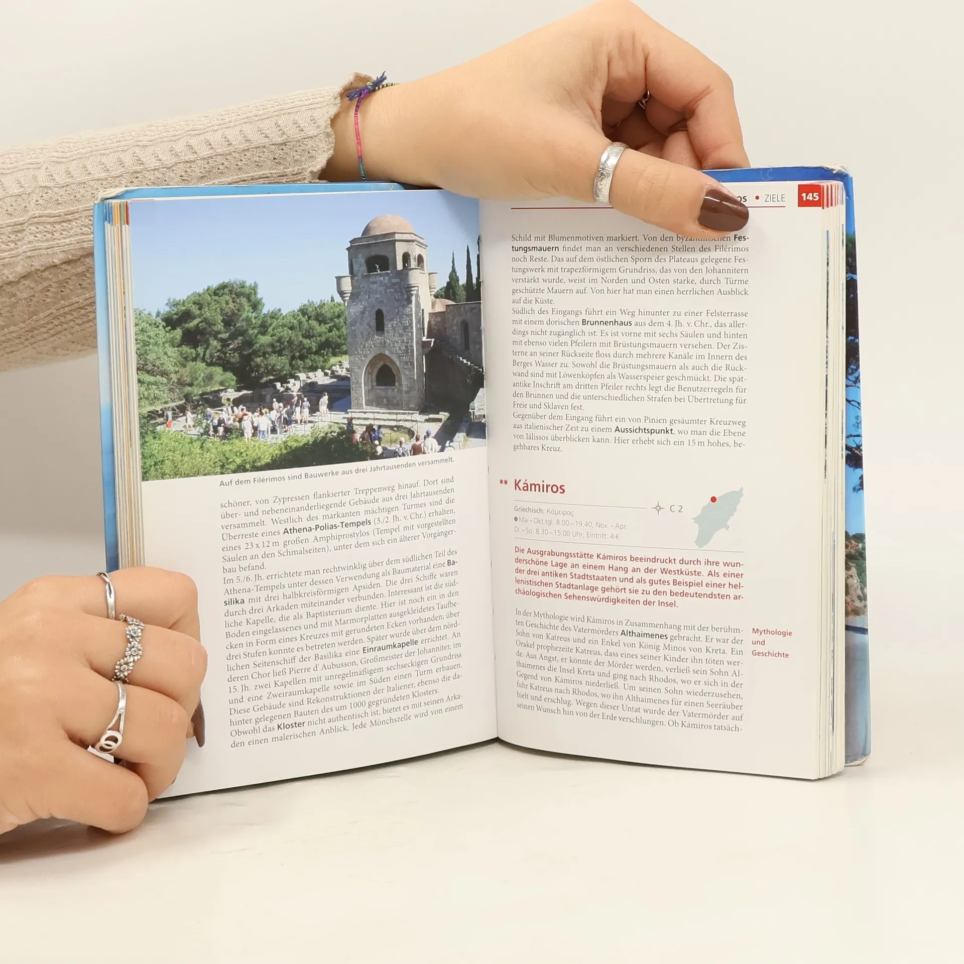Mittelpunkt der Erde Der Baedeker Rhodos begleitet zu ruhigen, kleinen Badebuchten oder in turbulentes Nachtleben, führt in die Antike, zu mittelalterlichen Burgen und altehrwürdigen Klöster, stillen Bergdörfer und Weinkellereien. Das Kapitel Hintergrund beschäftigt sich mit Wissenswertem über Rhodos, mit Land und Leuten, ihre Geschichte und Gegenwart, Wirtschaft und Gesellschaft. Was sind die typischen Gerichte und wo kann man sie probieren? Was kann man mit Kindern unternehmen? Antworten auf diese und viele andere Fragen, gibt das Kapitel "Erleben und Genießen". Entdecken Sie Rhodos unterwegs: Spannende Touren führen über die ganze Insel an nur einem Tag, zu den Johanniterburgen oder durch die abendliche Ritterstadt. Sportbegeisterte werden ihre helle Freude an einer Mountainbike-Tour im Süden der Insel haben. Orte, an denen man nicht einfach vorbeigehen sollte, sind im großen Kapitel Sehenswürdigkeiten von A - Z ausführlich beschrieben. Infografiken zeigen u.a. Rhodos auf einen Blick, Poseidonios und Giganten. Eine einzigartige 3D-Darstellung gibt einen lebendigen Einblick in den Koloss von Rhodos. Baedeker-Tipps verraten, wo man traditionelle Keramik kaufen, Strandfundsachen preiswert in Silber fassen lassen kann und warum die kleine Insel Symi mit schönen Wanderungen lockt.
