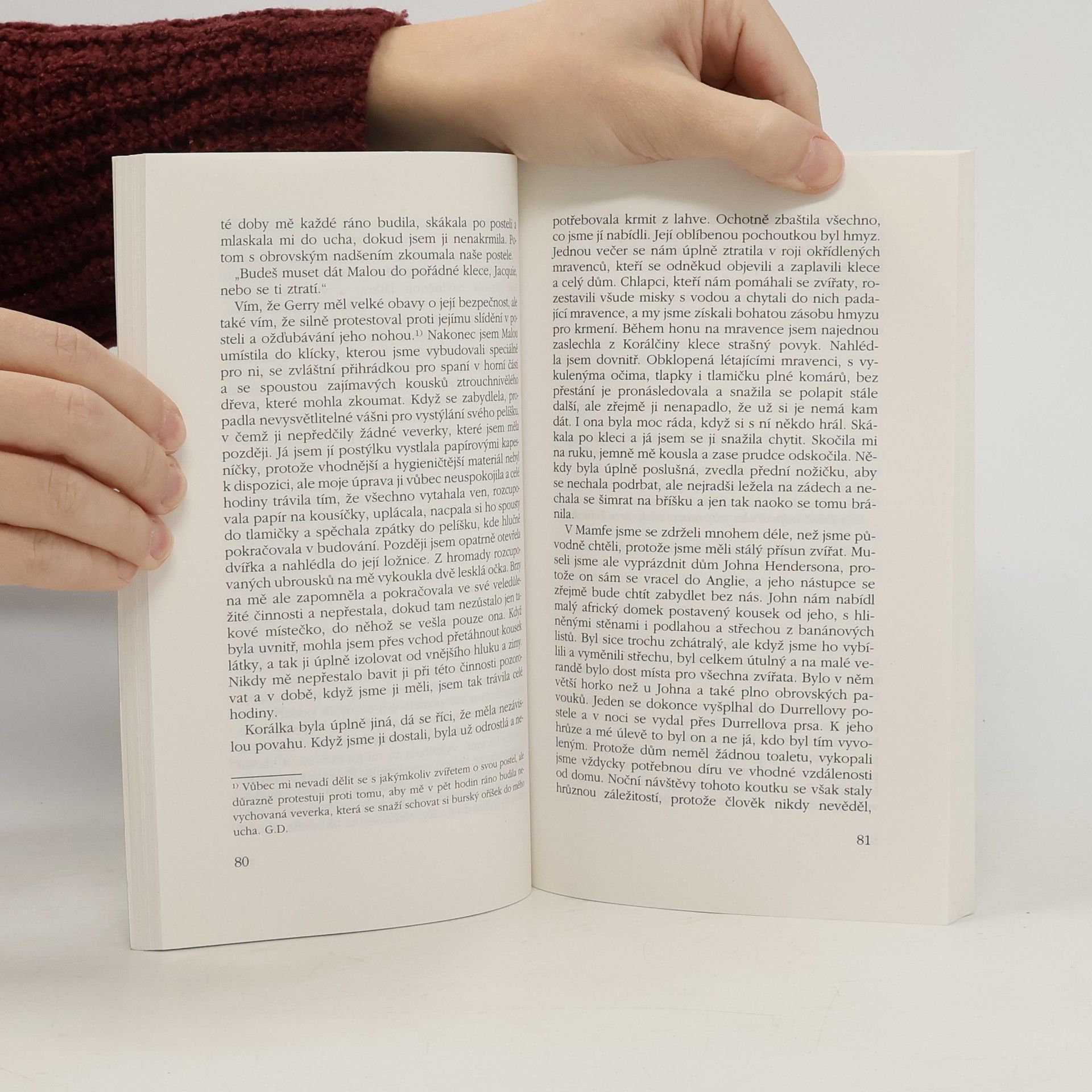 Paní Jacquie Durrellová vypráví s humorným nadhledem o tom, že být manželkou známého přírodovědce a spisovatele není vůbec jednoduché. Dokonce si není zcela jista, zda přední místo po manželově boku nepatří více než jí hýčkaným „zvířátkům“. Pan Durrell ovšem všechny vážné i nevážné příhody uvádí na pravou míru v poznámkách pod čarou. Výsledkem je půvabné čtení, které udělá radost všem milovníkům přírody i příznivcům Geralda Durrella.