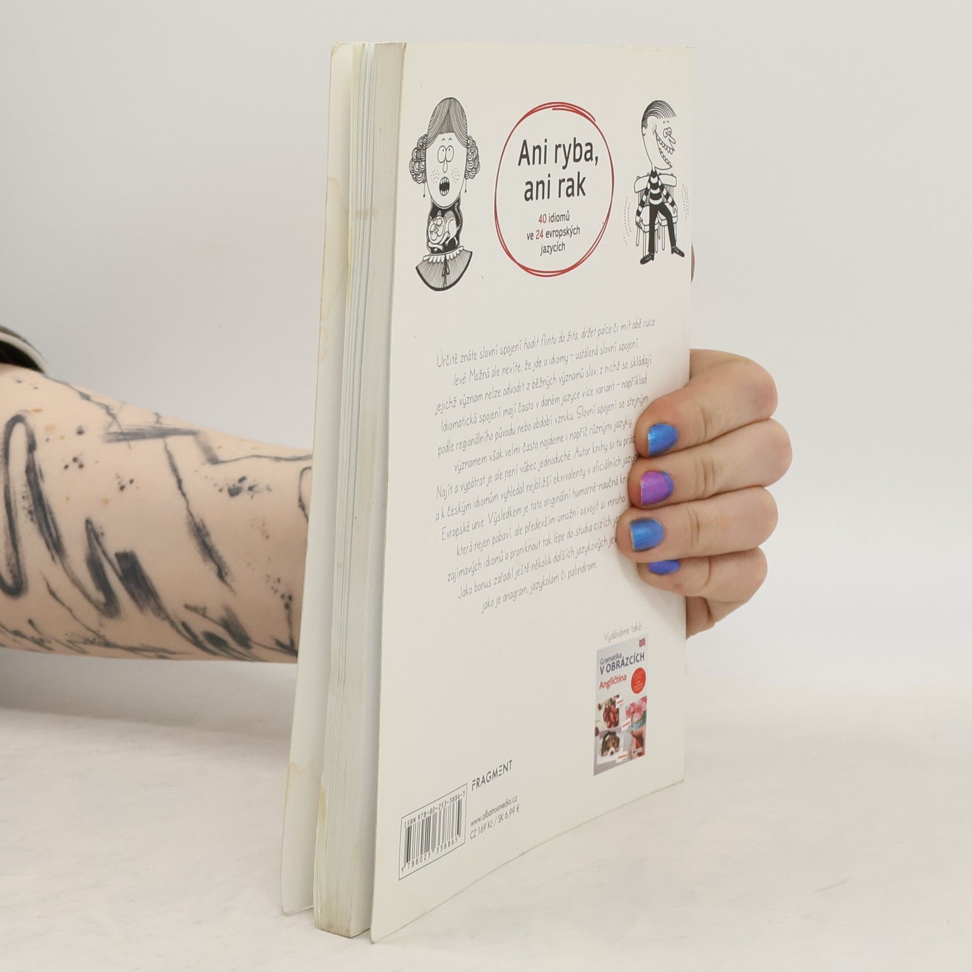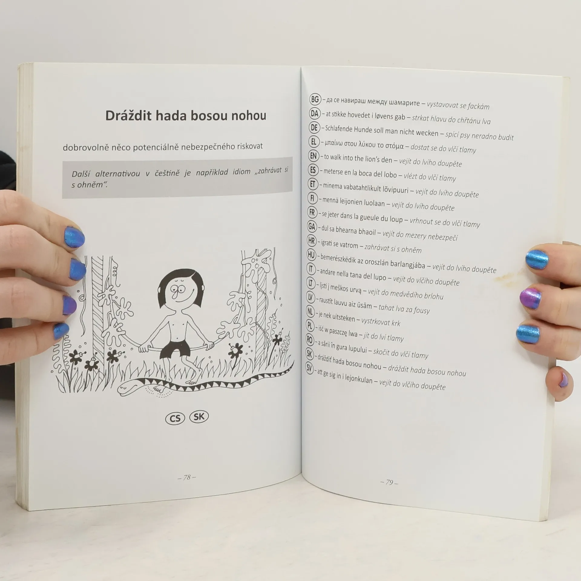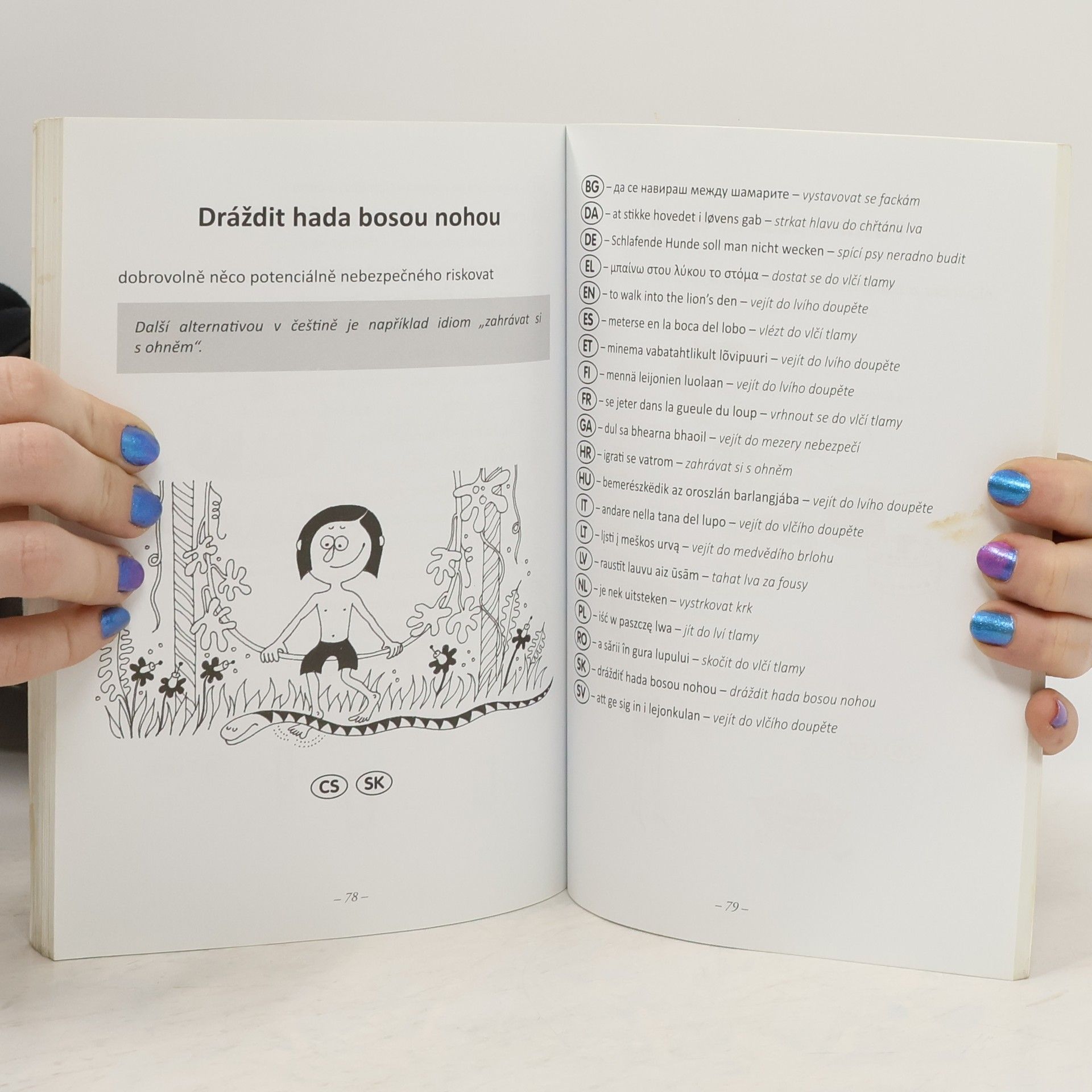 Určitě znáte slovní spojení „hodit flintu do žita“ či „držet palce.“ Možná ale nevíte, že jde o ustálená slovní spojení – idiomy. Idiomatická spojení mají často v daném jazyce více variant, velmi často je však najdeme i napříč různými jazyky. Autor knihy dohledal k českým idiomům nejbližší ekvivalenty v oficiálních jazycích Evropské unie a sestavil tuto humorně-naučnou knížku, která pobaví a zároveň umožní proniknout lépe do studia cizích jazyků.