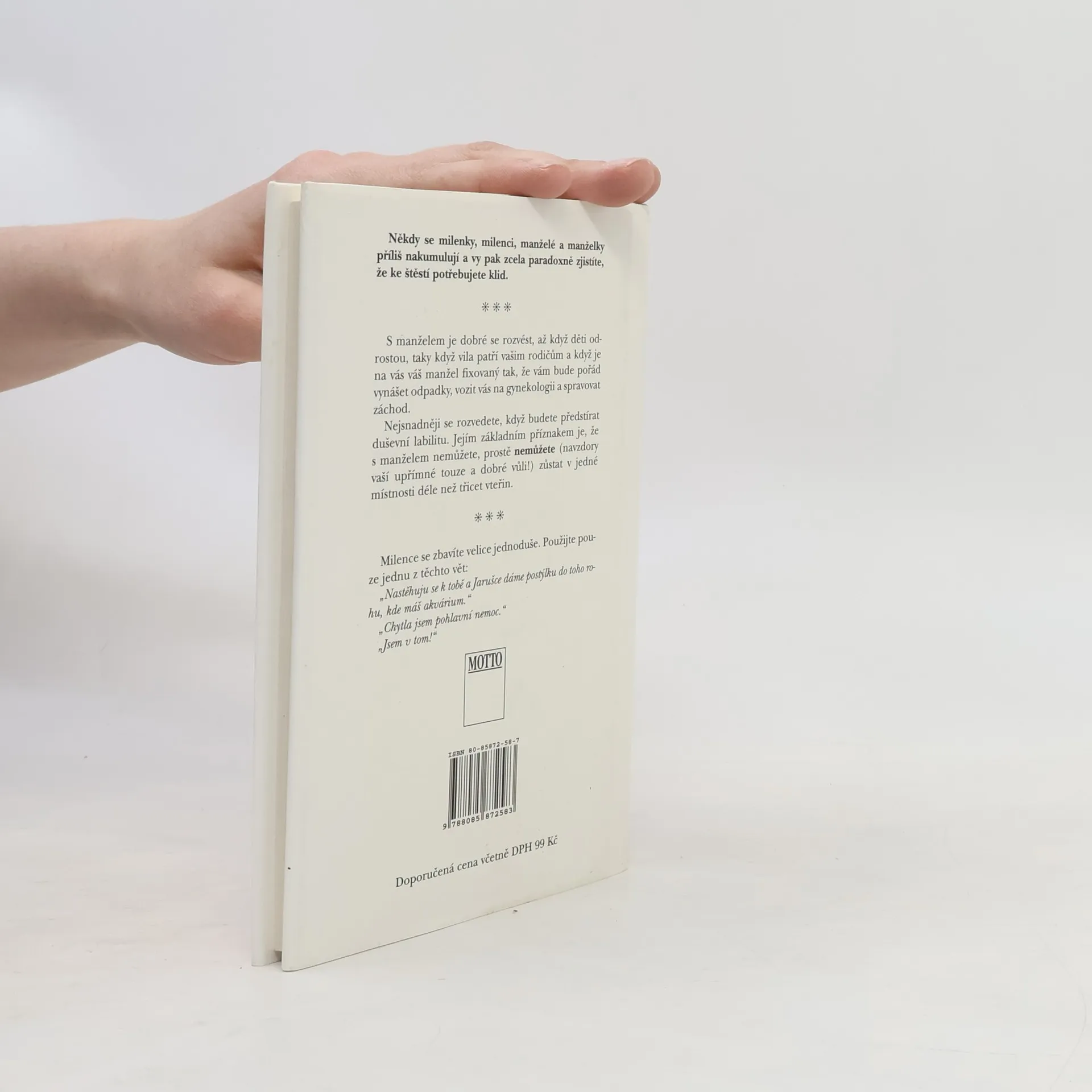 Lehké poznatky, vyslechnuté osudy a rady, které si dávají kamarádky, kamarádi, rodiče, děti a známí. Neberte všechno, co je na papíře, vážně. Slova mají totiž skutečnou vážnost jen tehdy, když jde o petice, o závěť a o smlouvy...