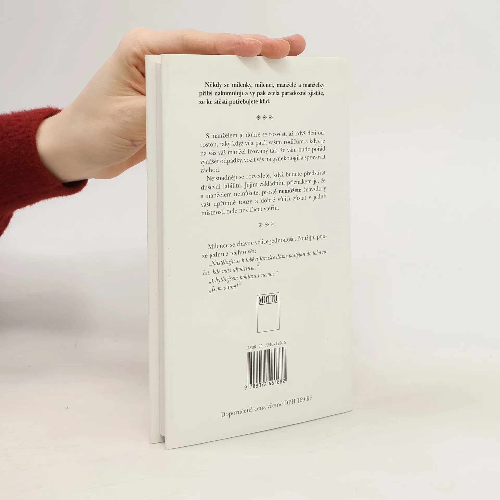 Lehké poznatky, vyslechnuté osudy a rady, které si dávají kamarádky, kamarádi, rodiče, děti a známí. Neberte všechno, co je na papíře, vážně. Slova mají totiž skutečnou vážnost jen tehdy, když jde o petice, o závěť a o smlouvy...