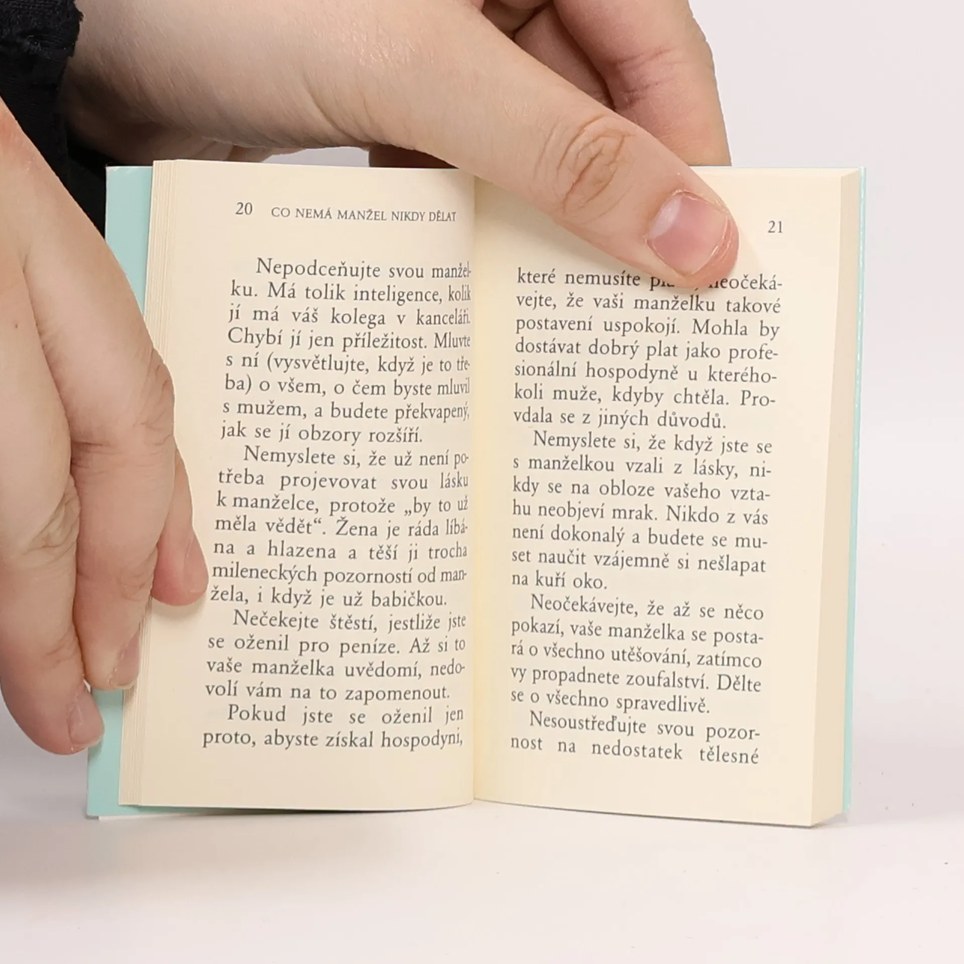 Tato kniha radí mužům, čeho všeho se mají v manželství vystříhat. Rady se týkají všeobecných domácích zvyků, jako jsou například osobní vztahy, žárlivost, finance, domácnost, zábava s přáteli, společné trávení svátků, otázky zdraví, oblečení, koníčků, stravy nebo také správné výchovy dětí. Kniha je pojatá s typickým anglickým humorem a v mnoha uvedených situacích se určitě najdete.