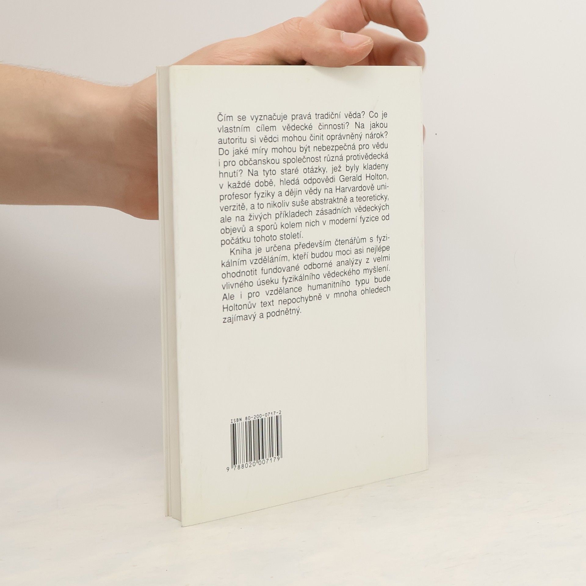 Čím se vyznačuje pravá tradiční věda? Co je vlastním cílem vědecké činnosti? Na jakou autoritu si vědci mohou činit oprávněný nárok? Do jaké míry mohou být nebezpečná pro vědu i pro občanskou společnost různá protivědecká hnutí? Na tyto staré otázky, jež byly kladeny v každé době, hledá odpovědi Gerald Holton, profesor fyziky a dějin vědy na Harvardově univerzitě, a to nikoliv suše abstraktně a teoreticky, ale na živých příkladech zásadních vědeckých objevů a sporů kolem nich v moderní fyzice od počátku tohoto století. Kniha je určena především čtenářům s fyzikálním vzděláním, kteří budou moci asi nejlépe ohodnotit fundované odborné analýzy z velmi vlivného úseku fyzikálního vědeckého myšlení. Ale i pro vzdělance humanitního typu bude Holtonův text nepochybně v mnoha ohledech zajímavý a podnětný.