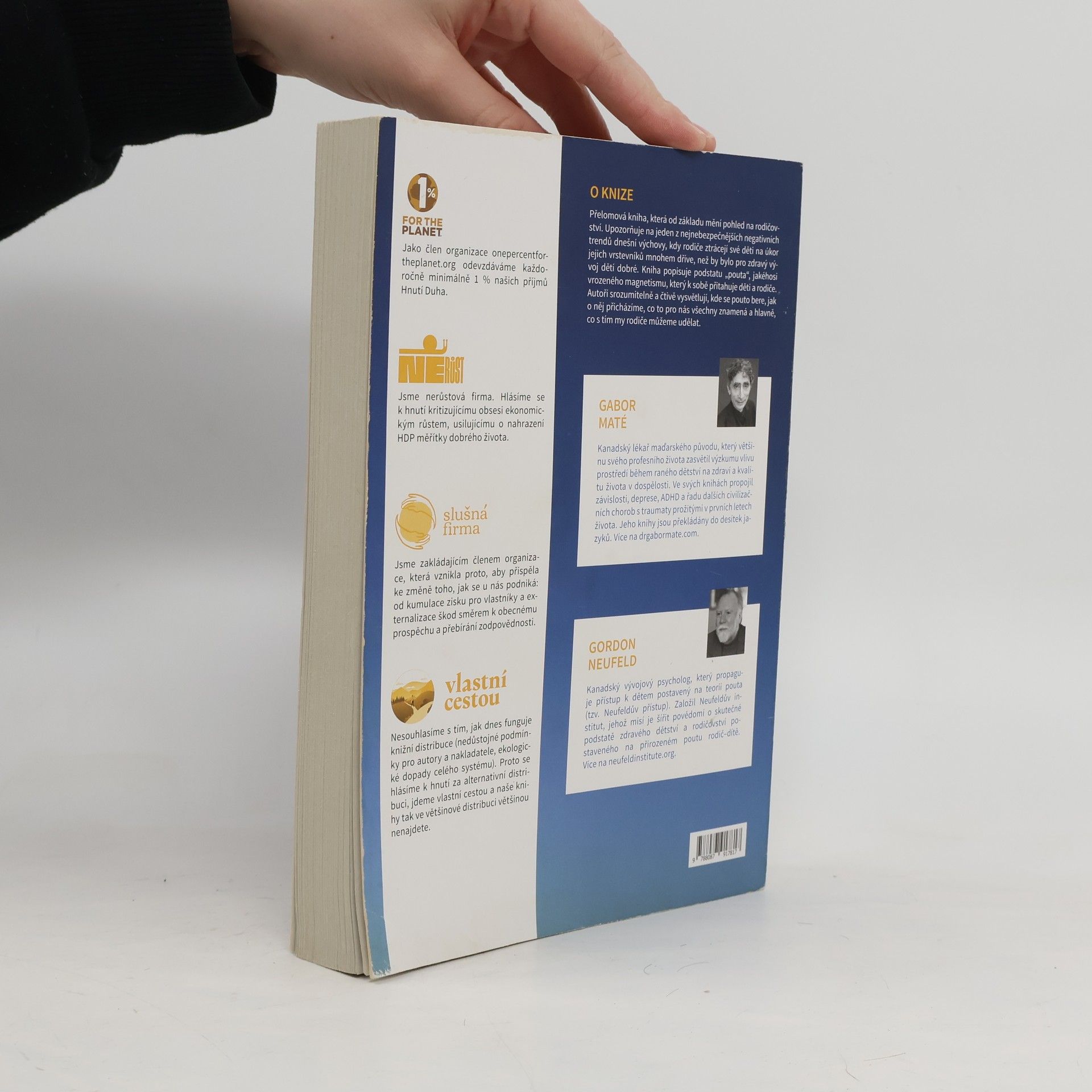 Přelomová kniha, u které bychom si přáli, aby si jí přečetlo alespoň deset procent rodičů v naší zemi. Jsme přesvědčení, že pokud by se tak stalo, kámen by nezůstal na kameni. Upozorňuje totiž na jeden z nejnebezpečnějších negativních trendů dnešní výchovy, a to že rodiče ztrácejí v průměru okolo sedmého roku věku své děti na úkor jejich vrstevníků. Kniha popisuje podstatu pouta, toho kde se bere, jak o něj přicházíme a hlavně, co s ním.