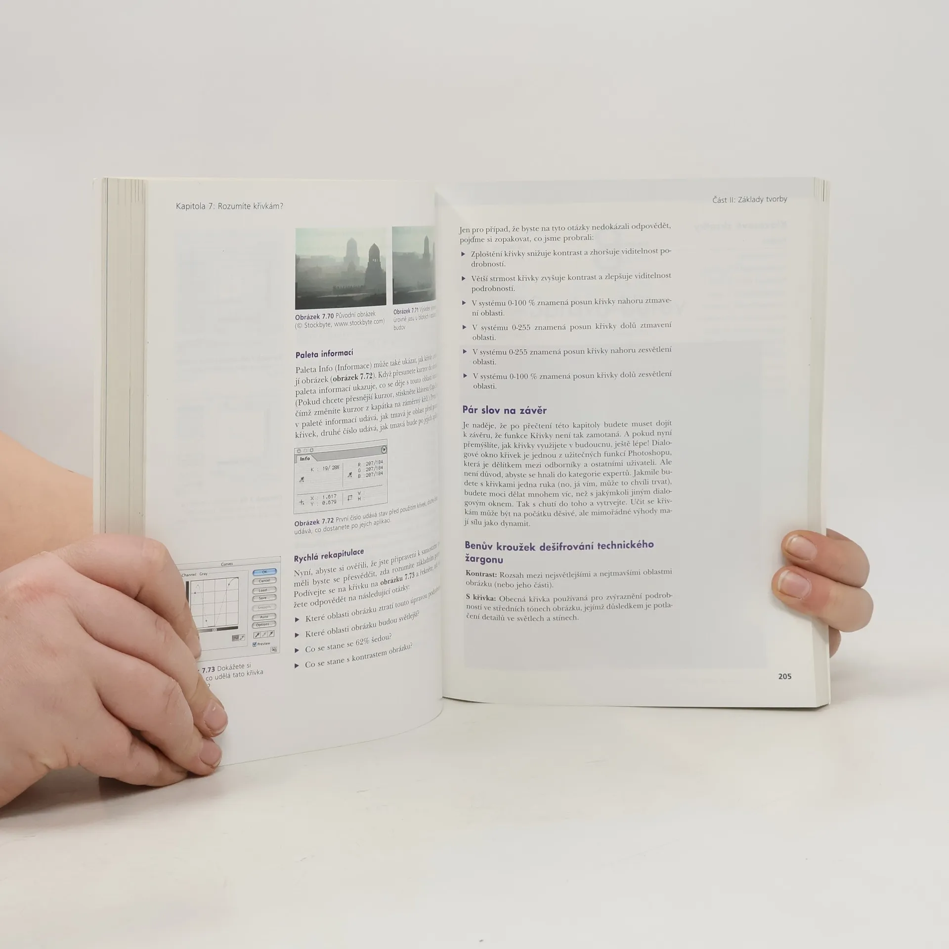 S touto knihou se českým čtenářům poprvé dostává do rukou překlad díla významného grafika a školitele z produkce vydavatelství Adobe Press. Cílem autora je mnohem víc, než jen poskytnout vám návody ve stylu „krok za krokem“ nebo vyčerpávající referenci. Chce čtenáře vést od slepého následování návodů k úrovni, kdy budou Photoshopu opravdu rozumět, a tak budou schopni hladce využít jeho schopností k realizaci svých vizí a nápadů. Kniha je určena pro uživatele obou platforem, Windows i Macintosh, a popisuje jak US verzi, tak i CE a CZ. Nepředpokládá žádné předchozí znalosti Photoshopu a věnuje se všem jeho funkcím, ovšem z hlediska jejich praktického použití. Z obsahu: Slabikář nástrojů a palet Práce s výběry a s vrstvami Jak na rozlišení Rozumíte křivkám? Správa a korekce barev Kanály Retuše a vylepšování Text a pozadí Photoshop a web Animace Optimalizace