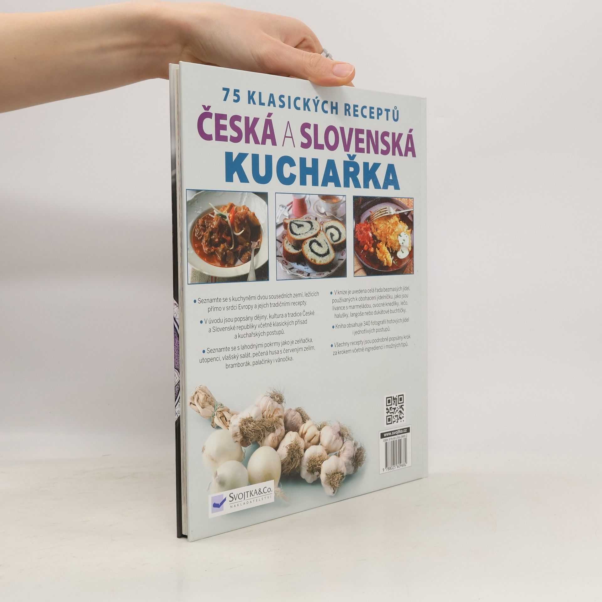 Stravovací zvyklosti u nás a na Slovensku do značné míry utvářely vlivy z okolních národů. Kuchyně obou zemí proto byly velmi výrazně ovlivněny svojí polohou. Slovensko bylo dlouhou dobu pod nadvládou Maďarů, jednalo se tedy o nejsilnější zahraniční vliv na slovenskou kuchyni. České země zase byly dlouho pod vládou Němců a Rakušanů, a právě odtud pochází obliba kysaného zelí, brambor, knedlíků a masa v tradiční české kuchyni. Přesto mají kuchyně obou zemí své typické rysy a charakteristická jídla. Tato jedinečná kuchařka obsahuje 75 klasických receptů - od polévek, předkrmů a chuťovek přes úpravu masa a přípravu sladkých i vegetariánských jídel až po přípravu dezertů a pečiva. Recepty jsou přesně rozepsány a doprovází je 340 názorných barevných fotografií, takže i kuchař-začátečník přípravu jídel hravě zvládne. Chcete se naučit uvařit poctivou gulášovou polévku, upéct bramboráky, naložit utopence, připravit kuře na paprice, plněnou papriku, segedínský guláš, koprovou omáčku, halušky, nudle s mákem, langoše, lívance, jablečný štrúdl nebo ovocné knedlíky? S touto kuchařkou to bude hračka! Překvapte své partnery, rodiče nebo kamarády svým kuchařským uměním. Příprava klasických českých a slovenských jídel nemusí být výsadou jen našich babiček!