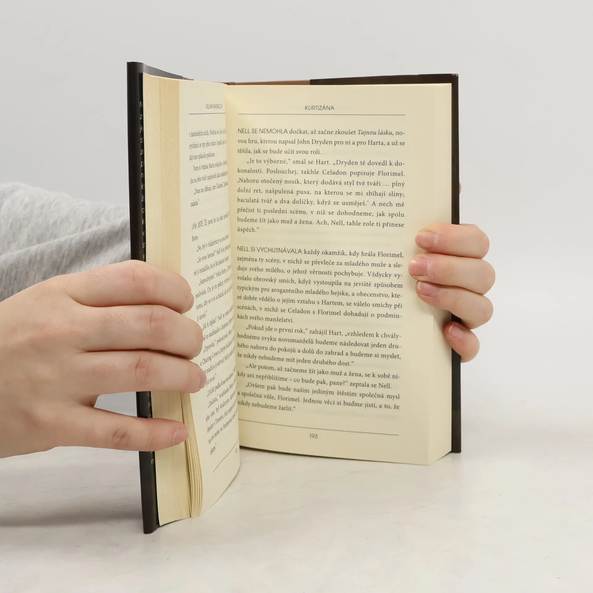 Nell Gwynnová, hrdinka románu Gillian Bagwellové, je historická postava. Žila v Anglii v druhé polovině 17. století. Pocházela z velmi chudých poměrů, které ji donutily už v raném mládí se živit prostitucí. Ale její krása a herecký talent, především komediální, ji brzy přivedly na jeviště mezi herce divadelní společnosti Králových služebníků. Až do výnosu krále Karla II. mohli ženské úlohy krát pouze mladí muž,i takže Nell patřila mezi první ženyherečky v Anglii. V krátké době se stala nejen miláčkem obecenstva, ale získala i pozornost krále Karla. Byla jeho dlouholetou milenkou, porodila mu dva syny a stala se součástí společenského života tehdejšího Londýna, jak o tom svědčí i historické dokumenty. Všechny hlavní postavy, i velká část vedlejších postav, jsou osoby, které opravdu v té době v Londýně žily. Kniha nejen barvitě líčí životní osudy oblíbené herečky, od ponižujícího života v nevěstinci až po její vzestup mezi společenskou smetánku, ale na jejich pozadí i významné události té doby – morovou ránu a velký požár Londýna.