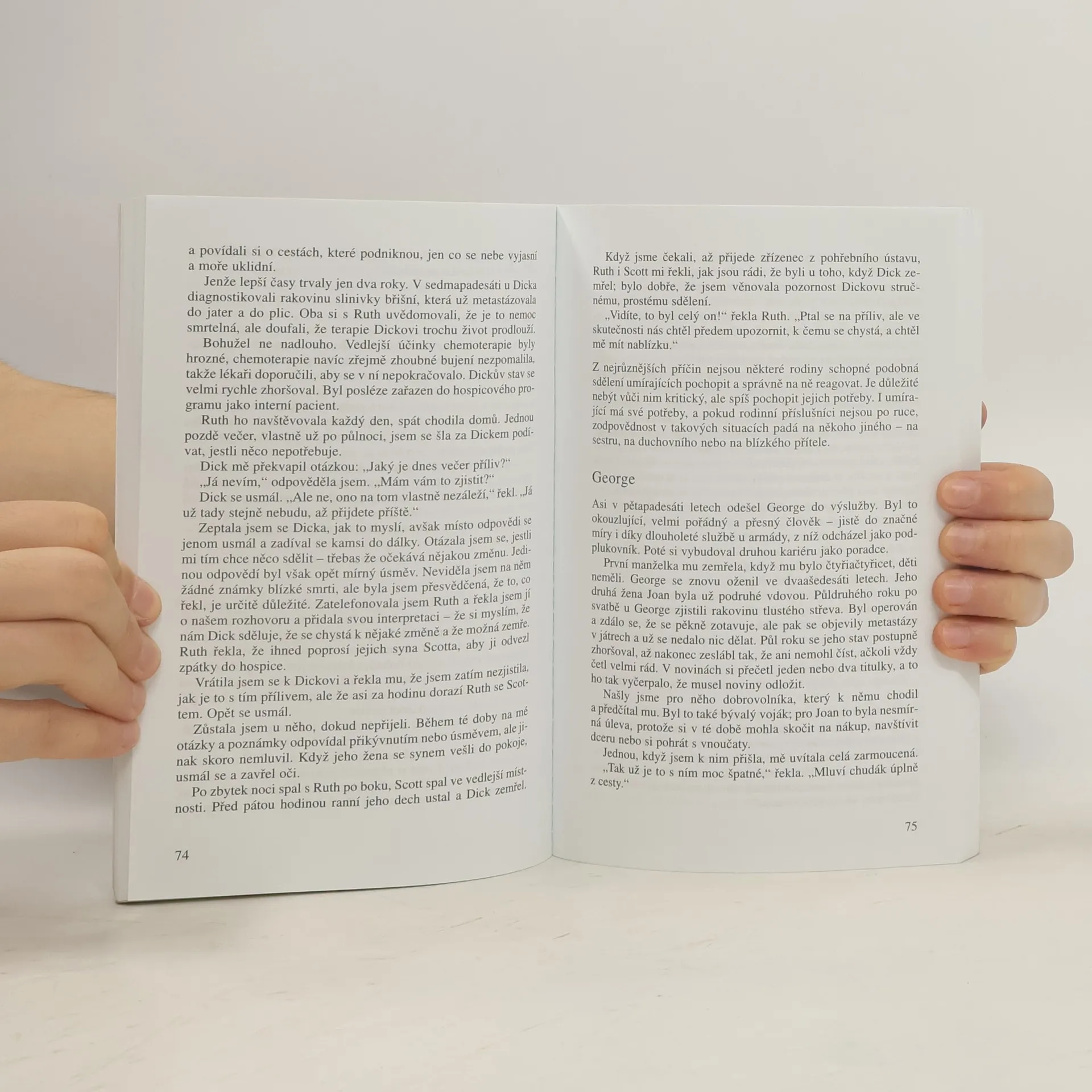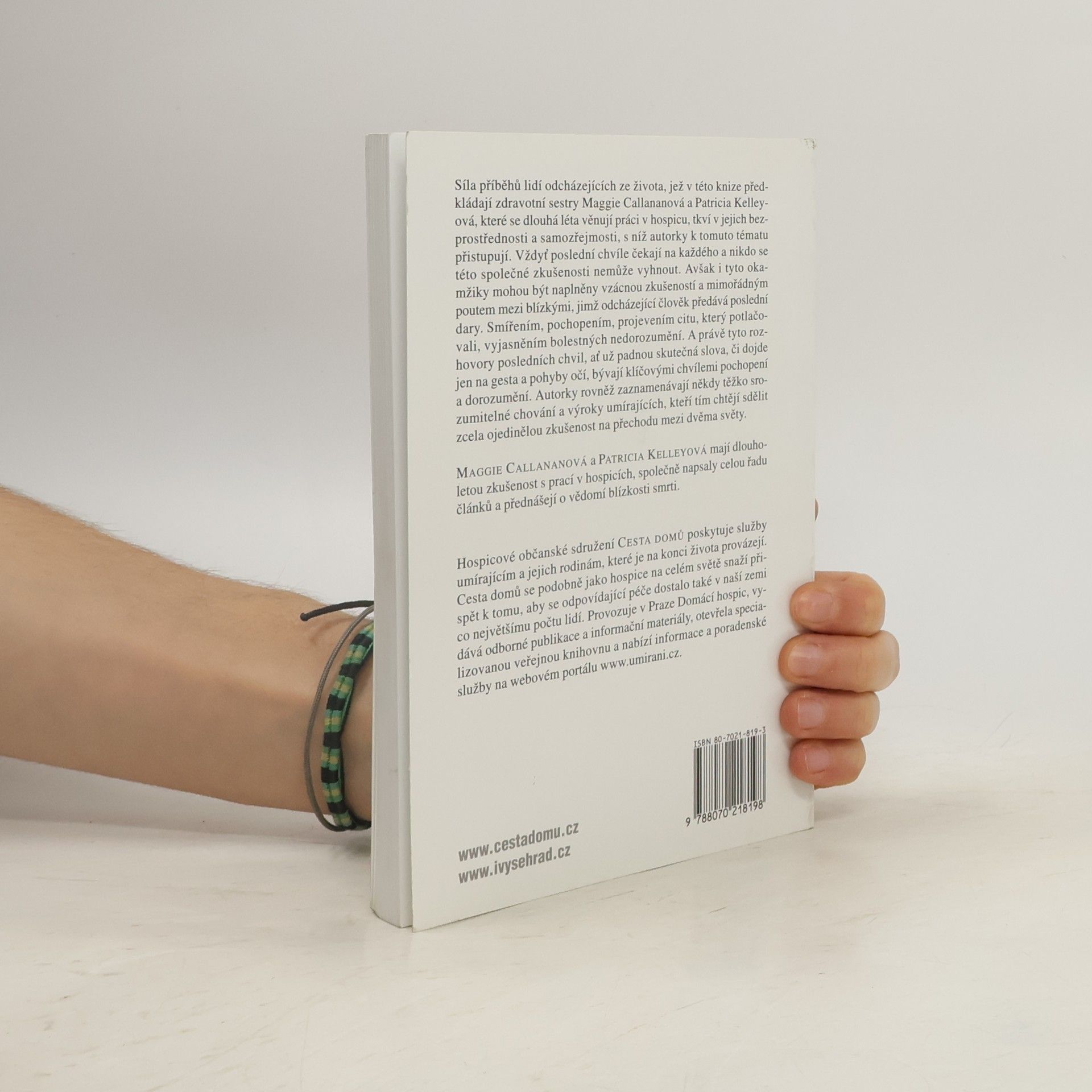 Síla příběhů lidí odcházejících ze života, jež v této knize předkládají zdravotní sestry Maggie Callananová a Patricia Kelleyová, které se dlouhá léta věnují práci v hospicu, tkví v jejich bezprostřednosti a samozřejmosti, s níž autorky k tomuto tématu přistupují. Vždyť poslední chvíle čekají na každého a nikdo se této společné zkušenosti nemůže vyhnout. Avšak i tyto okamžiky mohou být naplněny vzácnou zkušeností a mimořádným poutem mezi blízkými, jimž odcházející člověk předává poslední dary. Smířením, pochopením, projevením citu, který potlačovali, vyjasněním bolestných nedorozumění. A právě tyto rozhovory posledních chvil, ať už padnou skutečná slova, či dojde jen na gesta a pohyby očí, bývají klíčovými chvílemi pochopení a dorozumění. Autorky rovněž zaznamenávají někdy těžko srozumitelné chování a výroky umírajících, kteří tím chtějí sdělit zcela ojedinělou zkušenost na přechodu mezi dvěma světy.