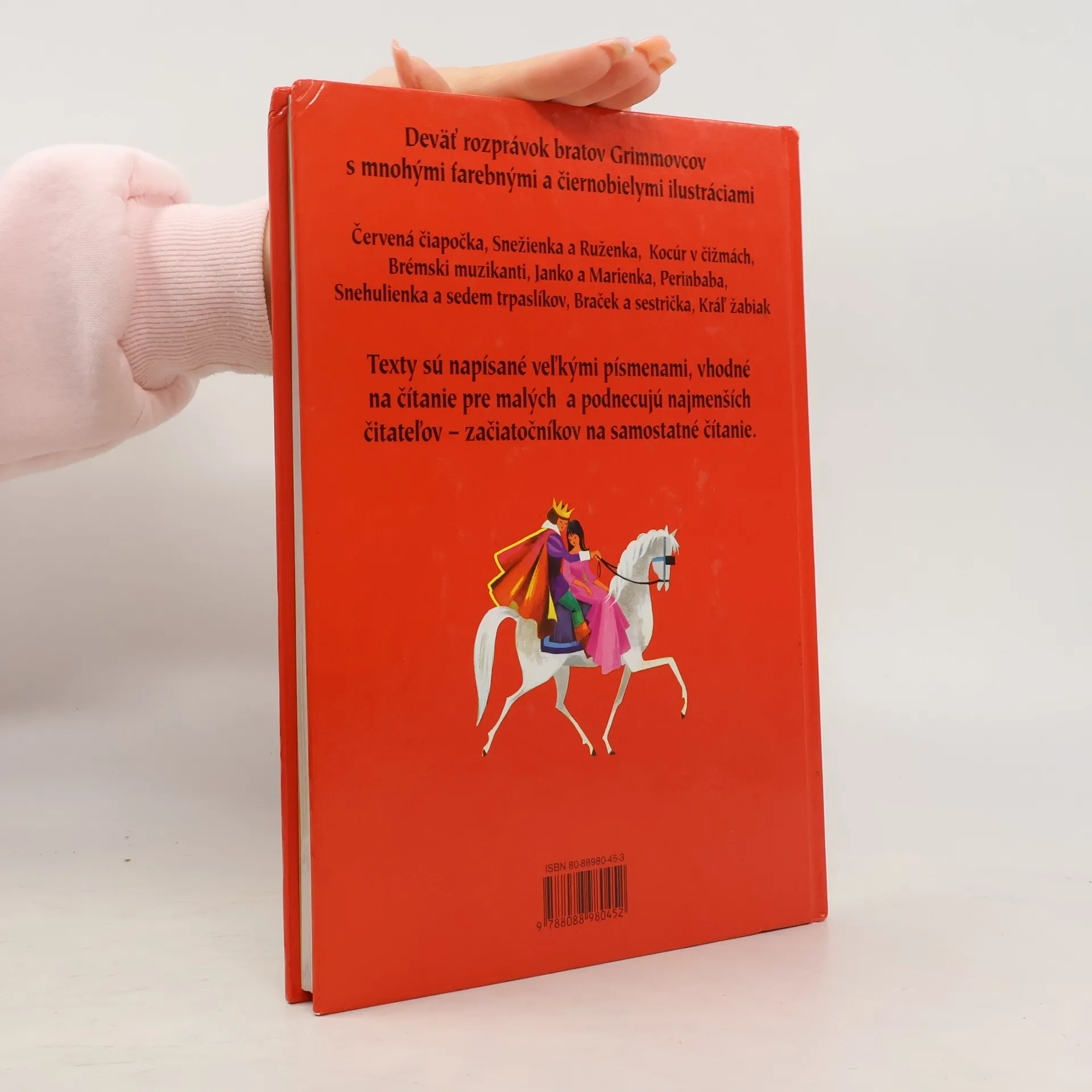 Nemecký výber vychádza zo 7. súborného vydania nemeckých ľudových rozprávok z roku 1857, ktoré zozbierali bratia Grimmovci. Obsah: Popoluška, Uprostred hory dom, Dupinôžka, Kocúr v čižmách, Šesť pomocníkov, Snehulienka, Šalátočka, Sedem havranov, Husiarka, Zlatá hus, Dvanásť poľovníkov, Žabí princ a železný Henrich, Brémski muzikanti, Červená čiapočka, Ako sa na Kuba usmialo šťastie, Perinbaba, Šípová Ruženka.