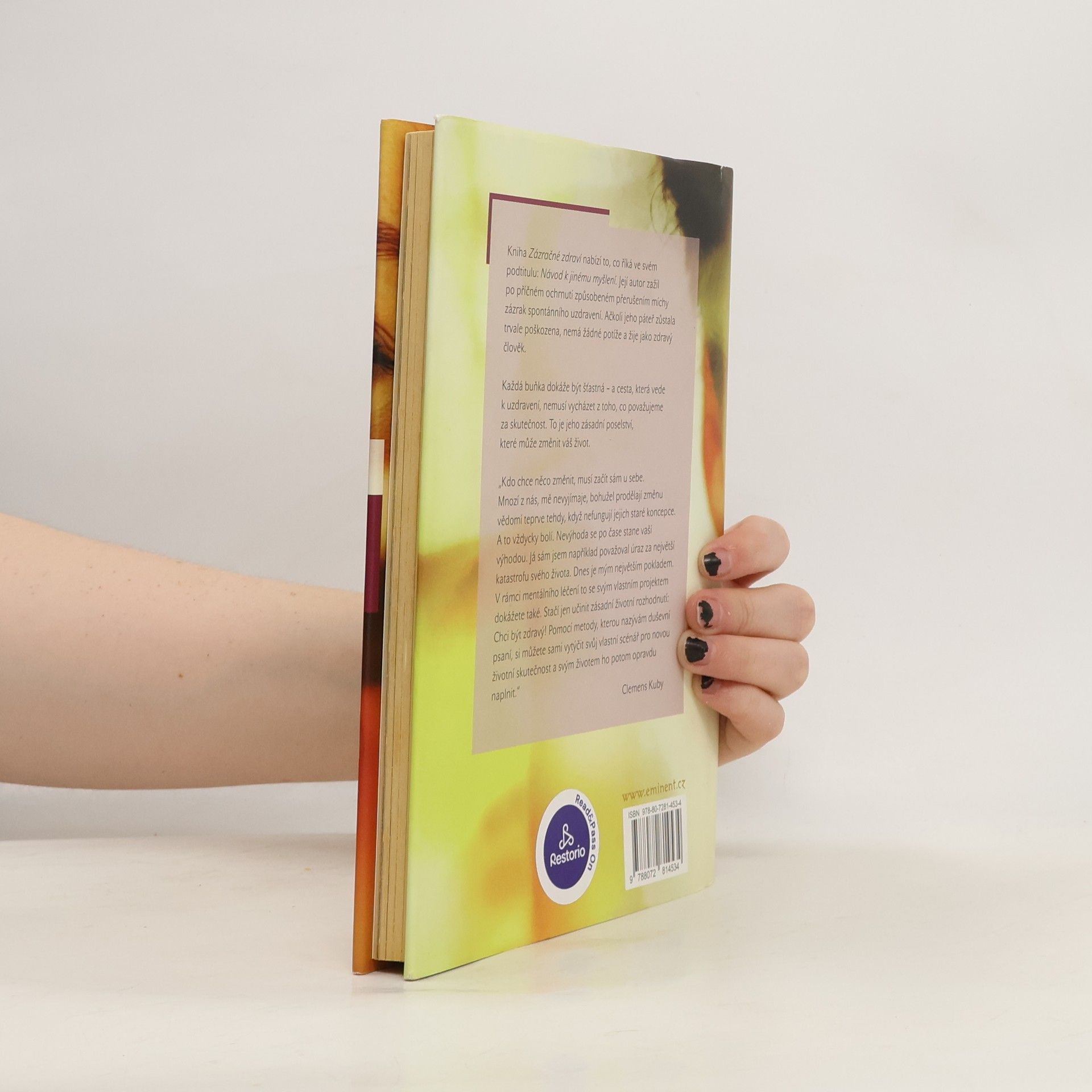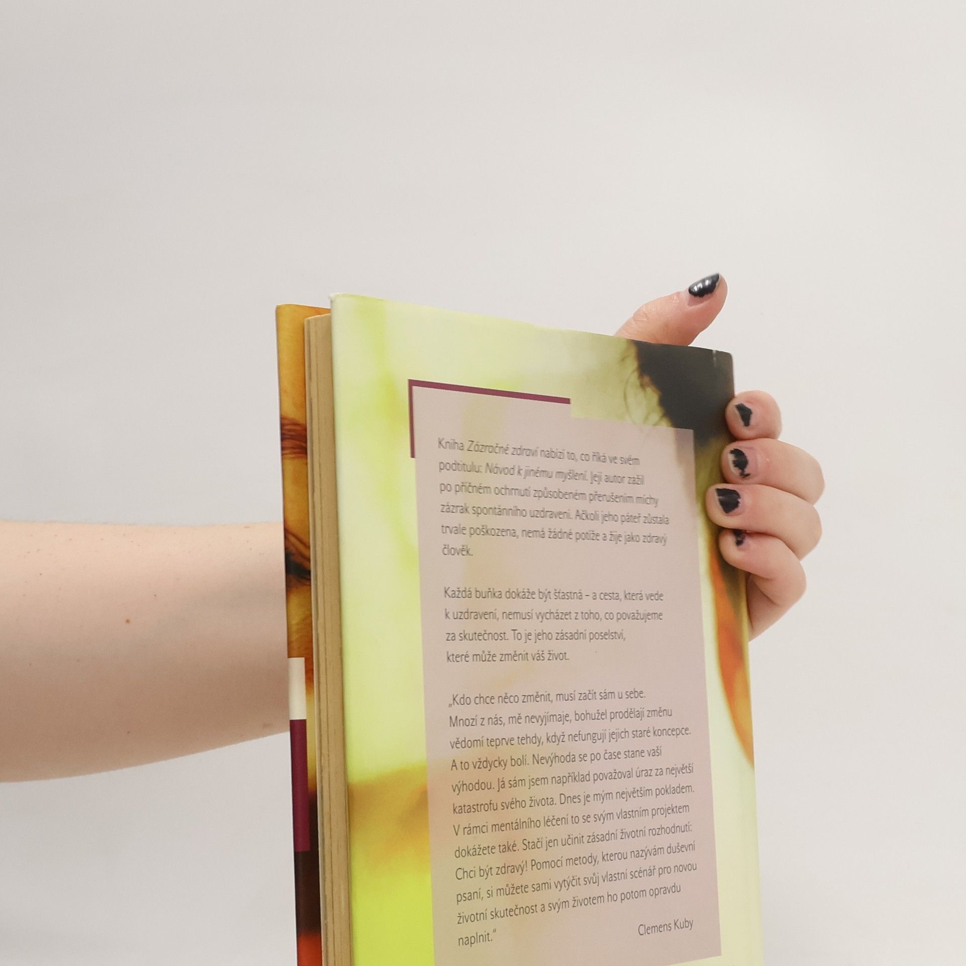 Kniha nabízí to, co říká ve svém podtitulu: Návod k jinému myšlení. Její autor zažil po příčném ochrnutí způsobeném přerušením míchy zázrak spontánního uzdravení. Ačkoli jeho páteř zůstala trvale poškozena, nemá žádné potíže a žije jako zdravý člověk. Každá buňka dokáže být šťastná - a cesta, která vede k uzdravení, nemusí vycházet z toho, co považujeme za skutečnost. To je jeho zásadní poselství, které může změnit váš život. "Kdo chce něco změnit, musí začít sám u sebe. Mnozí z nás, mě nevyjímaje, bohužel prodělají změnu vědomí teprve tehdy, když nefungují jejich staré koncepce. A to vždycky bolí. Nevýhoda se po čase stane vaší výhodou. Já sám jsem například považoval úraz za největší katastrofu svého života. Dnes je mým největším pokladem. V rámci mentálního léčení to se svým vlastním projektem dokážete také. Stačí jen učinit zásadní životní rozhodnutí: Chci být zdravý! Pomocí metody, kterou nazývám duševní psaní, si můžete sami vytýčit svůj vlastní scénář pro novu životní skutečnost a svým životem ho potom opravdu naplnit." Clemens Kuby
