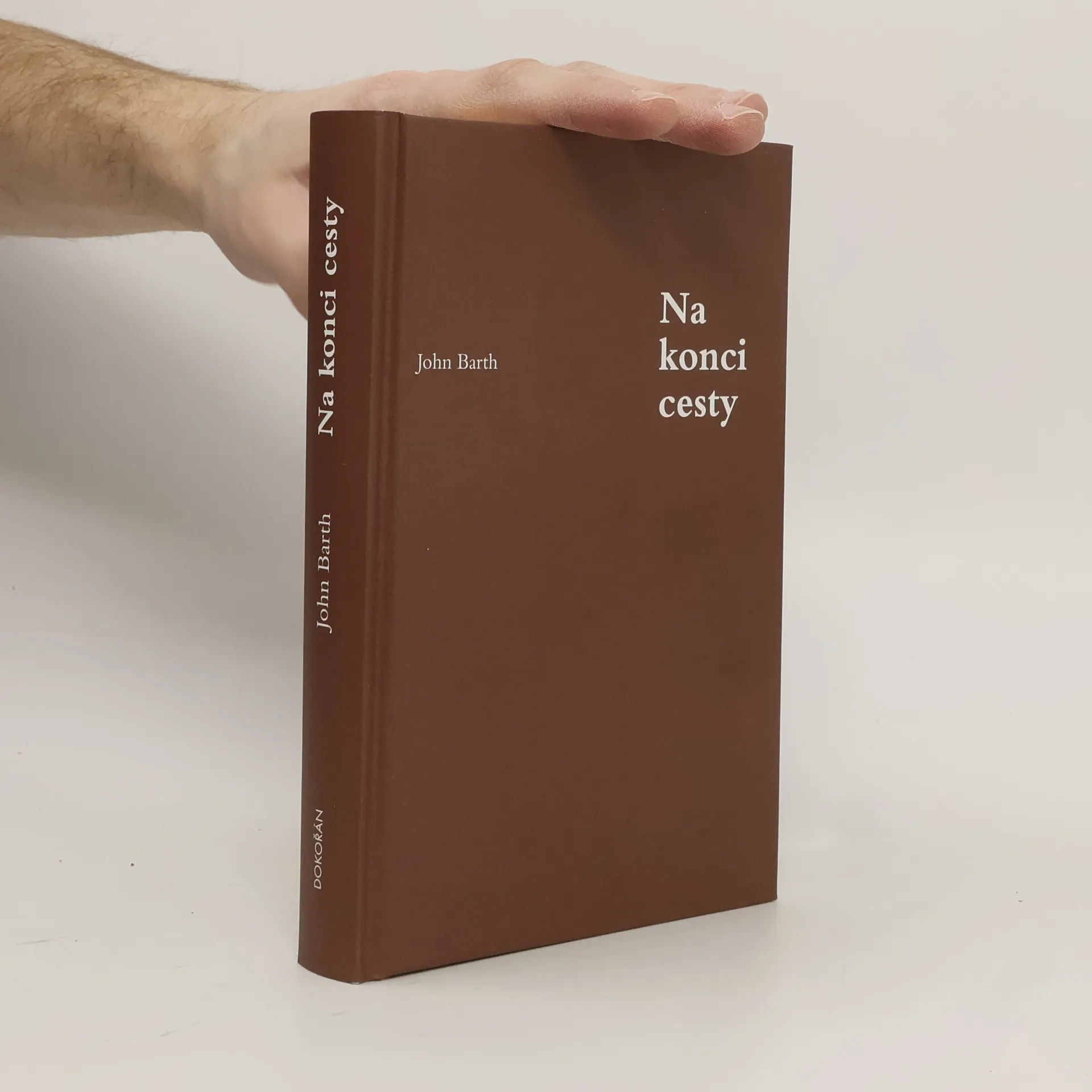 Kniha Na konci cesty (1958) bývá v díle amerického spisovatele Johna Bartha zařazována do „existencialistické fáze“, jež předchází autorovu radikálnímu přestupu k vyhroceným postmoderním postupům. Hlavní hrdina novely Jacob Horner na radu doktora uniká před svou nerozhodností a nihilismem tak, že si v určitých životních momentech nasazuje masky: Před školním výborem se chová jako idealistický a práci oddaný učitel, jindy hraje nezodpovědného mladého muže či nevědomky napodobuje svého racionálního kolegu Joea Morgana. Hraní rolí ovšem není bez nebezpečí – nevyhnutelným důsledkem je zaplétání se do mezilidských vztahů a odtažitý a cynický Jacob se náhle ocitá v komplikované situaci milostného trojúhelníku. Dává se unést přijímanou rolí a ztrácí vědomí vlastního já, což následně příběh nasměruje k tragickému konci. V jádru ironií prosyceného vyprávění tak stojí zdánlivá nemožnost rozhodovat se pro správné konání ve světě, jenž postrádá absolutní hodnoty.