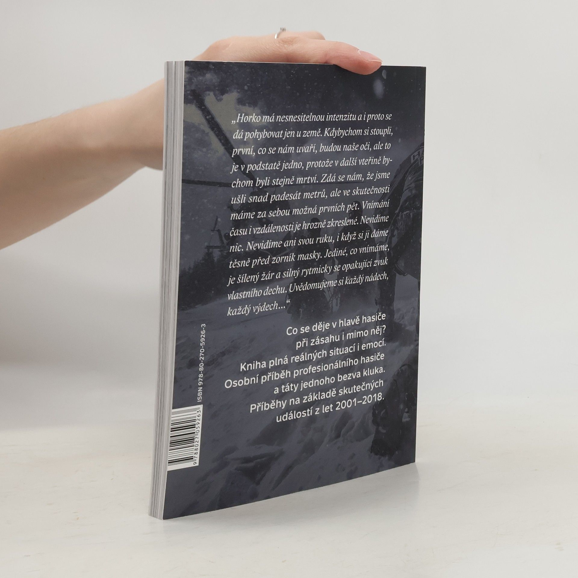 Co se děje v hlavě hasiče při zásahu i mimo něj? Kniha plná reálných situací a emocí. Osobní příběh profesionálního hasiče a táty jednoho bezva kluka. Příběhy na základě skutečných událostí z let 2001-2018.