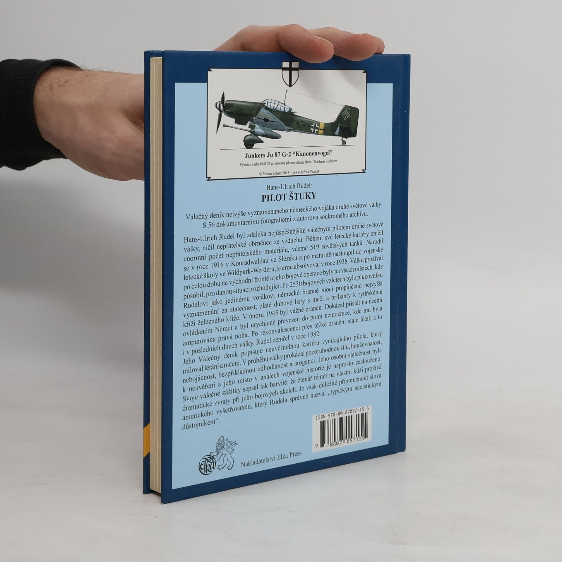 Válečný deník nejvýše vyznamenaného německého vojáka druhé světové války s 56 dokumentárními fotografiemi z autorova soukromého archivu. Rudel byl za druhé světové války jedním z nejstatečnějších a nejúspěšnějších vojáků. Přestože mu museli amputovat nohu, plnil svoji vojenskou povinnost až do trpkého konce. Proto bychom mu měli vyslovit uznání, i když těžko můžeme dnes jeho politické omyly akceptovat. K nějakému honu na čarodějnice naprosto není důvod. Friedrich Zimmermann Hans-Ulrich Rudel byl zdaleka nejúspěšnějším válečným pilotem druhé světové války. Narodil se v roce 1916 v Konradwaldau ve Slezsku a po maturitě nastoupil do vojenské letecké školy ve Wildpark-Werderu, kterou absolvoval v roce 1938. Válku prožíval po celou dobu na východní frontě a jeho bojové operace byly na všech místech, kde působil, pro danou situaci rozhodující. Po 2530 bojových vzletech bylo plukovníku Rudelovi jako jedinému vojákovi německé branné moci propůjčeno nejvyšší vyznamenání za statečnost, zlaté dubové listy s meči a brilianty k rytířskému kříži železného kříže. Rudel zemřel v roce 1982. Svoje válečné zážitky sepsal tak barvitě, že čtenář téměř na vlastní kůži prožívá dramatické zvraty při jeho bojových akcích.