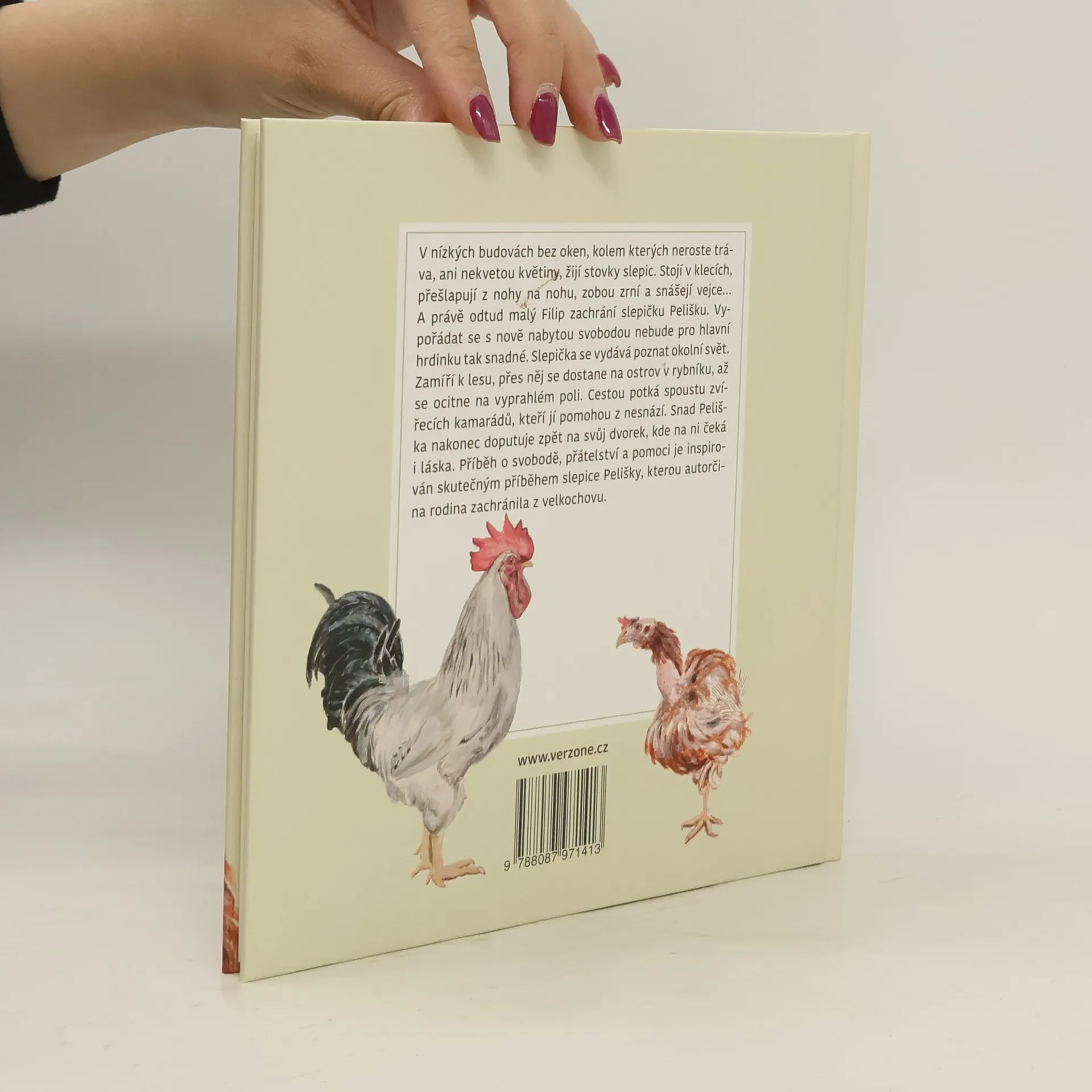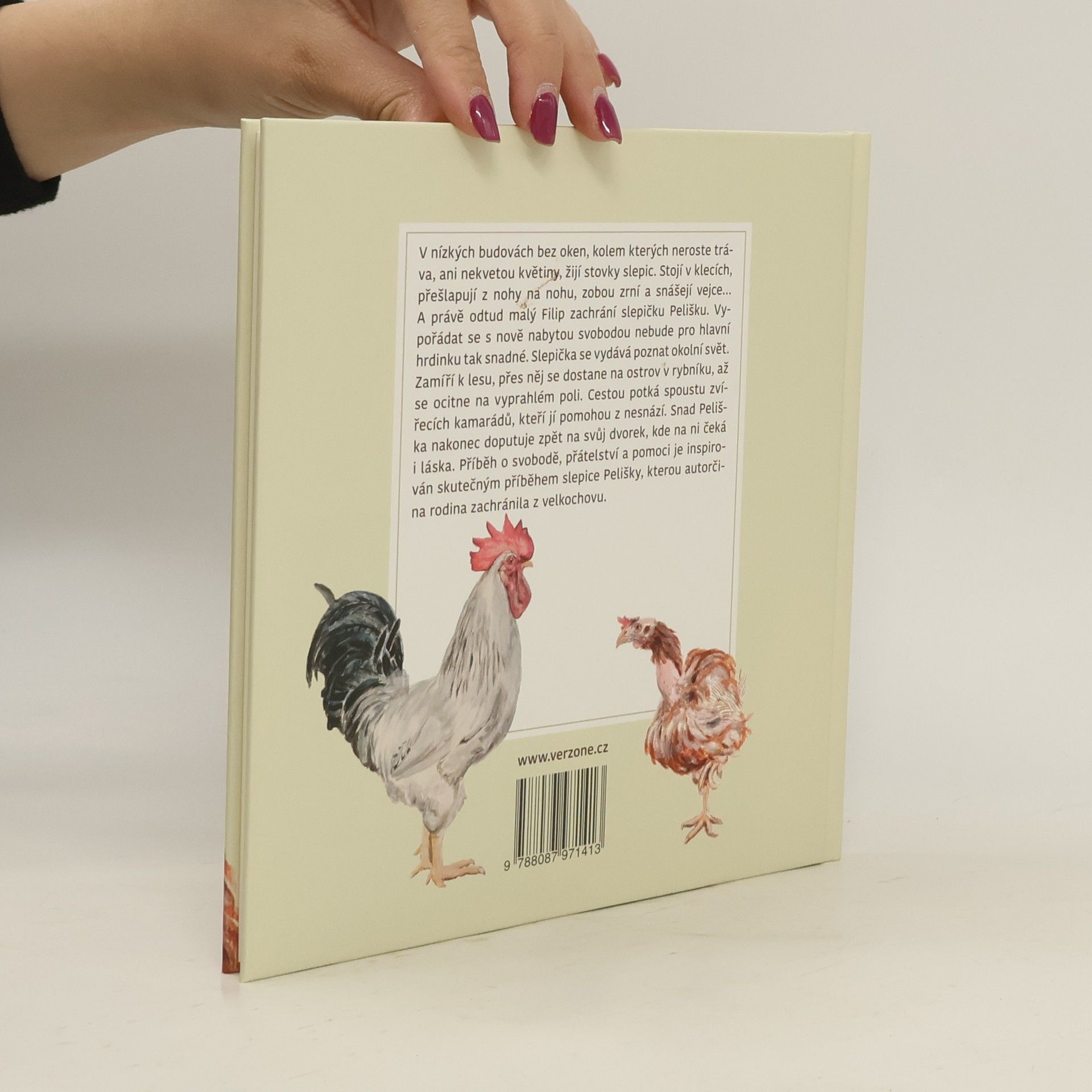 V nízkých budovách bez oken, kolem kterých neroste tráva, ani nekvetou květiny, žijí stovky slepic. Stojí v klecích, přešlapují z nohy na nohu, zobou zrní a snášejí vejce… A právě odtud malý Filip zachrání slepičku Pelišku. Vypořádat se s nově nabytou svobodou nebude pro hlavní hrdinku tak snadné. Slepička se vydává poznat okolní svět. Zamíří k lesu, přes něj se dostane na ostrov v rybníku, až se ocitne na vyprahlém poli. Cestou potká spoustu zvířecích kamarádů, kteří jí pomohou z nesnází. Snad Peliška nakonec doputuje zpět na svůj dvorek, kde na ni čeká i láska. Příběh o svobodě, přátelství a pomoci. Dobrodružství je inspirováno skutečným příběhem slepice Pelišky, kterou autorčina rodina zachránila z velkochovu. Děj se odehrává v malebné krajině jižních Čech.