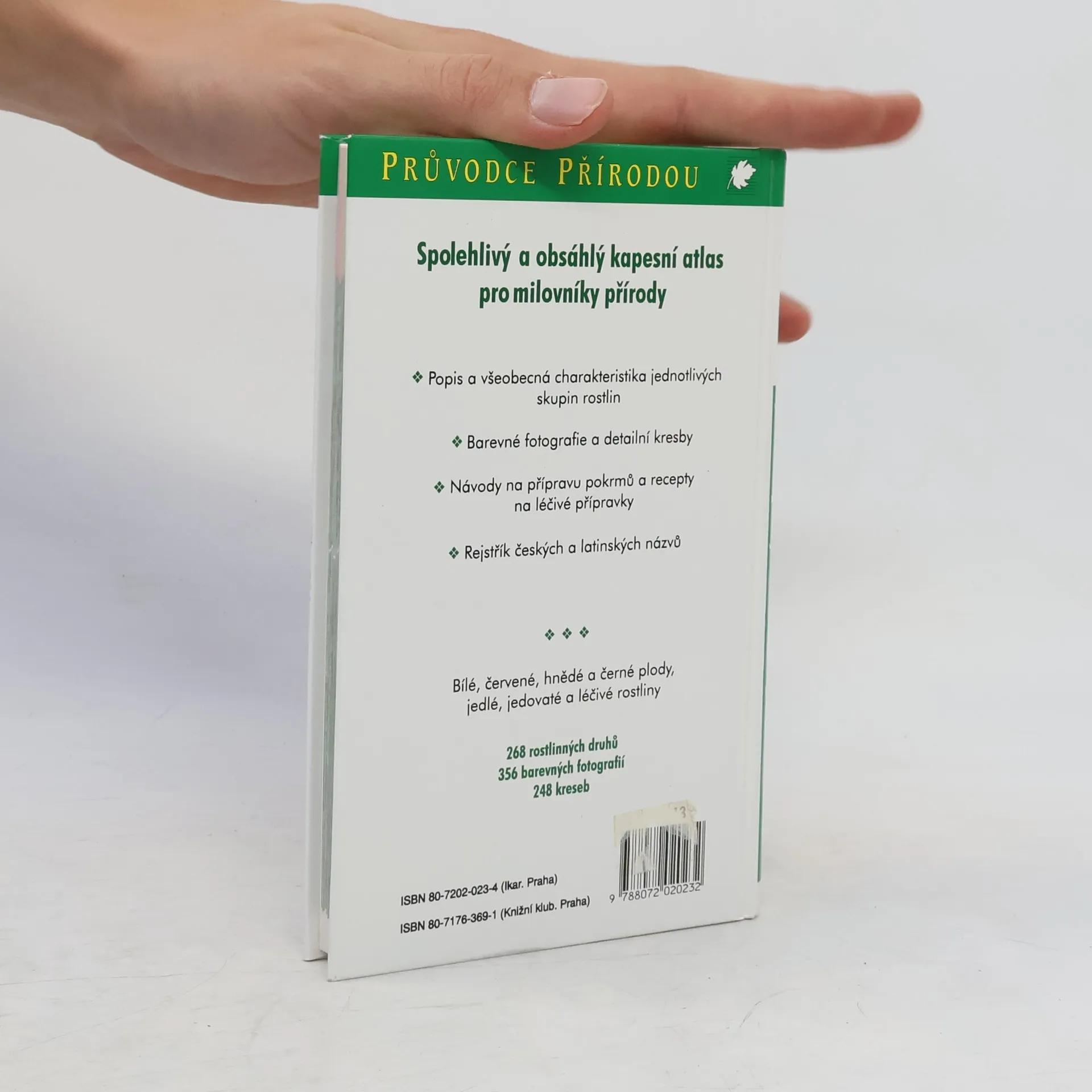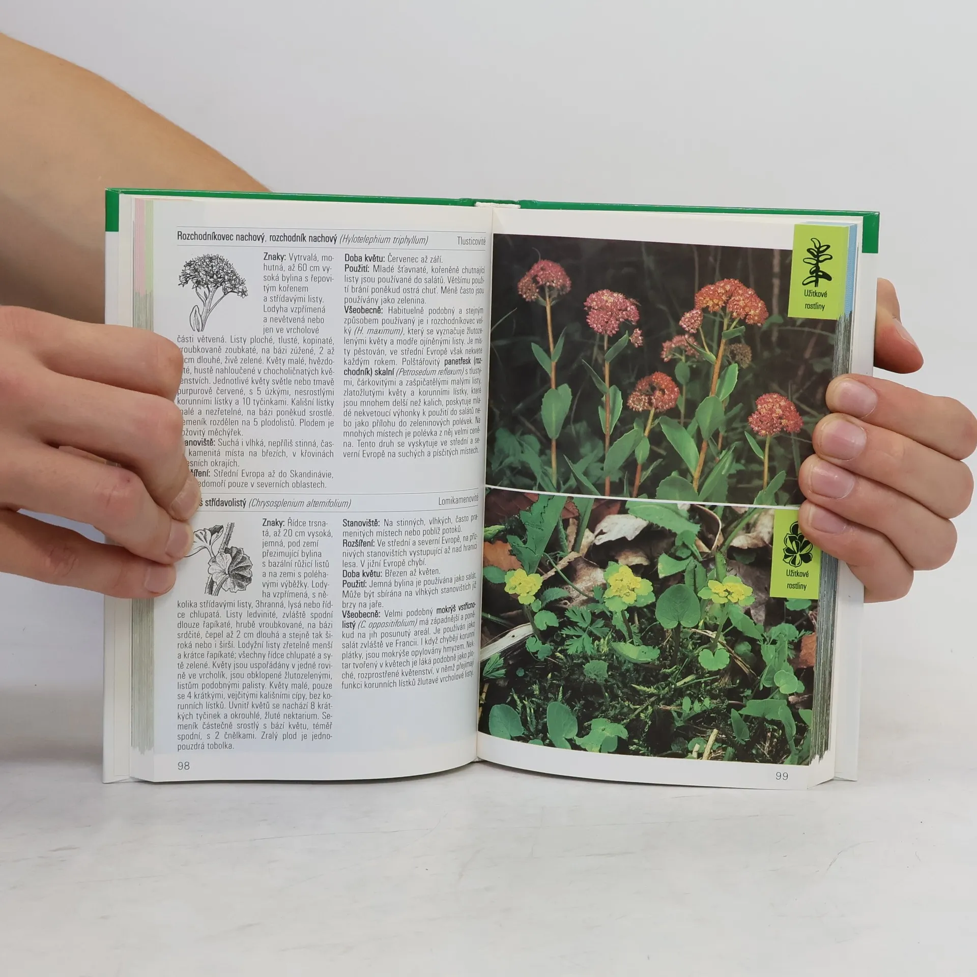 Spolehlivý a obsáhlý kapesní atlas pro milovníky přírody. Popis a všeobecná charakteristika jednotlivých skupin rostlin, jejích barevné fotografie a detailní kresby. Návody na přípravu pokrmů a recepty na léčebné přípravky. Rejstřík českých a latinských názvů. 268 rostlinných druhů na 356 barevných fotografiích a 248 kreseb.
