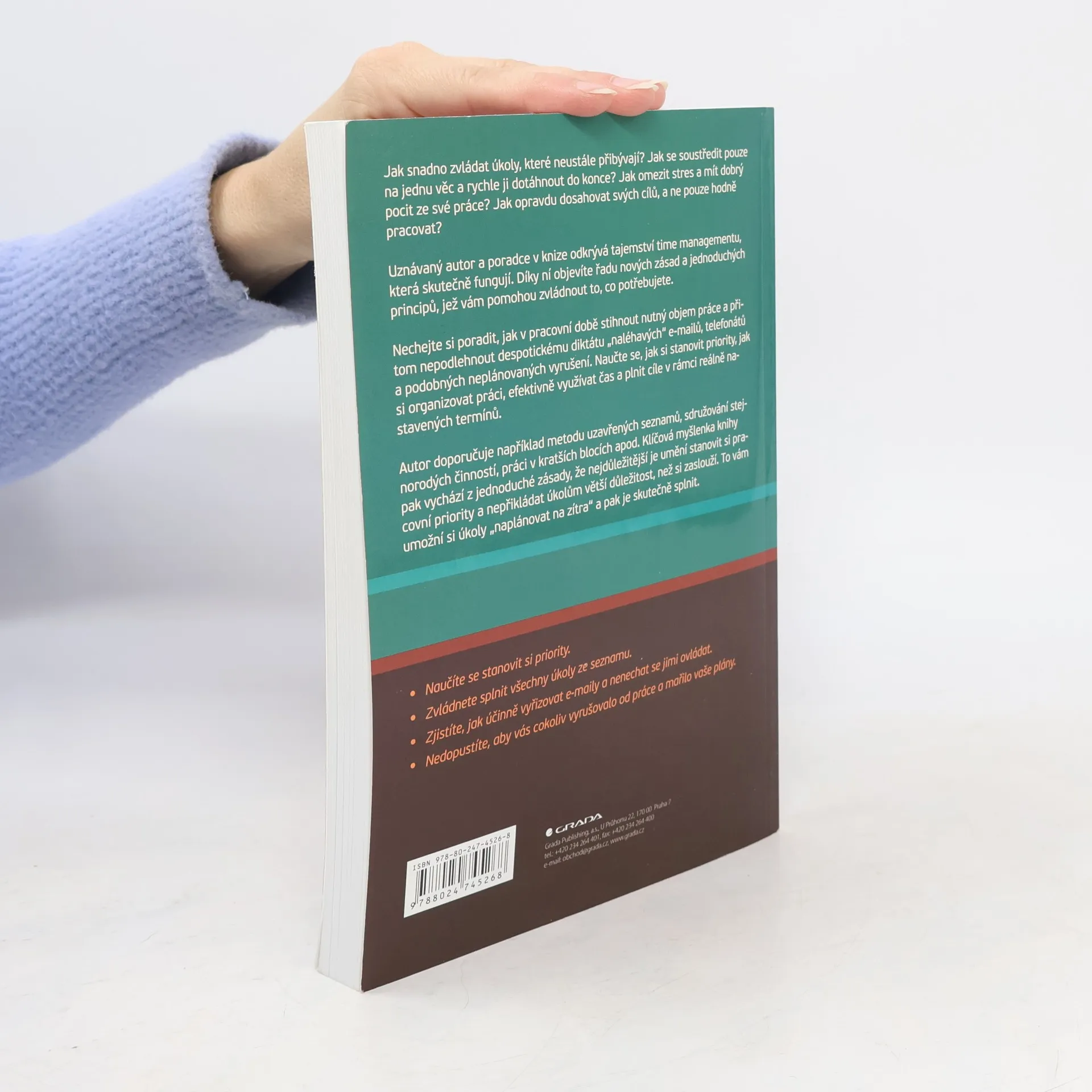Jak snadno zvládat úkoly, které neustále přibývají? Jak se soustředit pouze na jednu věc a rychle ji dotáhnout do konce? Jak omezit stres a mít dobrý pocit ze své práce? Jak opravdu dosahovat svých cílů, a ne pouze hodně pracovat? Uznávaný autor a poradce v knize odkrývá tajemství time managementu, která skutečně fungují. Díky ní objevíte řadu nových zásad a jednoduchých principů, jež vám pomohou zvládnout to, co potřebujete. Nechejte si poradit, jak v pracovní době stihnout nutný objem práce a přitom nepodlehnout despotickému diktátu "naléhavých" e-mailů, telefonátů a podobných neplánovaných vyrušení. Naučte se, jak si stanovit priority, jak si organizovat práci, efektivně využívat čas a plnit cíle v rámci reálně nastavených termínů. Autor doporučuje například metodu uzavřených seznamů, sdružování stejnorodých činností, práci v kratších blocích apod. Klíčová myšlenka knihy pak vychází z jednoduché zásady, že nejdůležitější je umění stanovit si pracovní priority a nepřikládat úkolům větší důležitosti, než si zaslouží. To vám umožní si úkoly "naplánovat na zítra" a pak je skutečně splnit.
