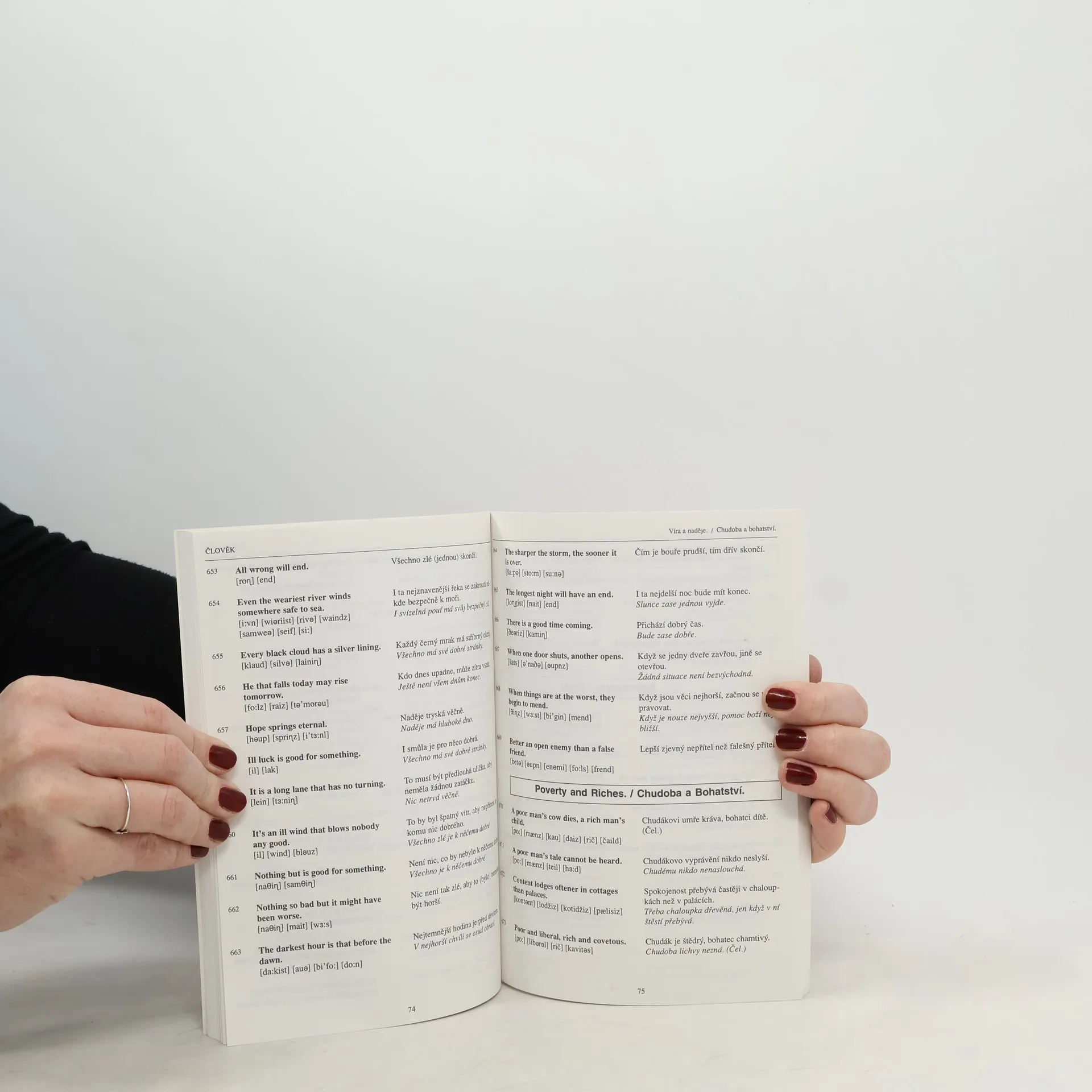 Výborná pomůcka pro všechny, pro které je angličtina opravdovým koníčkem. Přehledný slovník anglických přísloví obsahuje doslovný překlad i český ekvivalent, který se mnohdy od doslovného překladu výrazně liší. Texty doprovází černobílé ilustrace.