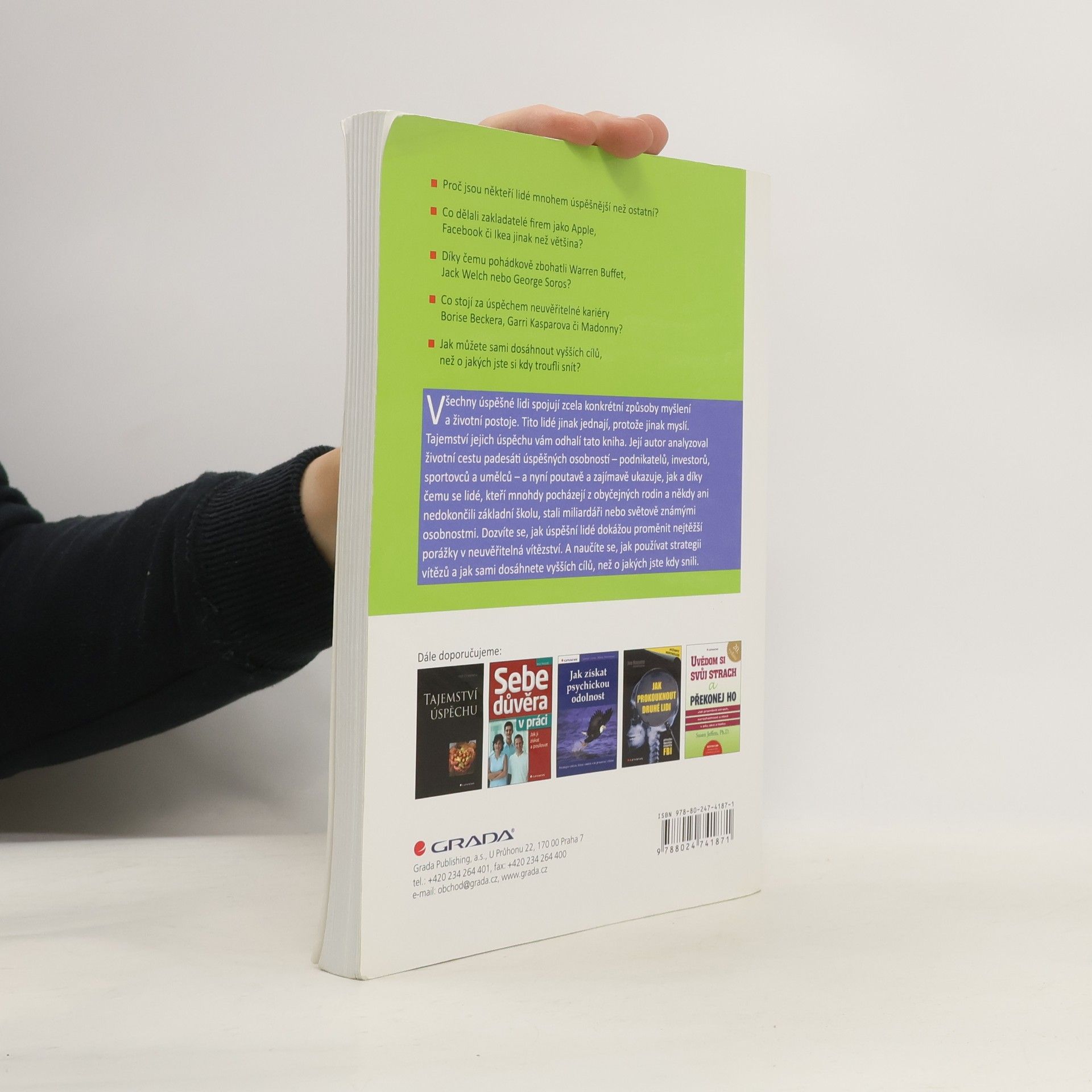 Proč jsou někteří lidé mnohem úspěšnější než ostatní? Co dělali zakladatelé firem jako Apple, Facebook či Ikea jinak než většina? Díky čemu pohádkově zbohatli Warren Buffet, Jack Welch nebo George Soros? Co stojí za úspěchem neuvěřitelné kariéry Borise Beckera, Garri Kasparova či Madonny? Jak můžete sami dosáhnout vyšších cílů, než o jakých jste si kdy troufli snít? Všechny úspěšné lidi spojují zcela konkrétní způsoby myšlení a životní postoje. Tajemství jejich úspěchu vám odhalí tato kniha. Její autor analyzoval životní cestu padesáti úspěšných osobností a nyní poutavě a zajímavě ukazuje, jak a díky čemu se lidé, kteří mnohdy pocházejí z obyčejných rodin, stali miliardáři nebo světově známými osobnostmi. Dozvíte se, jak úspěšní lidé dokážou proměnit nejtěžší porážky v neuvěřitelná vítězství. A naučíte se, jak používat strategii vítězů a jak sami dosáhnete vyšších cílů, než o jakých jste kdy snili.