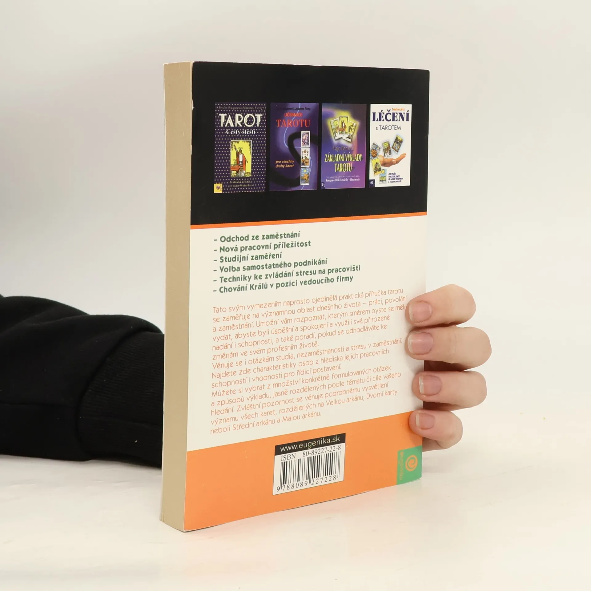 Slovenská autorka sepsala podrobnou analýzu výkladu tarotových karet s ohledem na výběr povolání, případné úvahy o jeho změně, o nejvhodnějších zaměstnáních pro jednotlivé karty Velké arkány apod.
