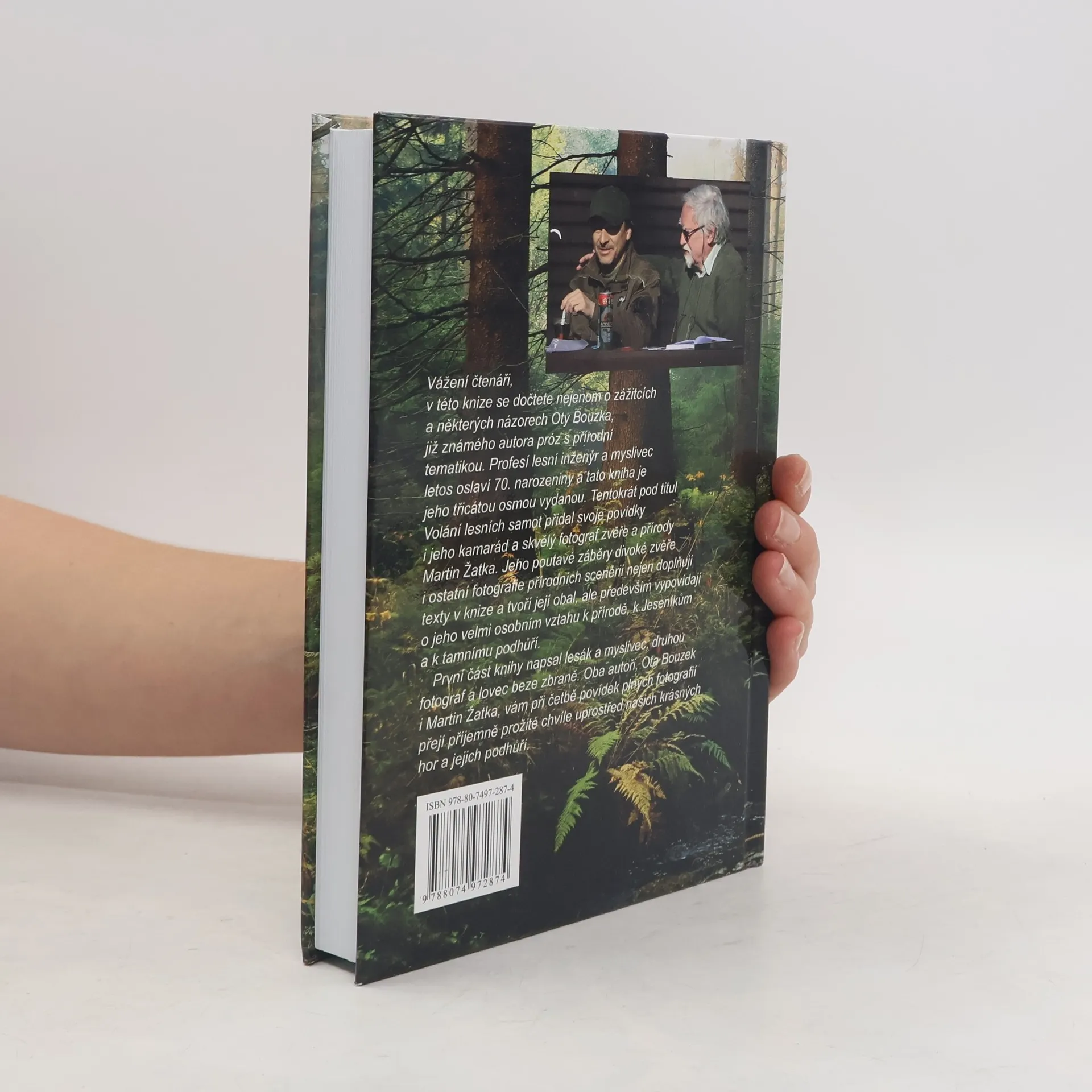 V této knize se dočtete nejenom o zážitcích a některých názorech Oty Bouzka, již známého autora próz s přírodní tematikou. Profesí lesní inženýr a myslivec letos oslaví 70. narozeniny a tato kniha je jeho třicátou osmou vydanou. Tentokrát pod titul Volání lesních samot přidal svoje povídky i jeho kamarád a skvělý fotograf zvěře a přírody Martin Žatka. Jeho poutavé záběry divoké zvěře i ostatní fotografie přírodních scenérií nejen doplňují texty v knize a tvoří její obal, ale především vypovídají o jeho velmi osobním vztahu k přírodě, k Jeseníkům a k tamnímu podhůří. První část knihy napsal lesák a myslivec, druhou fotograf a lovec beze zbraně. Oba autoři, Ota Bouzek i Martin Žatka, vám při četbě povídek plných fotografií přejí příjemně prožité chvíle uprostřed našich krásných hor a jejich podhůří.