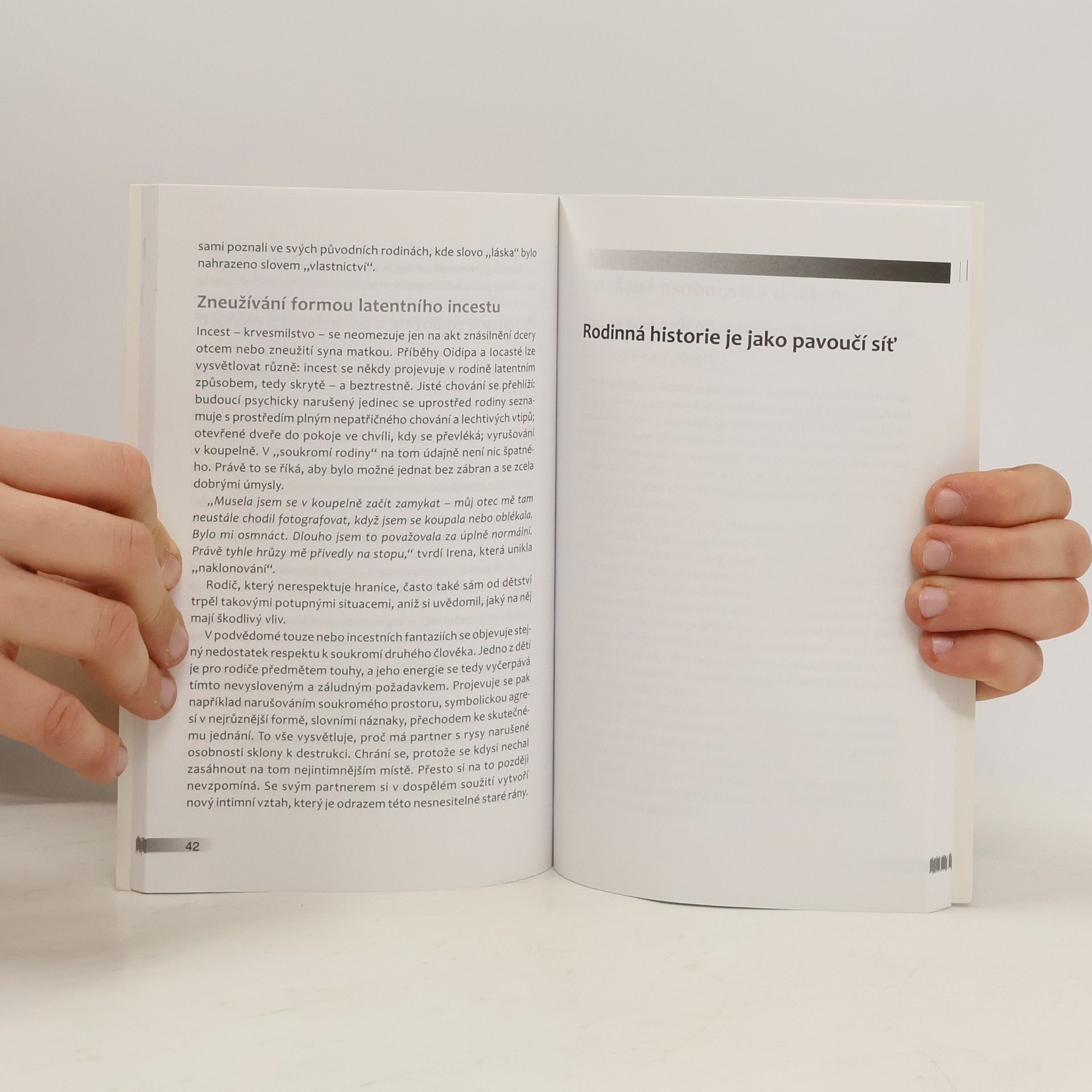Možná každý se už setkal někdy s osobou vyvíjející na druhého nezdravý až „jedovatý“ psychický nátlak. Takové jedince psychologové označují jako „zvrácené narcistní typy“. V mnoha případech jim lze uniknout, neskončit ve vztahu s takovým člověkem. Jiná je však situace, pokud je takový člověk členem rodiny – manžel, příbuzný, působí-li na partnera nebo i na dítě. V tomto praktickém průvodci s mnoha kazuistikami dává autorka klíč umožňující rozšifrovat mluvu a chování jedinců (mužů i žen), kteří otravují vztahy v rodině a přímo ničí život. Ukazuje, jaký je způsob jejich jednání, manipulace, jak své oběti ovládají, umějí v nich vzbuzovat úzkost a hrůzu, jak si dovedou hrát s jejich pocity viny. Hlavně však autorka nabízí konkrétní řešení, jak se z takového vztahu vymanit, vyhnout se soukolí destrukce, ochránit děti, najít sebedůvěru a ztracenou rovnováhu. Jedna kapitola je také věnována projevům psychického nátlaku při střídavé péči o dítě a možnosti, jak dítěti pomoci.