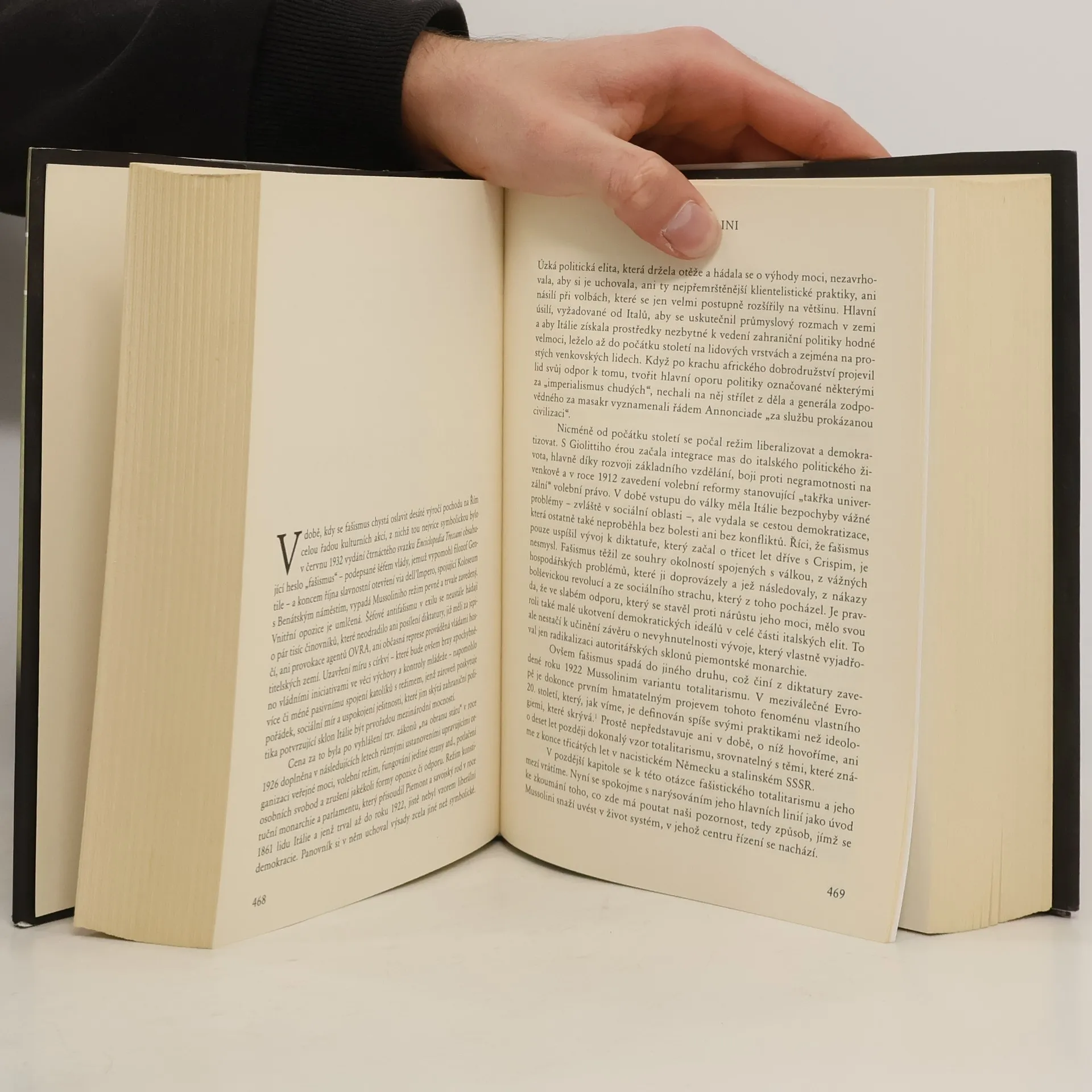 Biografická kniha Pierra Milzy nahlíží na mussoliniovskou látku sice z pohledu globální interpretace fenoménu fašismu, ale neopomíná ani osobní, ba intimní stránky fašistického vůdce, jenž po více než dvacet let řídil osudy Itálie. Pohled na individuální osud Hitlerova spojence zohlednuje též kontext doby a klade si otázku, jaké místo zastával v hierarchii tyranů novodobé historie Evropy a jakou váhu mohly mít věci bežného života na chování „duceho“, který vůci nim nebyl dokonale odolný.