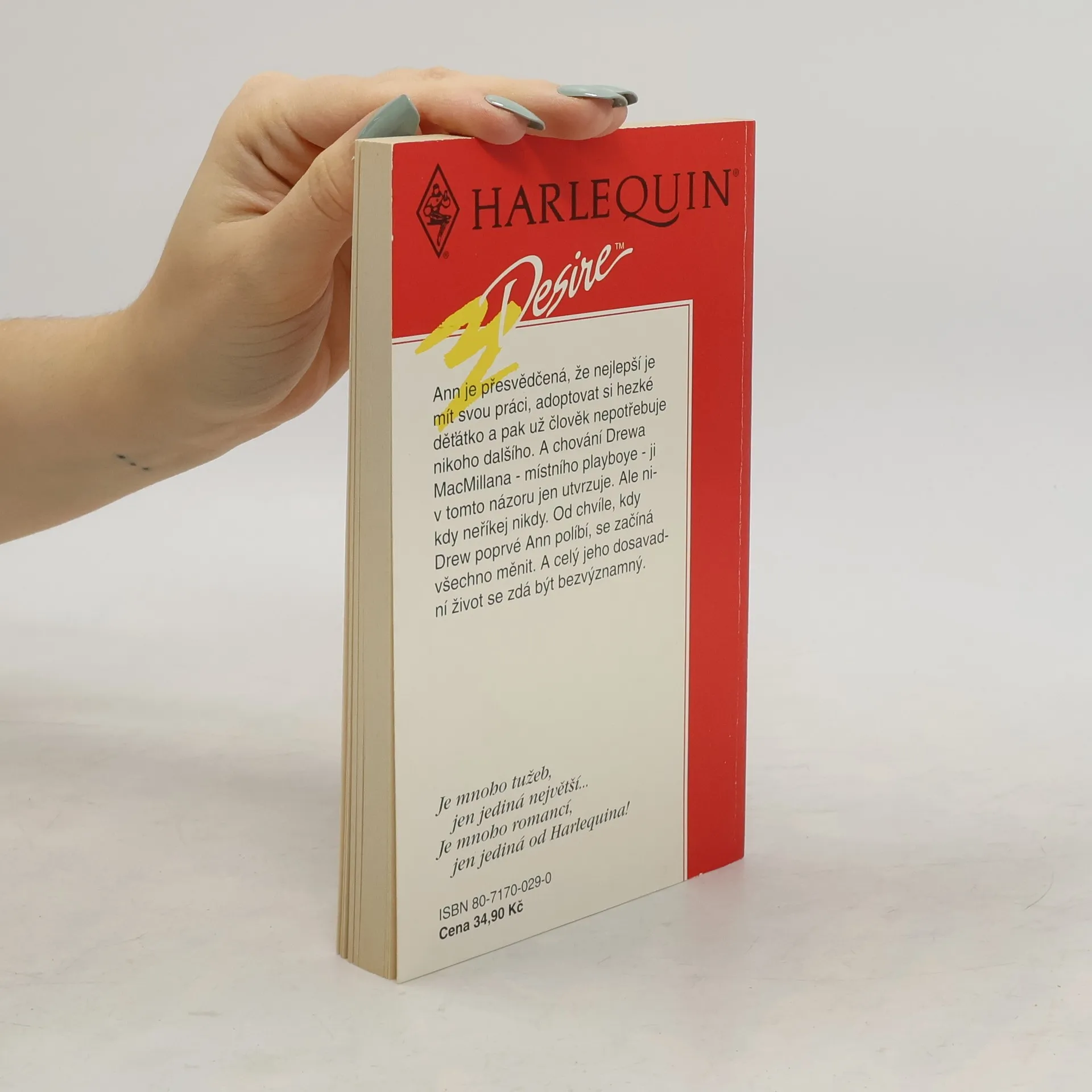 Ann je přesvědčená, že nejlepší je mít svou práci, adoptovat si hezké děťátko a pak už člověk nepotřebuje nikoho dalšího. A chování Drewa MacMillana - místního playboye - ji v tomto názoru jen utvrzuje. Ale nikdy neříkej nikdy. Od chvíle, kdy Drew poprvé Ann políbí, se začíná všechno měnit. A celý jeho dosavadní život se zdá být bezvýznamný.