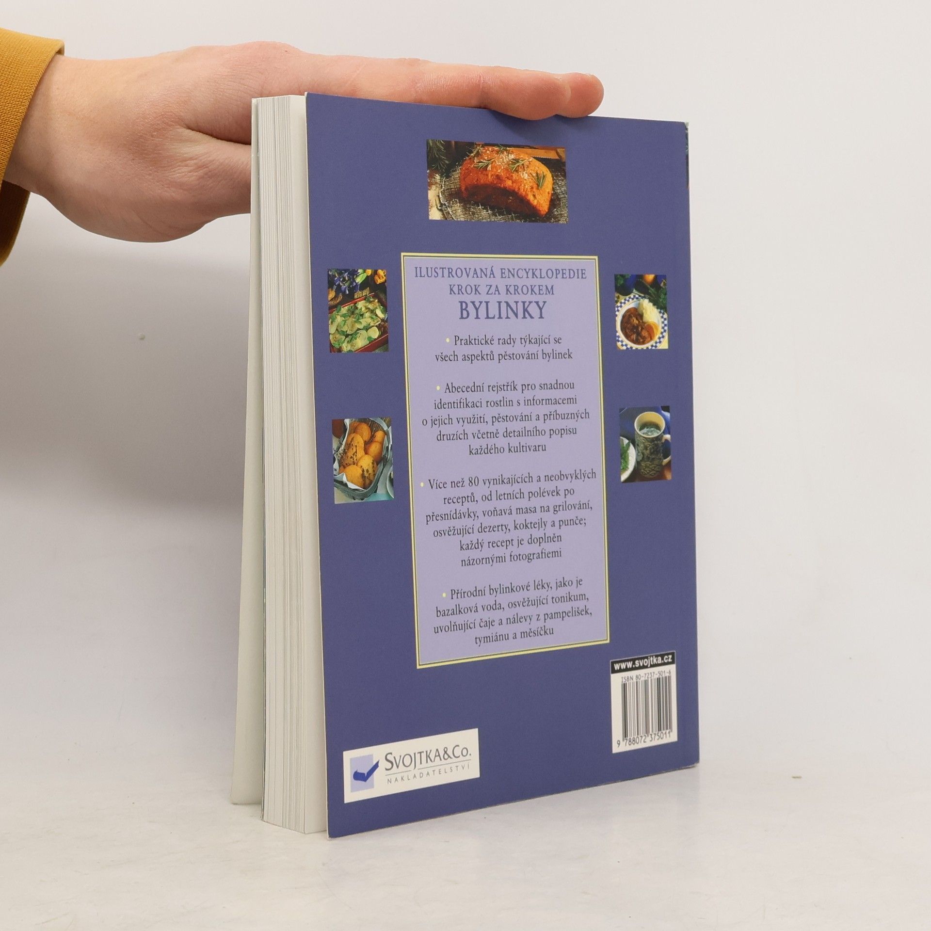 Ilustrovaná encyklopedie – krok za krokem. . Praktické rady týkající se všech aspektů pěstování bylinek . Abecední rejstřík pro snadnou identifikaci rostlin s informacemi o jejich využití, pěstování a příbuzných druzích včetně detailního popisu každého kultivaru . Více než 80 vynikajících a neobvyklých receptů, od letních polévek po přesnídávky, voňavá masa na grilování, osvěžující dezerty, koktejly a punče; každý recept je doplněn názornými fotografiemi . Přírodní bylinkové léky, jako je bazalková voda, osvěžující tonikum, uvolňující čaje a nálevy z pampelišek, tymiánu a měsíčku