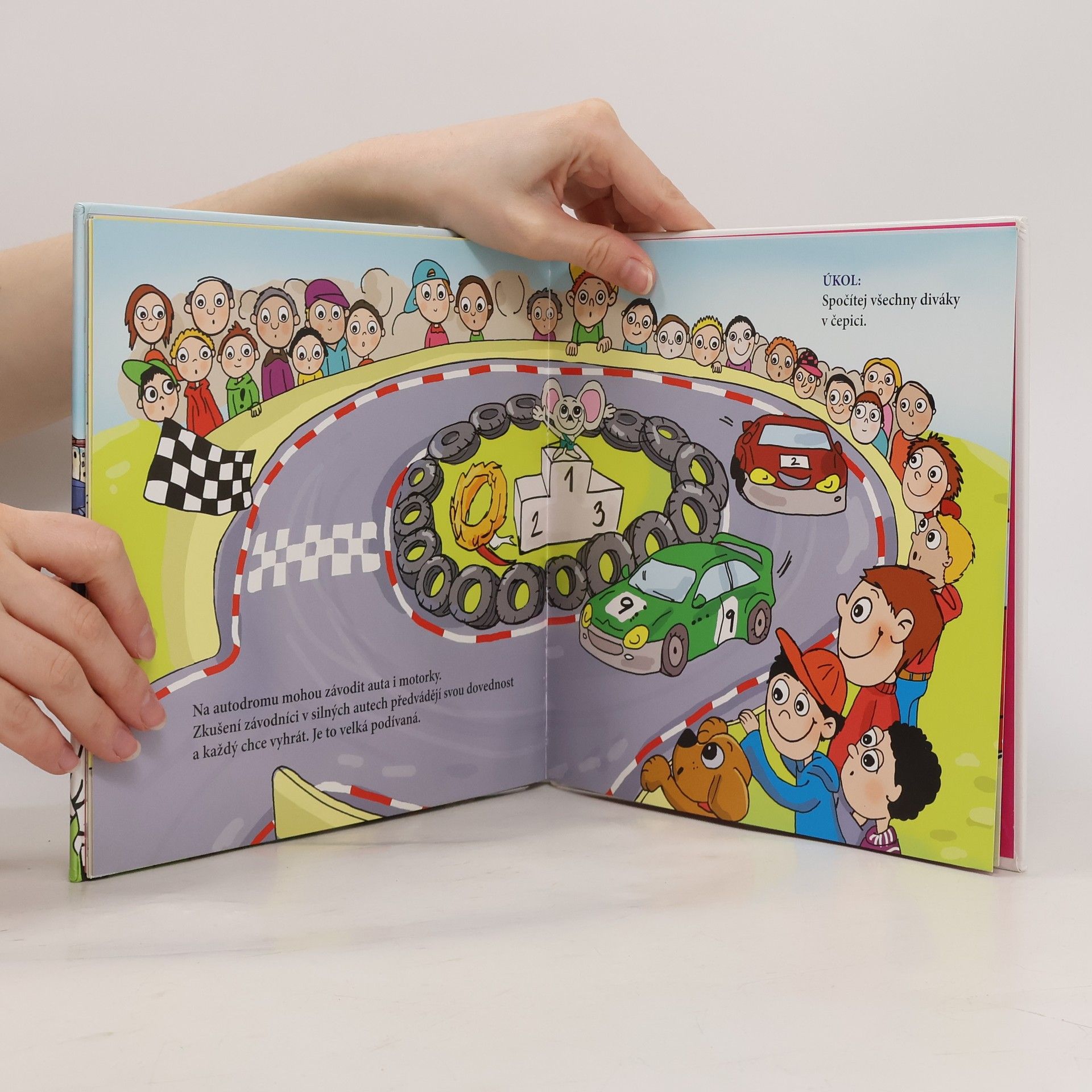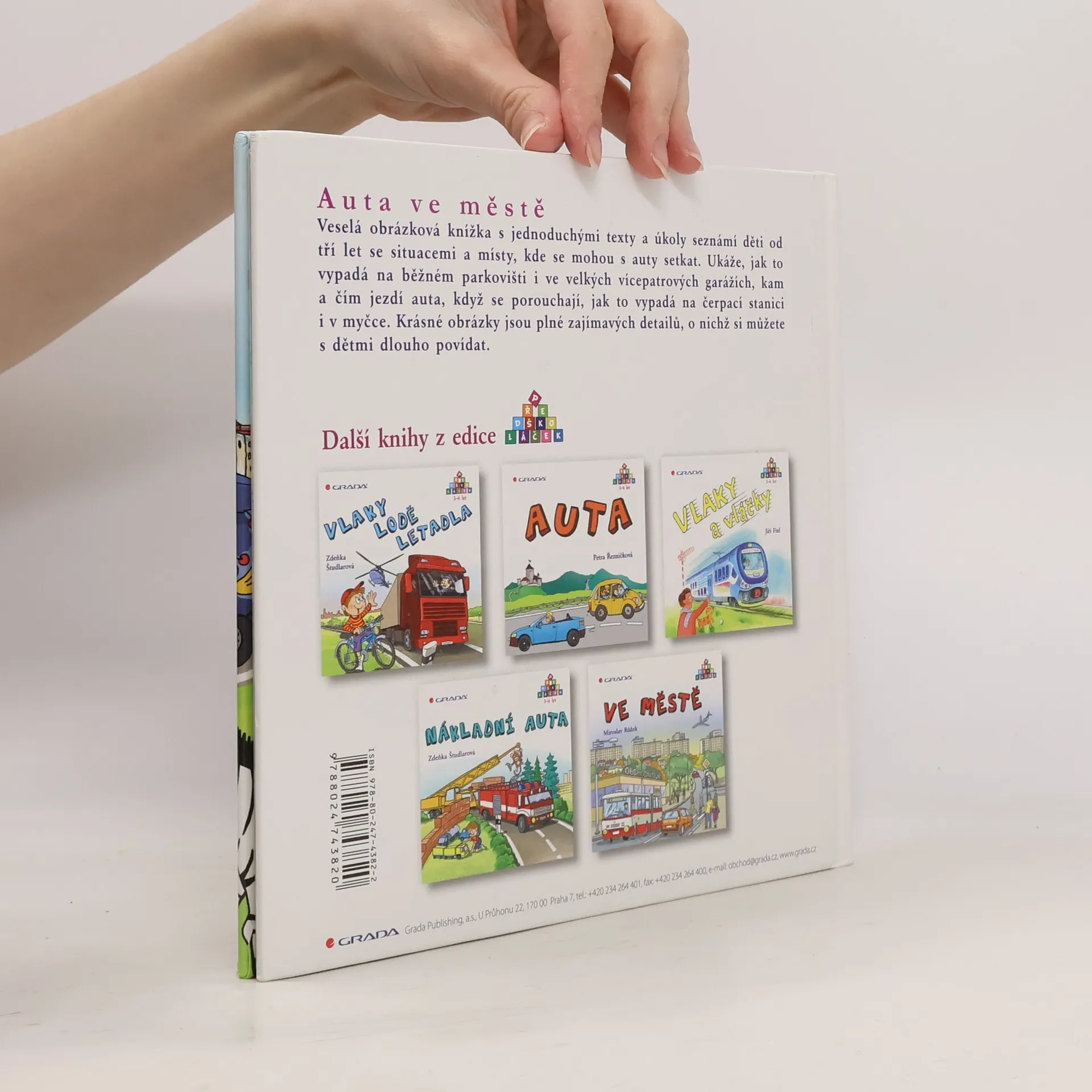 Jednoduché texty i úkoly ukazují kam jezdí auta, když se porouchají, jak to vypadá na parkovišti, v myčce, na čerpací stanici a nebo ve vícepatrových garážích. Z edice Předškoláček. Veselá obrázková knížka seznamuje předškolní děti se světem automobilů. Pro děti 3-6 let.