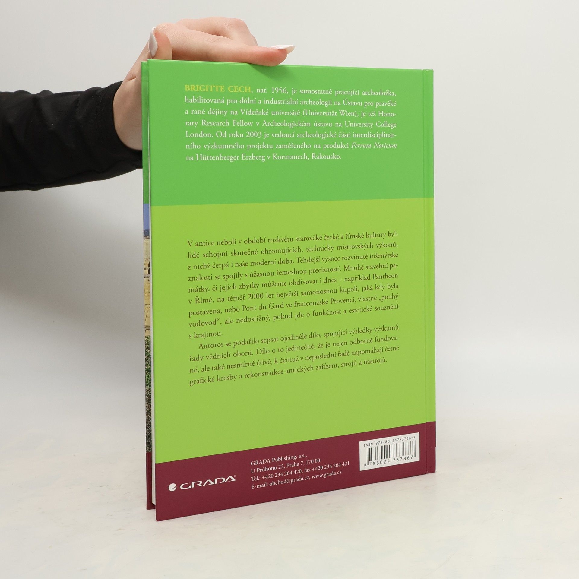 Velmi úspěšná kniha rakouské archeoložky na řadě textových a obrazových podkladů skvěle prezentuje, co dokázali v oblasti techniky lidé v období řeckého a římského starověku. Mnohá antická technická díla, nebo aspoň jejich viditelné zbytky, se dodnes dochovala na území jižní, západní i střední Evropy, kde nás fascinují svou precizností a řemeslným mistrovstvím. Jmenujme například Pantheon v Římě, Pont du Gard ve francouzské Provenci, Pont St. Martin v údolí Aosty nebo věžový vodojem v Pompejích. Z poznatků dávných techniků čerpali a čerpají i inženýři moderní doby. Autorce se podařilo sepsat ojedinělé dílo, spojující výsledky výzkumů řady vědních oborů. Dílo o to jedinečné, že je nejen odborně fundované, ale také velice čtivé.