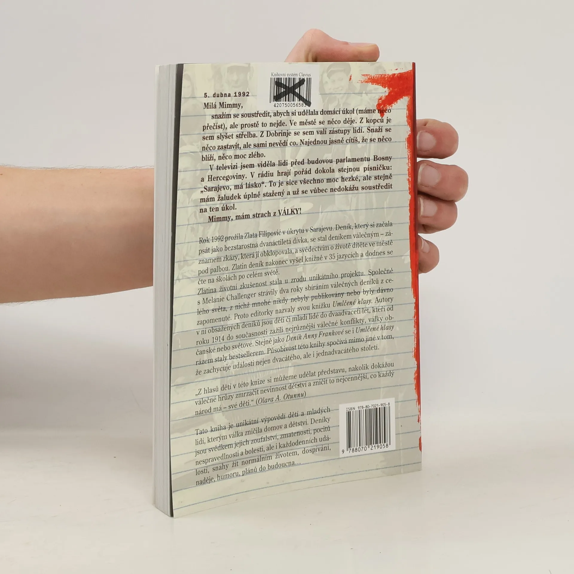 Rok 1992 prožila Zlata Filipović v úkrytu v Sarajevu. Deník, který si začala psát jako bezstarostná dvanáctiletá dívka, se stal deníkem válečným – záznamem zkázy, která ji obklopovala, a svědectvím o životě dítěte ve městě pod palbou. Zlatin deník nakonec vyšel knižně v 35 jazycích a dodnes se čte na školách po celém světě. Její životní zkušenost stála u zrodu unikátního projektu. Společně s Melanie Challenger strávila Zlata Filipović poslední dva roky sbíráním válečných deníků z celého světa, z nichž mnohé nikdy nebyly publikovány nebo byly dávno zapomenuté. Jejich autory jsou děti či mladí lidé do dvaadvaceti let, kteří od roku 1914 do současnosti zažili nejrůznější válečné konflikty, války občanské nebo světové. Soubor válečných deníků, jenž se Zlatě Filipović společně s Melanií Challenger podařilo shromáždit a který nyní vychází pod názvem Umlčené hlasy i v češtině, zachycuje univerzální zkušenost mladých lidí s válkou, ať už se odehrává kdykoliv a kdekoliv. Deníky jsou svědkem jejich zoufalství, zmatenosti, pocitů nespravedlnosti a bolesti, ale i každodenních událostí, snahy žít normálním životem, dospívání, naděje, humoru, plánů do budoucna... Ačkoliv tyto zkušenosti pocházejí z různých míst světa a zahrnují období téměř celého století, jako by spolu mluvily, soucítily spolu a zněly jedním hlasem ukradeného dětství a mládí, které se nikdy nevrátí.