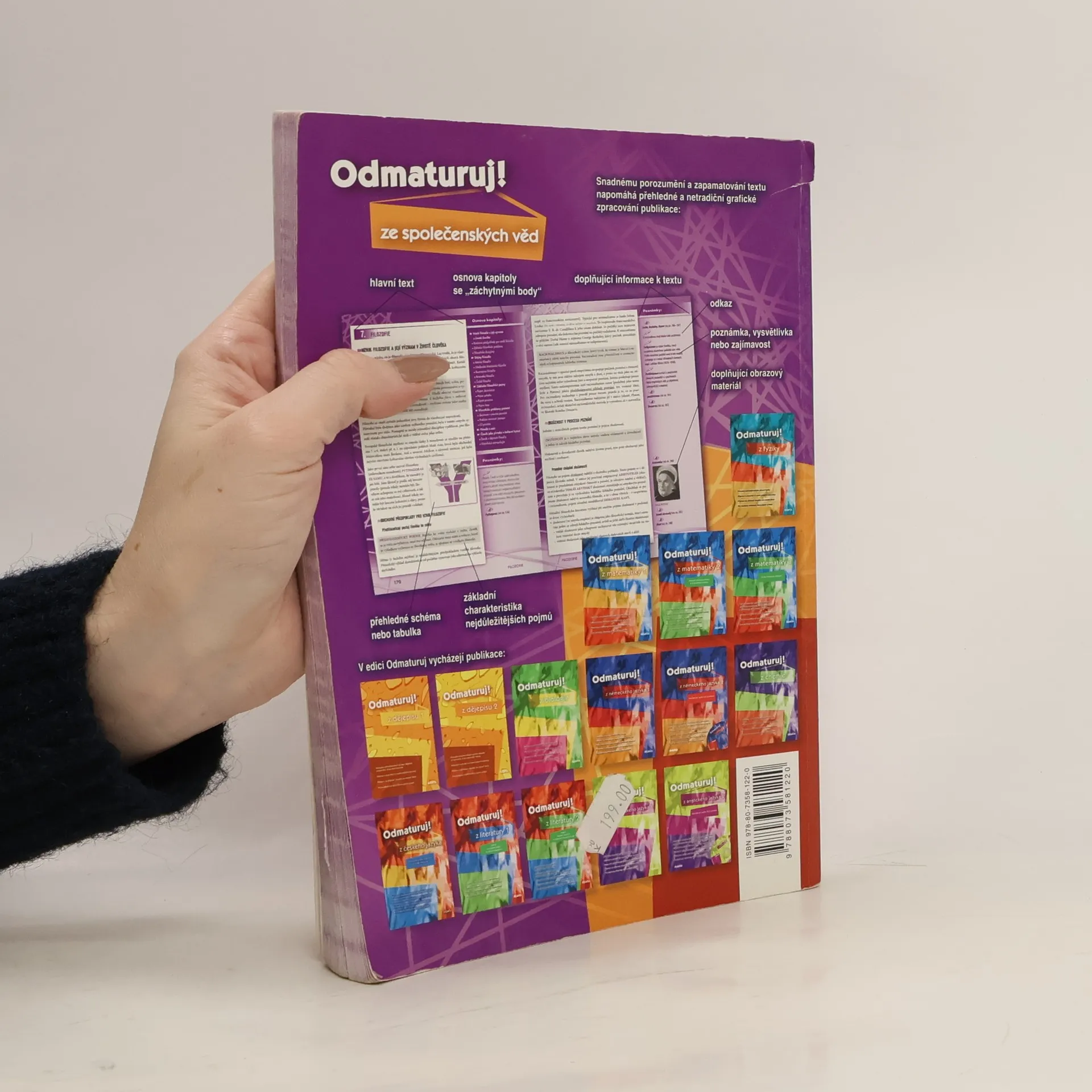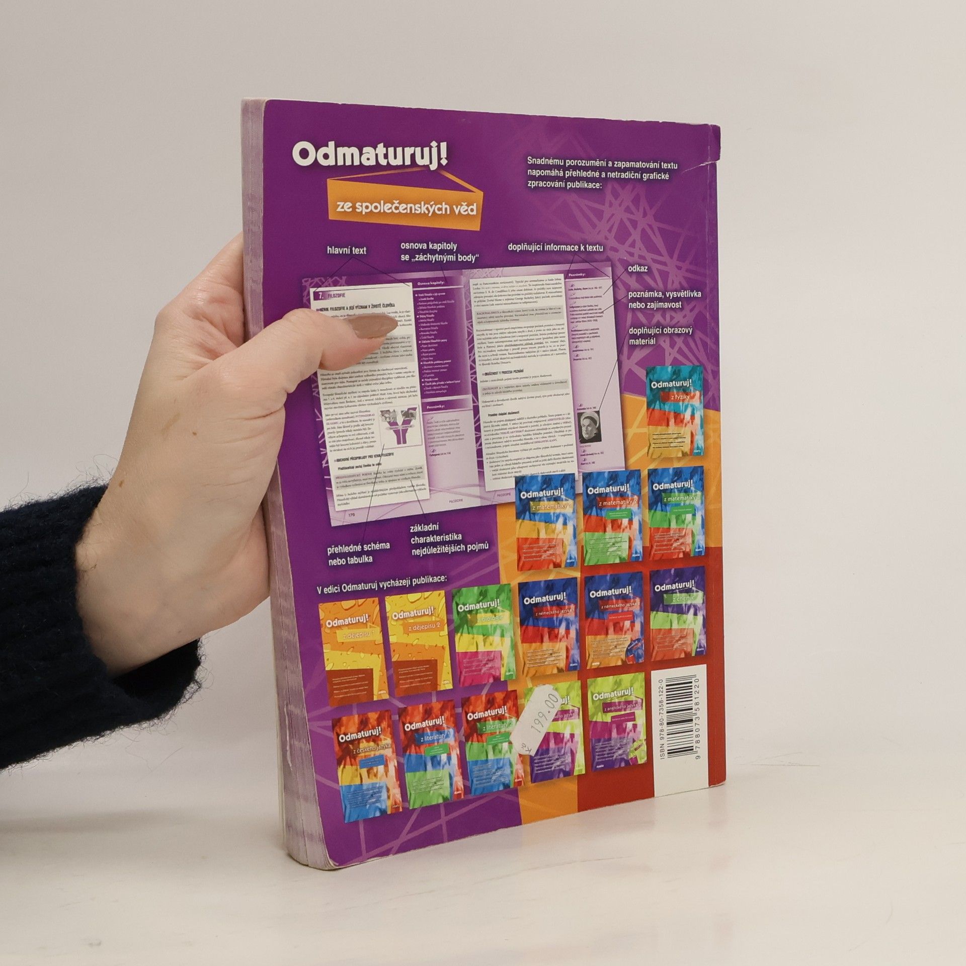 Politologie, právo, mezinárodní vztahy, ekonomie, sociologie, psychologie, filozofie, etika, logika a teorie vědy, náboženství. Aktualizovaná učebnice určena k přípravě na maturitu (podle požadavků nové maturity) a k přijímacím zkouškám na vysoké školy. Publikace byla zpracována v souladu s požadavky MŠMT na reformu středoškolského vzdělávání a podobu a obsah nové celostátní maturity. Kniha je přehledně zpracována do 10 celků dle vědních disciplin, které jsou dále členěny na menší podkapitoly. Snadnou orientaci v textu podporuje grafické odlišení ústředního textu od doplňujících poznámek. Text je doplněn mnoha zajímavostmi, odkazy, přehlednými tabulkami a názornými schématy.