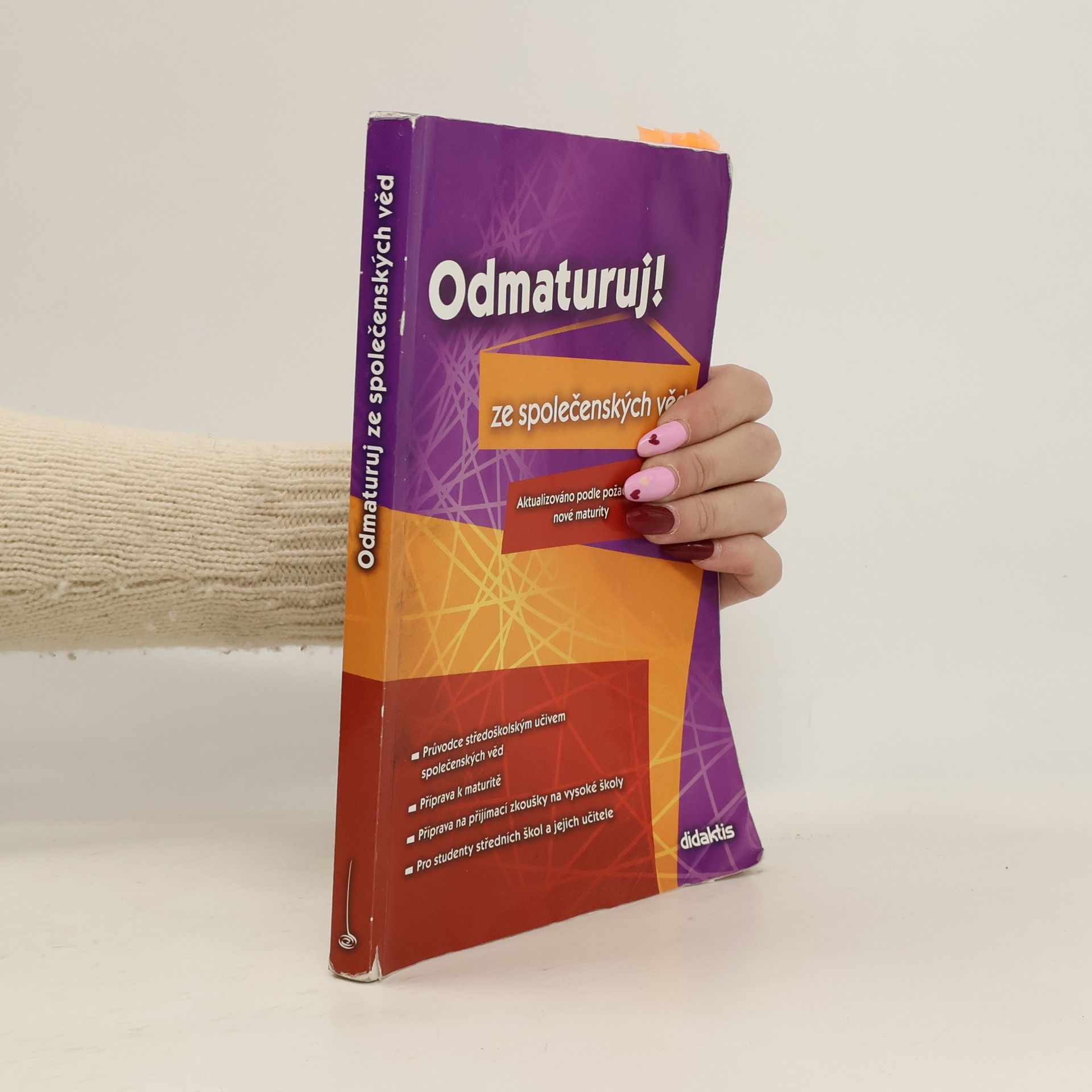 Politologie, právo, mezinárodní vztahy, ekonomie, sociologie, psychologie, filozofie, etika, logika a teorie vědy, náboženství. Aktualizovaná učebnice určena k přípravě na maturitu (podle požadavků nové maturity) a k přijímacím zkouškám na vysoké školy. Publikace byla zpracována v souladu s požadavky MŠMT na reformu středoškolského vzdělávání a podobu a obsah nové celostátní maturity. Kniha je přehledně zpracována do 10 celků dle vědních disciplin, které jsou dále členěny na menší podkapitoly. Snadnou orientaci v textu podporuje grafické odlišení ústředního textu od doplňujících poznámek. Text je doplněn mnoha zajímavostmi, odkazy, přehlednými tabulkami a názornými schématy.