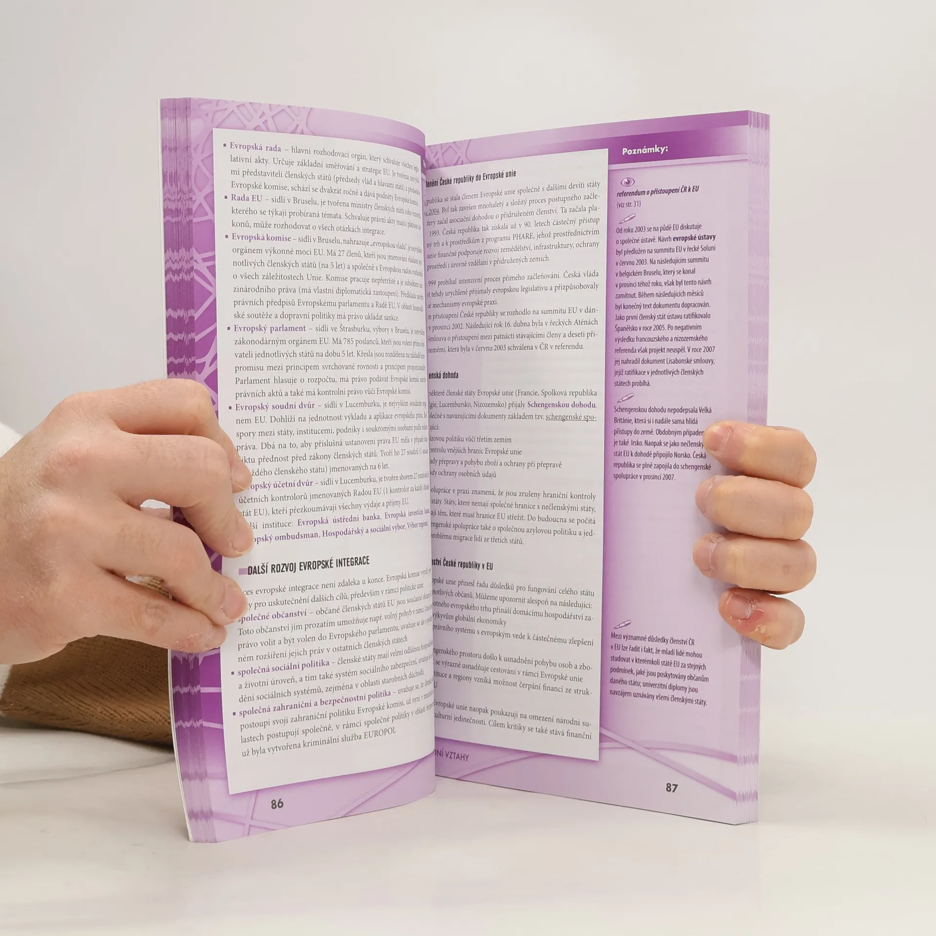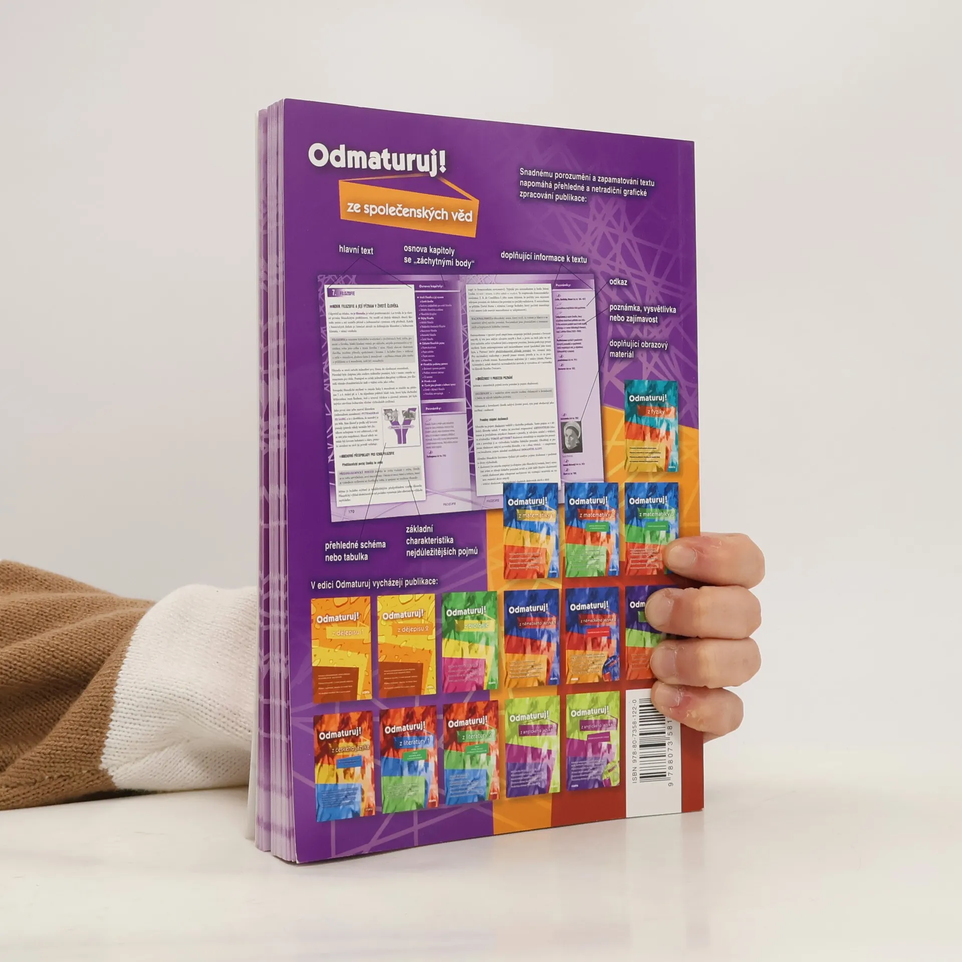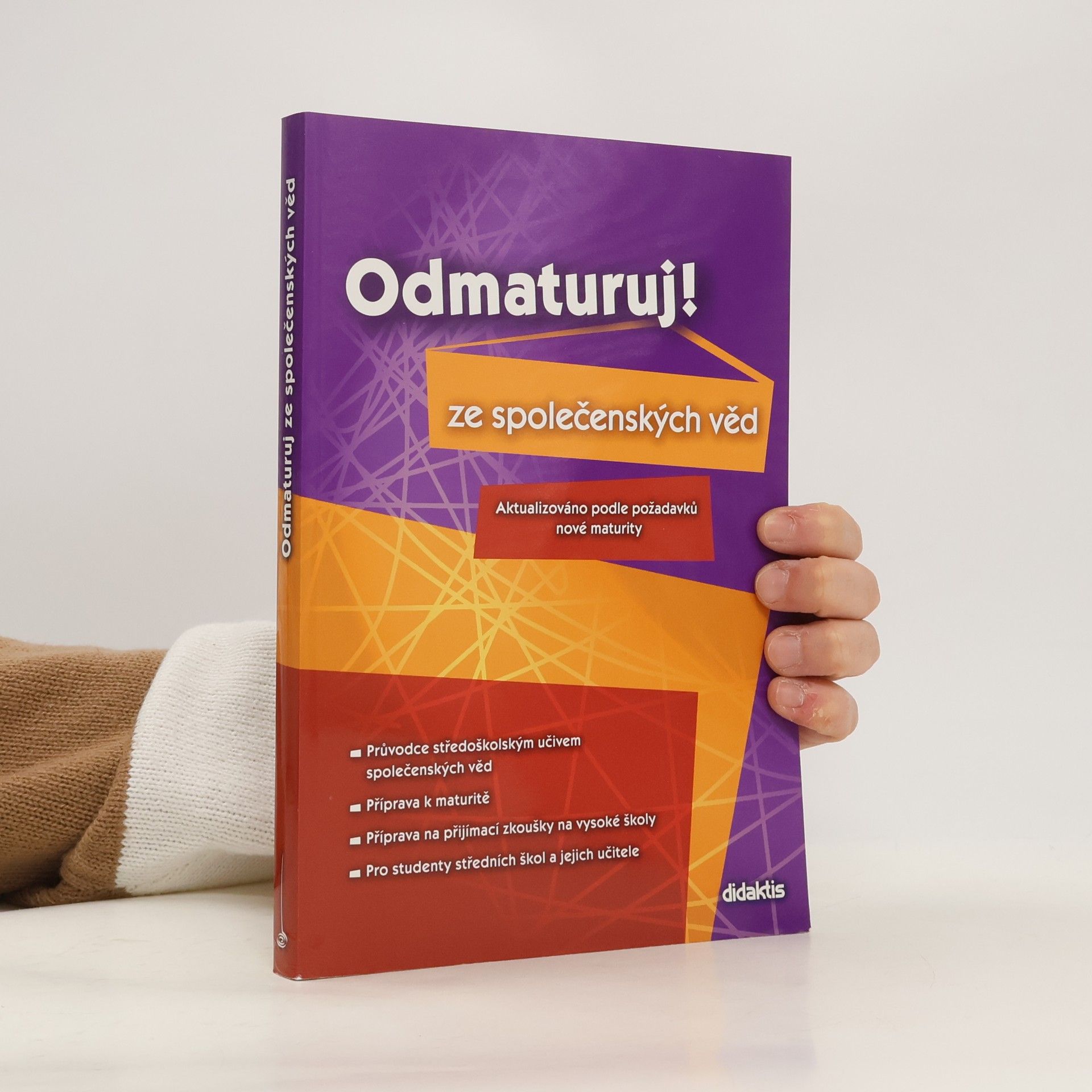Politologie, právo, mezinárodní vztahy, ekonomie, sociologie, psychologie, filozofie, etika, logika a teorie vědy, náboženství. Aktualizovaná učebnice určena k přípravě na maturitu (podle požadavků nové maturity) a k přijímacím zkouškám na vysoké školy. Publikace byla zpracována v souladu s požadavky MŠMT na reformu středoškolského vzdělávání a podobu a obsah nové celostátní maturity. Kniha je přehledně zpracována do 10 celků dle vědních disciplin, které jsou dále členěny na menší podkapitoly. Snadnou orientaci v textu podporuje grafické odlišení ústředního textu od doplňujících poznámek. Text je doplněn mnoha zajímavostmi, odkazy, přehlednými tabulkami a názornými schématy.