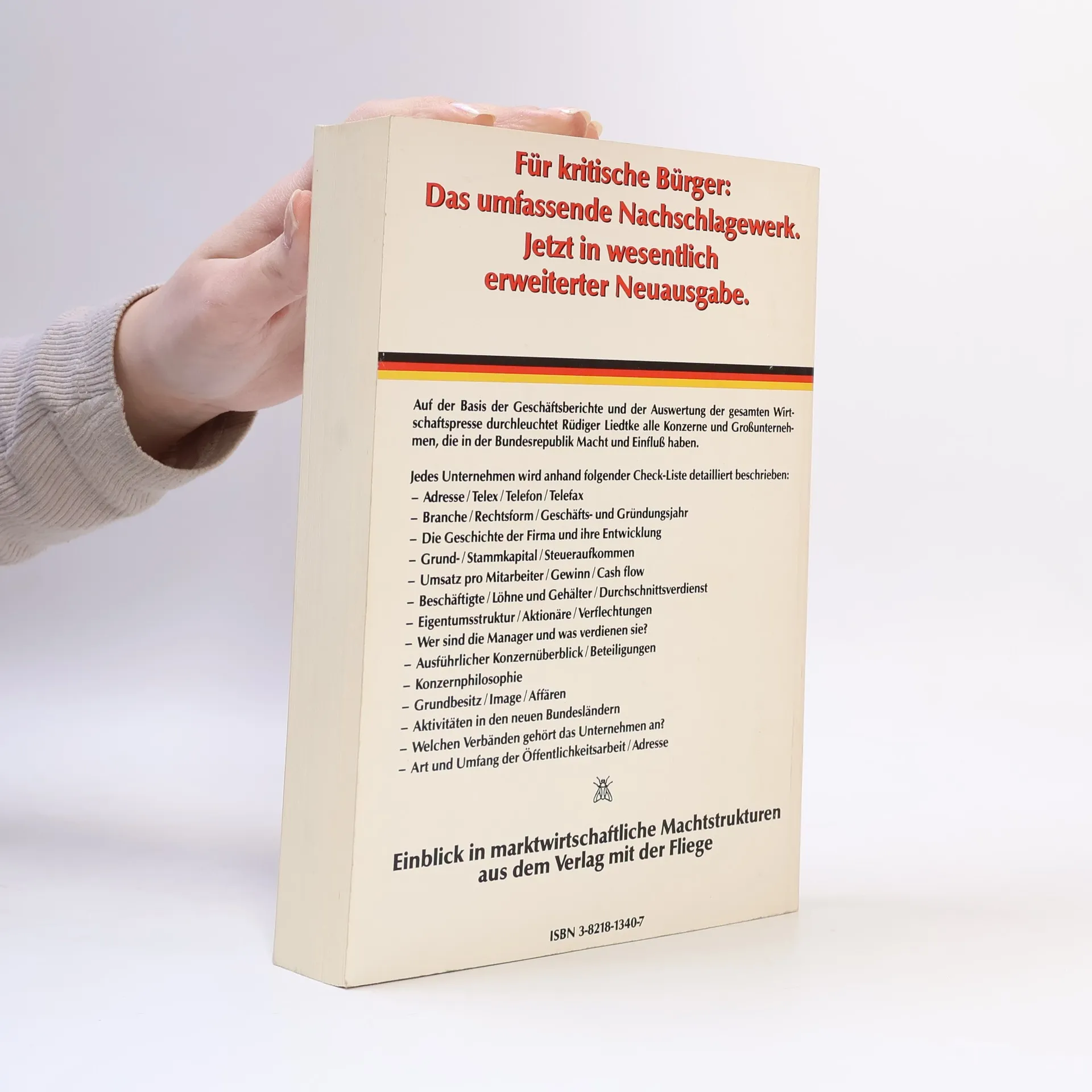 Bietet die Allianz-Aktie ein gutes Preis-Leistungs-Verhältnis? Was macht die Aldi-Kette so erfolgreich? Wie hoch sind die Gehälter der Geschäftsführer großer Konzerne? Wer Antworten auf solche Fragen sucht und aktuelle Informationen über die 100 größten deutschen Unternehmen benötigt, findet in Rüdiger Liedtkes Buch die passende Quelle. Auf über 600 Seiten präsentiert der Kölner Journalist prägnante, informative Firmendossiers. Jedes Porträt beginnt mit einem Überblick zur Geschichte und Entwicklung des Unternehmens, gefolgt von Details zu Besitzverhältnissen, Konzernphilosophie, Beteiligungen sowie Bewertungen der Aktienkurse und Aspekten wie Umweltschutz und Forschung. Diagramme und Schaubilder veranschaulichen wirtschaftliche Eckdaten. Das übersichtliche Layout und Randnotizen mit den wichtigsten Informationen ermöglichen eine schnelle Orientierung. Zudem enthält das Buch Kontaktdaten von PR-Abteilungen, Internet- und E-Mail-Adressen sowie ein umfangreiches Personen- und Firmenregister, was es zu einem wertvollen Nachschlagewerk, nicht nur für Wirtschaftsjournalisten, macht.