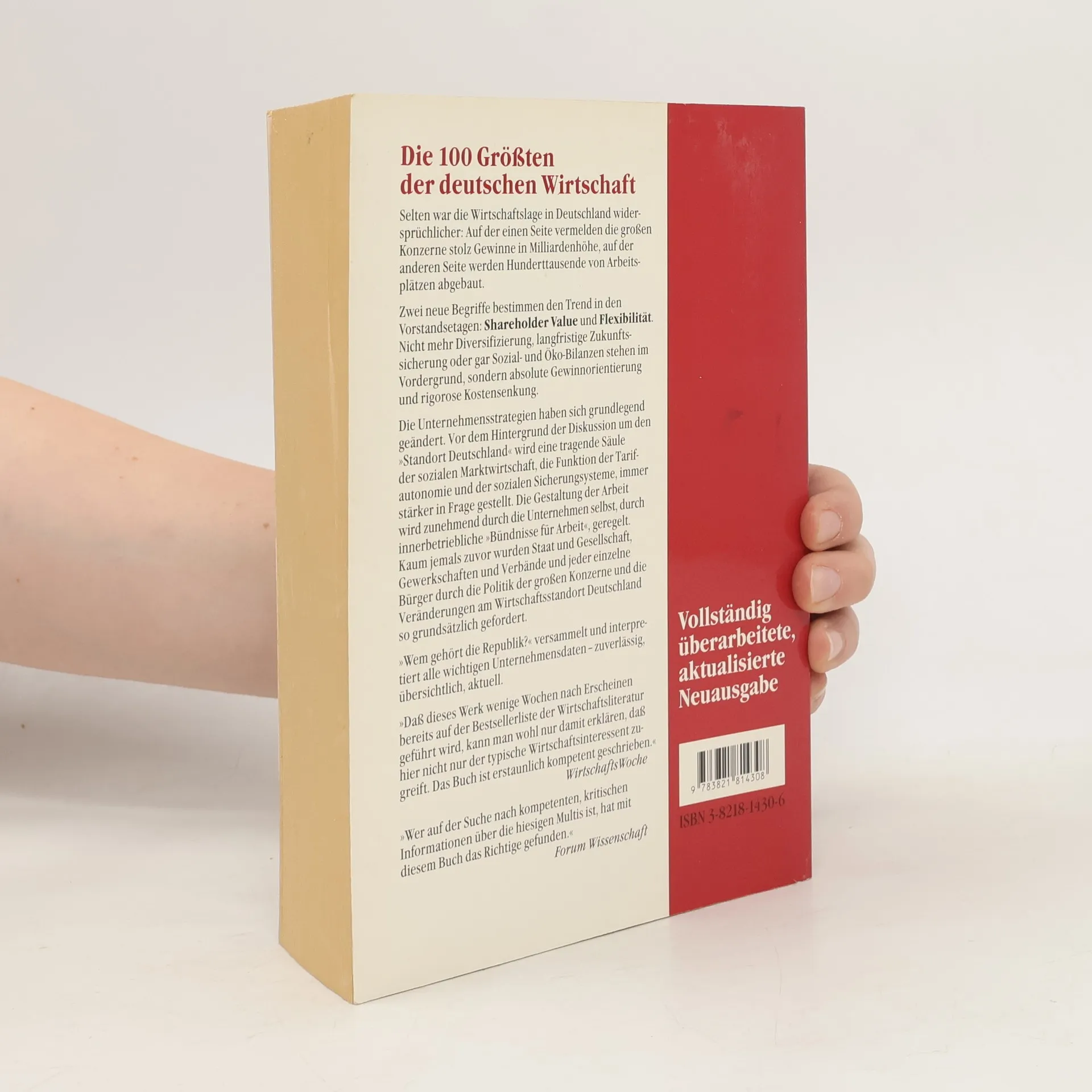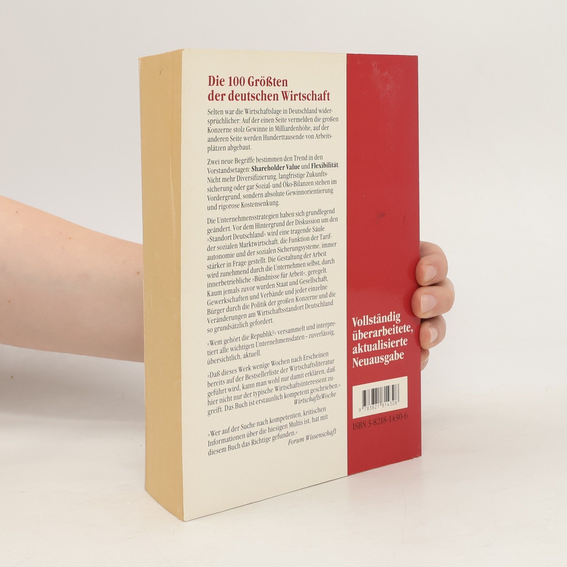 Bietet die Allianz-Aktie ein gutes Preis-Leistungs-Verhältnis? Was macht die Aldi-Kette so erfolgreich? Wie hoch sind die Gehälter der Geschäftsführer großer Konzerne? Wer Antworten auf solche Fragen sucht und aktuelle Informationen über die 100 größten deutschen Unternehmen benötigt, findet in Rüdiger Liedtkes Buch die passende Quelle. Auf über 600 Seiten präsentiert der Kölner Journalist prägnante, informative Firmendossiers. Jedes Porträt beginnt mit einem Überblick zur Geschichte und Entwicklung des Unternehmens, gefolgt von Details zu Besitzverhältnissen, Konzernphilosophie, Beteiligungen sowie Bewertungen der Aktienkurse und Aspekten wie Umweltschutz und Forschung. Diagramme und Schaubilder veranschaulichen wirtschaftliche Eckdaten. Das übersichtliche Layout und Randnotizen mit den wichtigsten Informationen ermöglichen eine schnelle Orientierung. Zudem enthält das Buch Kontaktdaten von PR-Abteilungen, Internet- und E-Mail-Adressen sowie ein umfangreiches Personen- und Firmenregister, was es zu einem wertvollen Nachschlagewerk, nicht nur für Wirtschaftsjournalisten, macht.