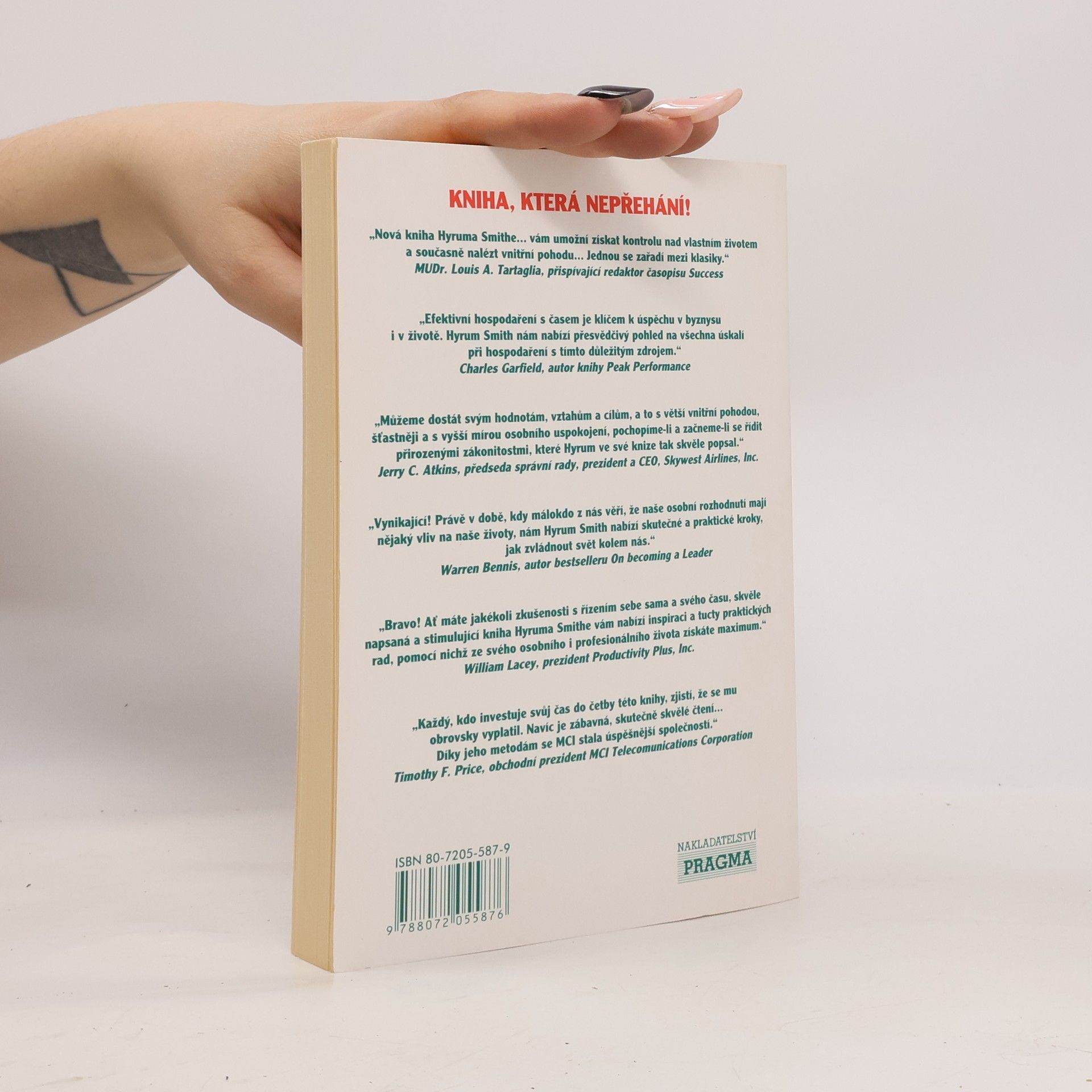 Osvědčené strategie pro zvýšení vaší produktivity a dosažení vnitřního míru. Hyrum Smith byl u zrodu diářů Franklin (dnes FranklinCovey) a napsal pro vás velmi čtivou a praktickou knihu věnovanou plánování času. Najdete zde přesný postup a rady: kde začít s plánováním času, principy, ze kterých by mělo vaše plánování vycházet, vaše hodnoty, vaše cíle, jaký diář je dobré používat, jak správně diář používat, jak si plánovat schůzky, kam si psát poznámky a mnoho dalších užitečných informací.