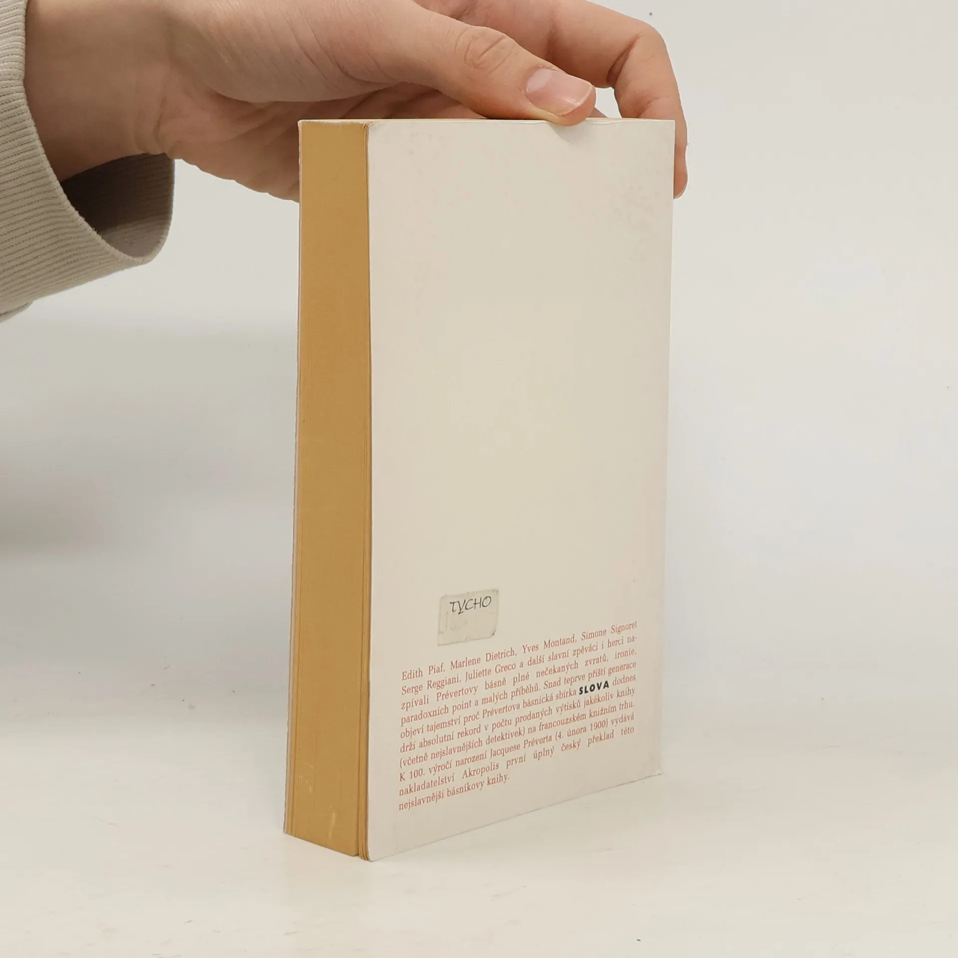 Vůbec první překlad proslulé básnické sbírky populárního francouzského autora do češtiny (doposud z ní u nás vycházely pouze výbory), vydávané ke 100. výročí narození tohoto velkého básníka. Sbírka, která ve Francii vyšla v roce 1945 a od té doby její náklad překročil několik milionů výtisků, vznikala původně jako texty k písním, jako verše určené k předčítání v literárních kabaretech, veršované příběhy do nočních klubů za doprovodu hudby, řada těchto textů zlidověla díky podání známých šansoniérů, jako byli např. E. Piaf, M. Dietrich, Y. Montand, J. Greco aj. Prévertovu legendární sbírku přebásnil Petr Skarlant, který ji také doprovodil zasvěceným komentářem.