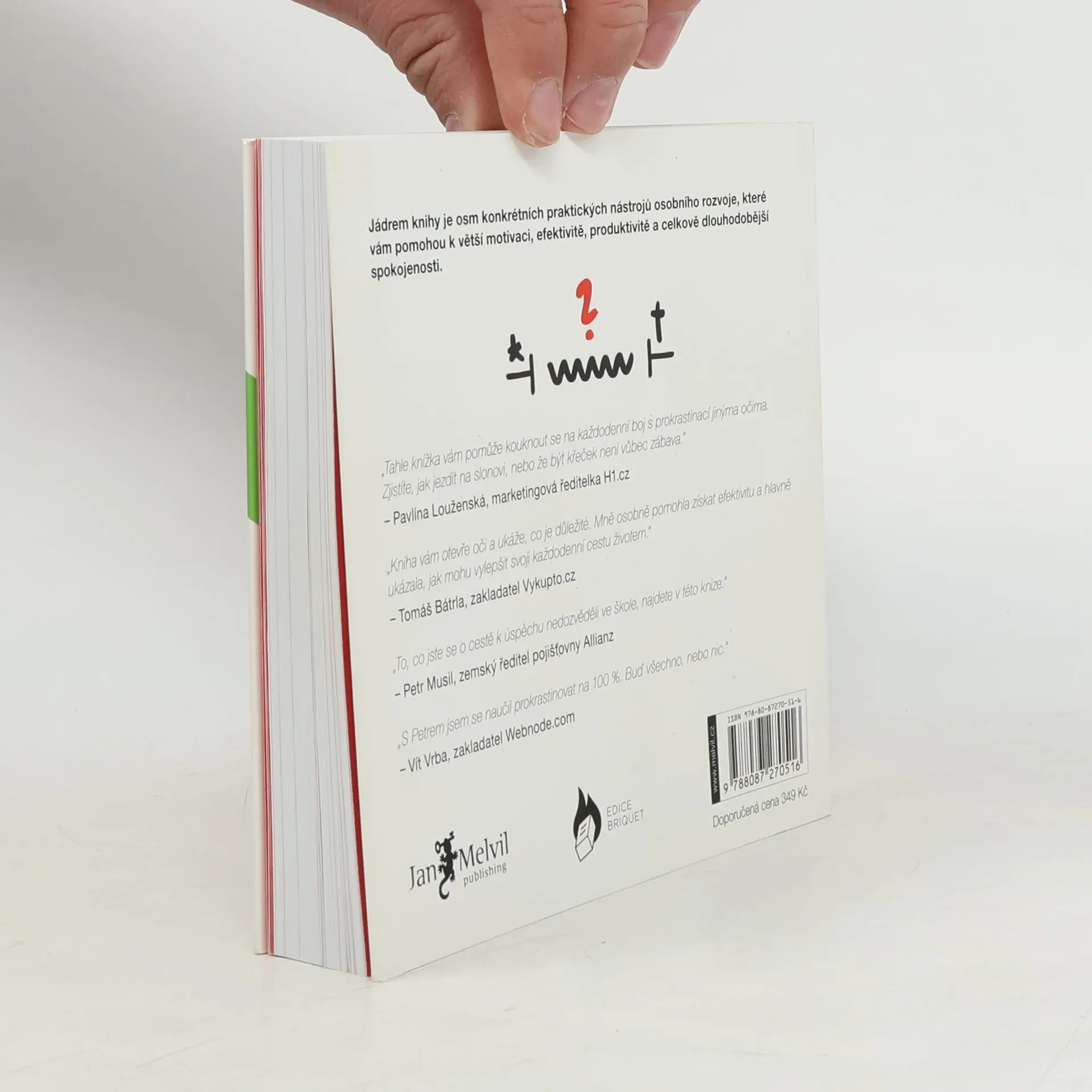 Jak přestat odkládat a začít žít naplno. Znáte ten pocit, když se vám nechce začít dělat na nějakém úkolu? Stává se vám, že odkládáte i věci, které opravdu dělat chcete? Snažíte si sami sobě poručit, ale neposlechnete se? Petr Ludwig v původní české publikaci opírající se o poslední vědecké výzkumy světových univerzit z oblasti lidského rozhodování, motivace a produktivity přináší odpověď na otázku, kterou si klade každý z nás: Jak z toho ven? Jak být produktivnější bez větší únavy? Jak začít využívat náš čas efektivněji? Jak prožít každý den naplno? Říman Seneca ve svém slavném citátu řekl: „Zatímco ztrácíme svůj čas váháním a odkládáním, život utíká.” Tato kniha vám pomůže s váháním a odkládáním dlouhodobě bojovat a zlepší vaši schopnost využívat čas smysluplněji. Jádrem knihy je osm praktických nástrojů osobního rozvoje, které vám pomohou nad prokrastinací vyhrávat každý den.
