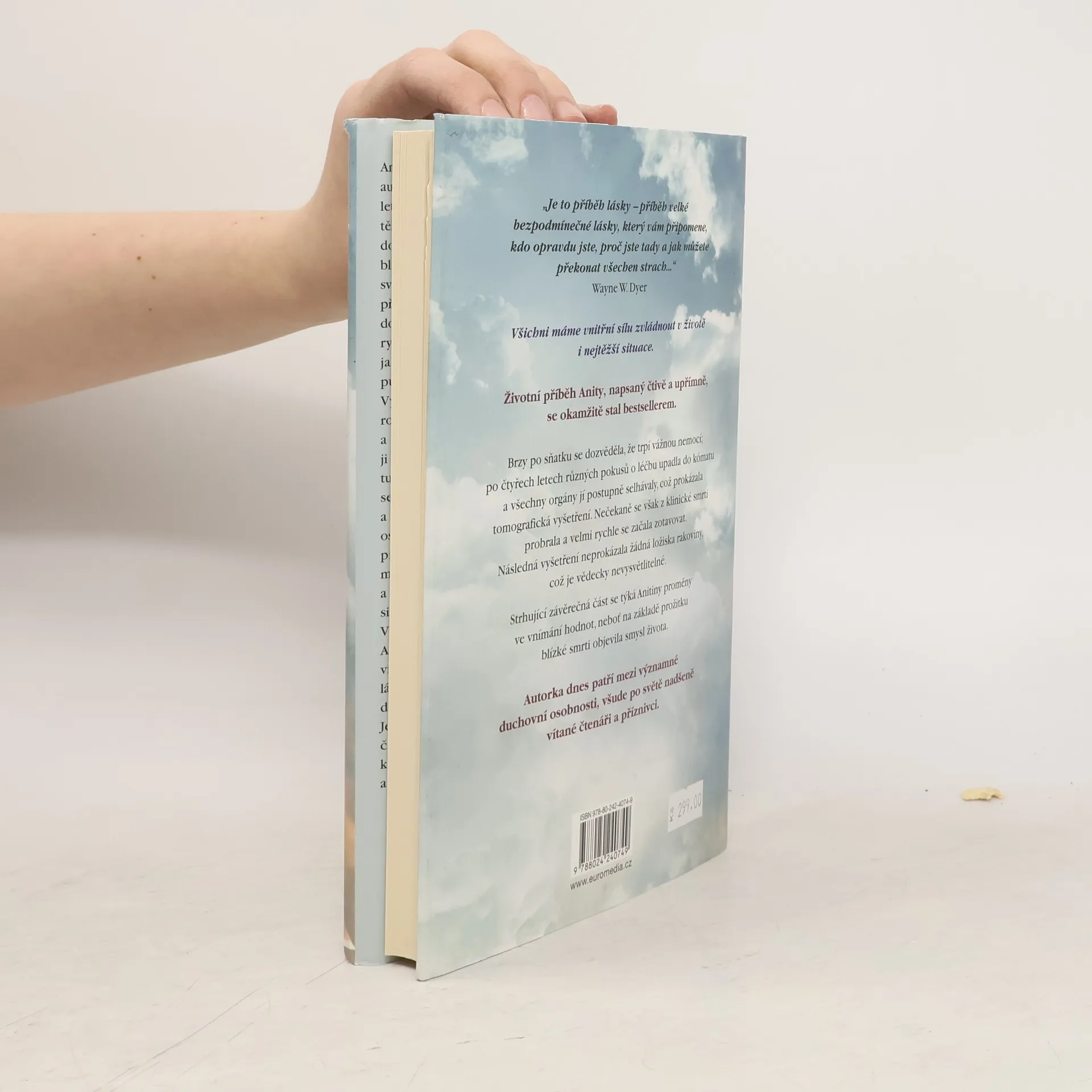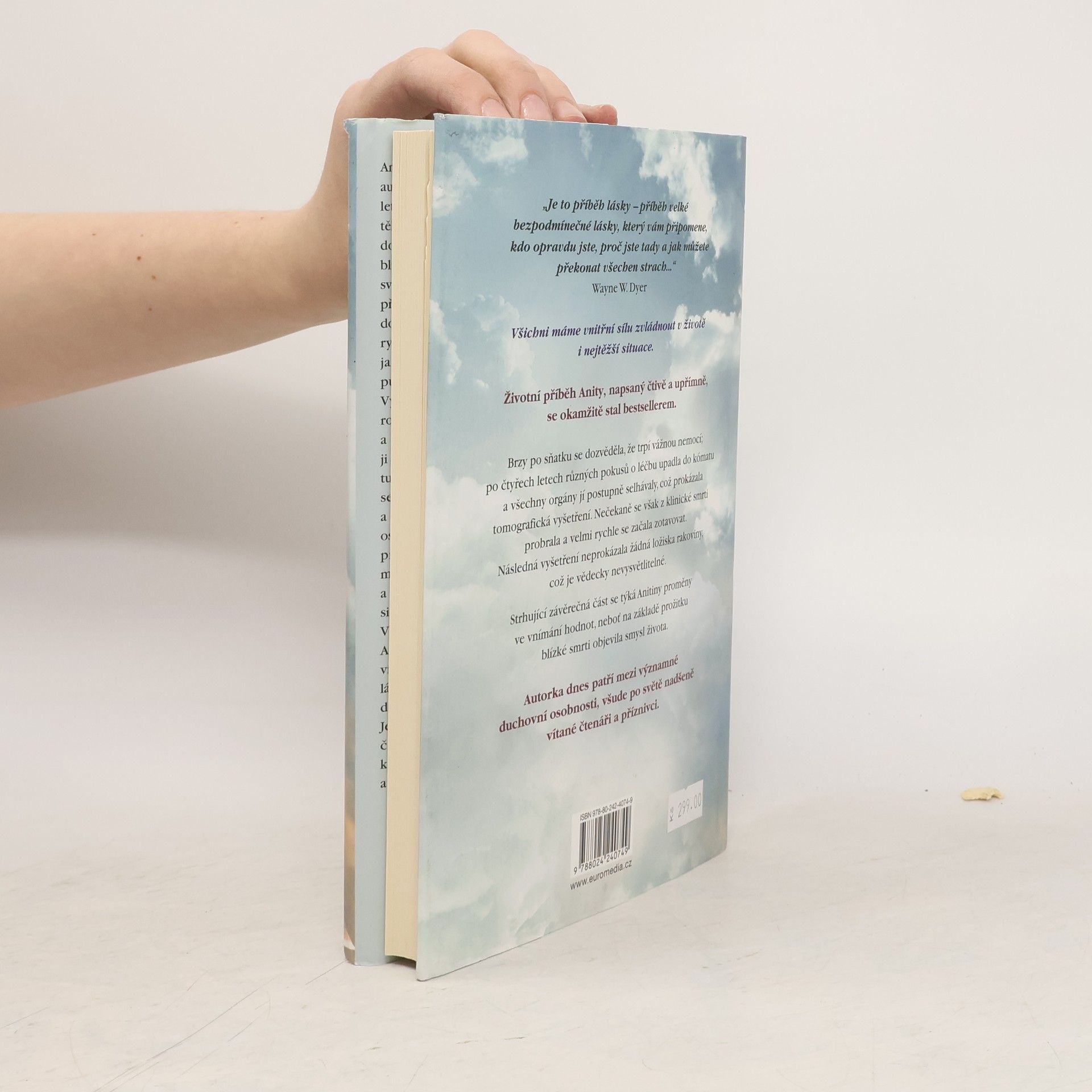 Životní příběh Anity, napsaný čtivě a upřímně, se okamžitě stal bestsellerem a autorka dnes patří mezi významné osobnosti, nadšeně vítané čtenáři po celém světě. Brzy po sňatku u ní diagnostikovali rakovinu, po čtyřech letech různých pokusů o léčbu upadla do kómatu a všechny orgány jí postupně selhávaly, což prokázala tomografická vyšetření. Nečekaně se však z klinické smrti probrala a velmi rychle se začala zotavovat. Následná vyšetření neprokázala žádná ložiska rakoviny, což je zcela neuvěřitelné a vědecky nevysvětlitelné. Strhující závěrečná část se týká autorčiny proměny ve vnímání hodnot, neboť na základě prožitku blízké smrti objevila smysl života. Anita Moorjani ve své inspirativní autobiografii líčí, jak jí po čtyřech letech boje se zákeřnou nemocí tělo vypovědělo službu. Dostala se do neobyčejného stavu zážitku blízké smrti a v něm si uvědomila svou vlastní hodnotu… i skutečnou příčinu své nemoci. Když nabyla vědomí, její stav se zlepšoval takovou rychlostí, že ji za několik týdnů bez jakýchkoli známek rakoviny propustili z nemocnice. Vyrůstala v tradiční hinduistické rodině uprostřed převážně čínské a britské společnosti a odmalička ji silně ovlivňovaly nejrůznější kulturní a náboženské zvyklosti.