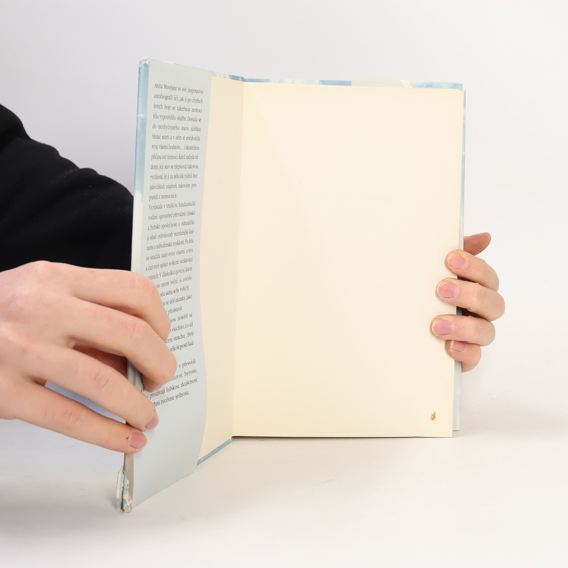 Životní příběh Anity, napsaný čtivě a upřímně, se okamžitě stal bestsellerem a autorka dnes patří mezi významné osobnosti, nadšeně vítané čtenáři po celém světě. Brzy po sňatku u ní diagnostikovali rakovinu, po čtyřech letech různých pokusů o léčbu upadla do kómatu a všechny orgány jí postupně selhávaly, což prokázala tomografická vyšetření. Nečekaně se však z klinické smrti probrala a velmi rychle se začala zotavovat. Následná vyšetření neprokázala žádná ložiska rakoviny, což je zcela neuvěřitelné a vědecky nevysvětlitelné. Strhující závěrečná část se týká autorčiny proměny ve vnímání hodnot, neboť na základě prožitku blízké smrti objevila smysl života. Anita Moorjani ve své inspirativní autobiografii líčí, jak jí po čtyřech letech boje se zákeřnou nemocí tělo vypovědělo službu. Dostala se do neobyčejného stavu zážitku blízké smrti a v něm si uvědomila svou vlastní hodnotu… i skutečnou příčinu své nemoci. Když nabyla vědomí, její stav se zlepšoval takovou rychlostí, že ji za několik týdnů bez jakýchkoli známek rakoviny propustili z nemocnice. Vyrůstala v tradiční hinduistické rodině uprostřed převážně čínské a britské společnosti a odmalička ji silně ovlivňovaly nejrůznější kulturní a náboženské zvyklosti.