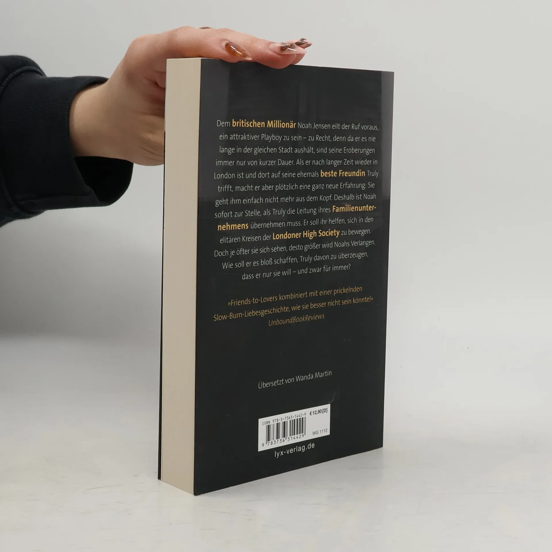 Dem britischen Millionär Noah Jensen eilt der Ruf voraus, ein Playboy zu sein - zu Recht! Als er nach langer Zeit wieder seine ehemals beste Freundin Truly trifft, macht er aber plötzlich eine ganz neue Erfahrung: Sie geht ihm einfach nicht mehr aus dem Kopf. Deshalb ist Noah sofort zur Stelle, als Truly seine Unterstützung braucht. Er soll ihr helfen, sich in den Kreisen der Londoner High Society zu bewegen. Doch je öfter sie sich sehen, desto größer wird Noahs Verlangen. Wie soll er es schaffen, Truly davon zu überzeugen, dass er nur sie will - und zwar für immer? „Friends-to-Lovers kombiniert mit einer prickelnden Slow-Burn-Liebesgeschichte!“ UnboundBookReviews