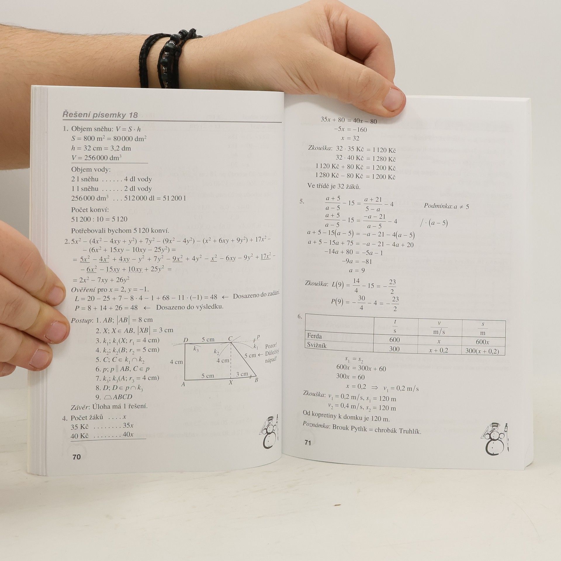 Příprava k přijímacím zkouškám z matematiky jako matematický kalendář. Krok za krokem, den po dni, týden po týdnu - pracovní plán z matematiky, 52 písemných prací, na každý týden dvě. Řešené matematické práce s tabulkami úspěšnosti umožní srovnání s velkým vzorkem žáků. Doplňkové úlohy na každý týden jsou řazeny od jednoduchých problémů k těžším až nejtěžším. Publikace poskytuje šanci, postupně si vybudovat matematické sebevědomí a získávat den po dni vyšší jistotu ve svém počítání. Výklad je s podrobným rozborem důležitých příkladů jasný a srozumitelný. Žák pracuje na přípravě od listopadu. Kdo začne s přípravou později, na začátku své tempo upraví tak, aby se co nejrychleji dostal na potřebnou úroveň.