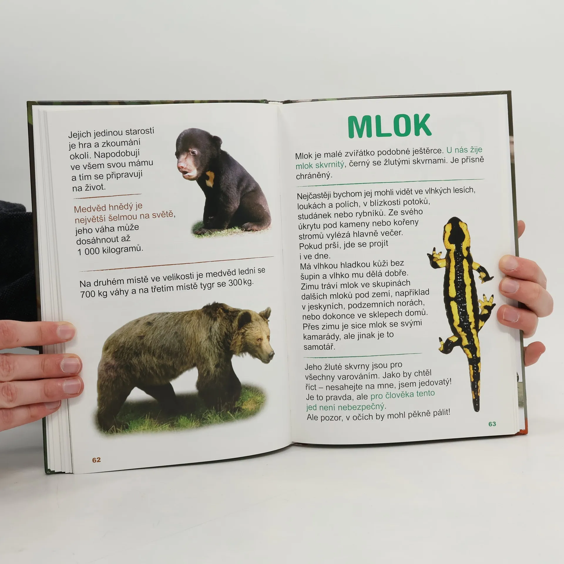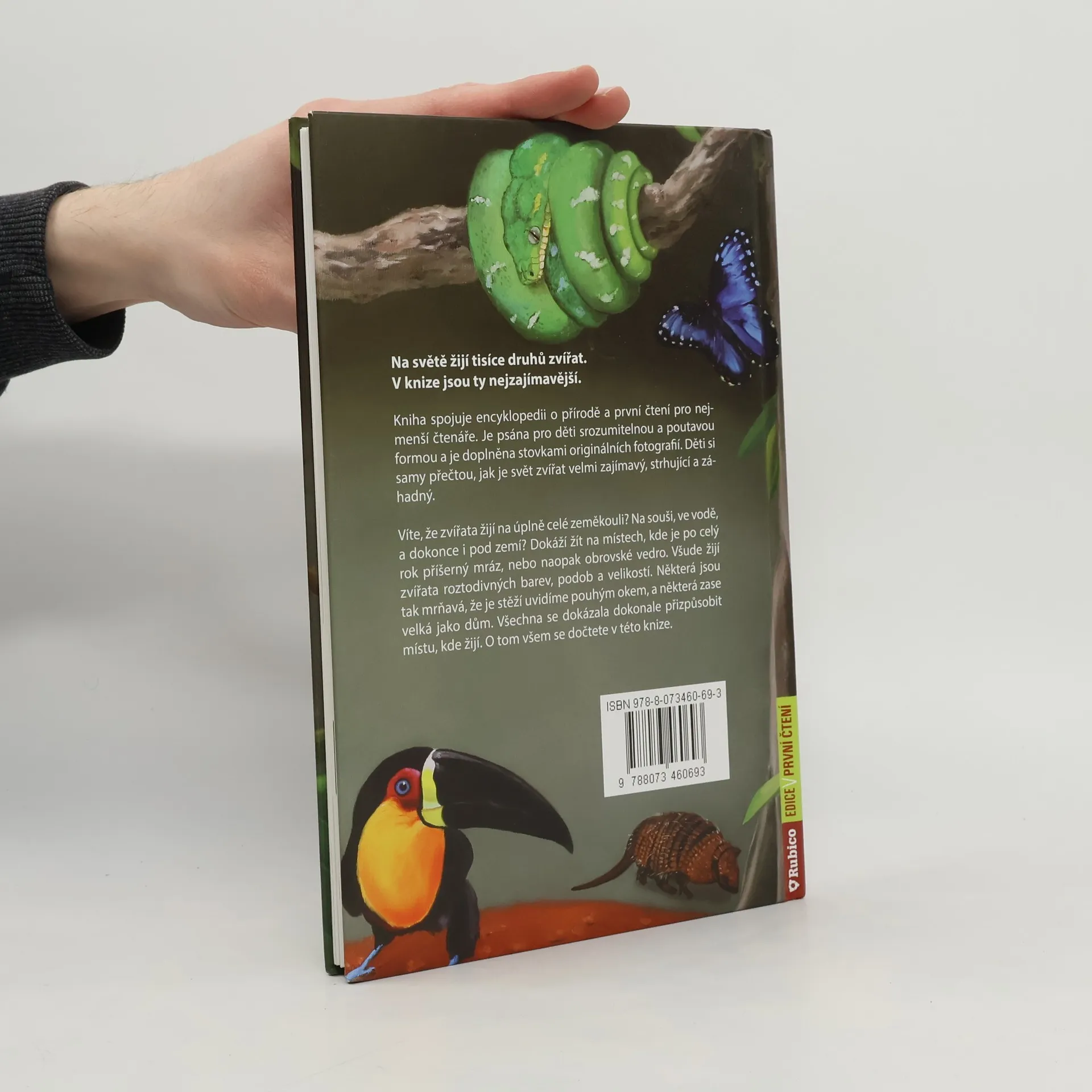 Víte, že zvířata žijí na úplně celé zeměkouli? Na souši, ve vodě, a dokonce i pod zemí? Dokáží žít na místech, kde je po celý rok příšerný mráz, nebo naopak obrovské vedro. Všude žijí zvířata roztodivných barev, podob a velikostí. Některá jsou tak mrňavá, že je stěží uvidíme pouhým okem, a některá zase velká jako dům. Všechna se dokázala dokonale přizpůsobit místu, kde žijí. O tom všem se dočtete v této knize. Kniha spojuje encyklopedii o přírodě a první čtení pro nejmenší čtenáře. Je psána pro děti srozumitelnou a poutavou formou a je doplněna stovkami originálních fotografií. Děti si samy přečtou, jak je svět zvířat velmi zajímavý, strhující a záhadný. Jednoduchý text je psán velkým písmem, slova nejsou rozdělena na dva řádky.