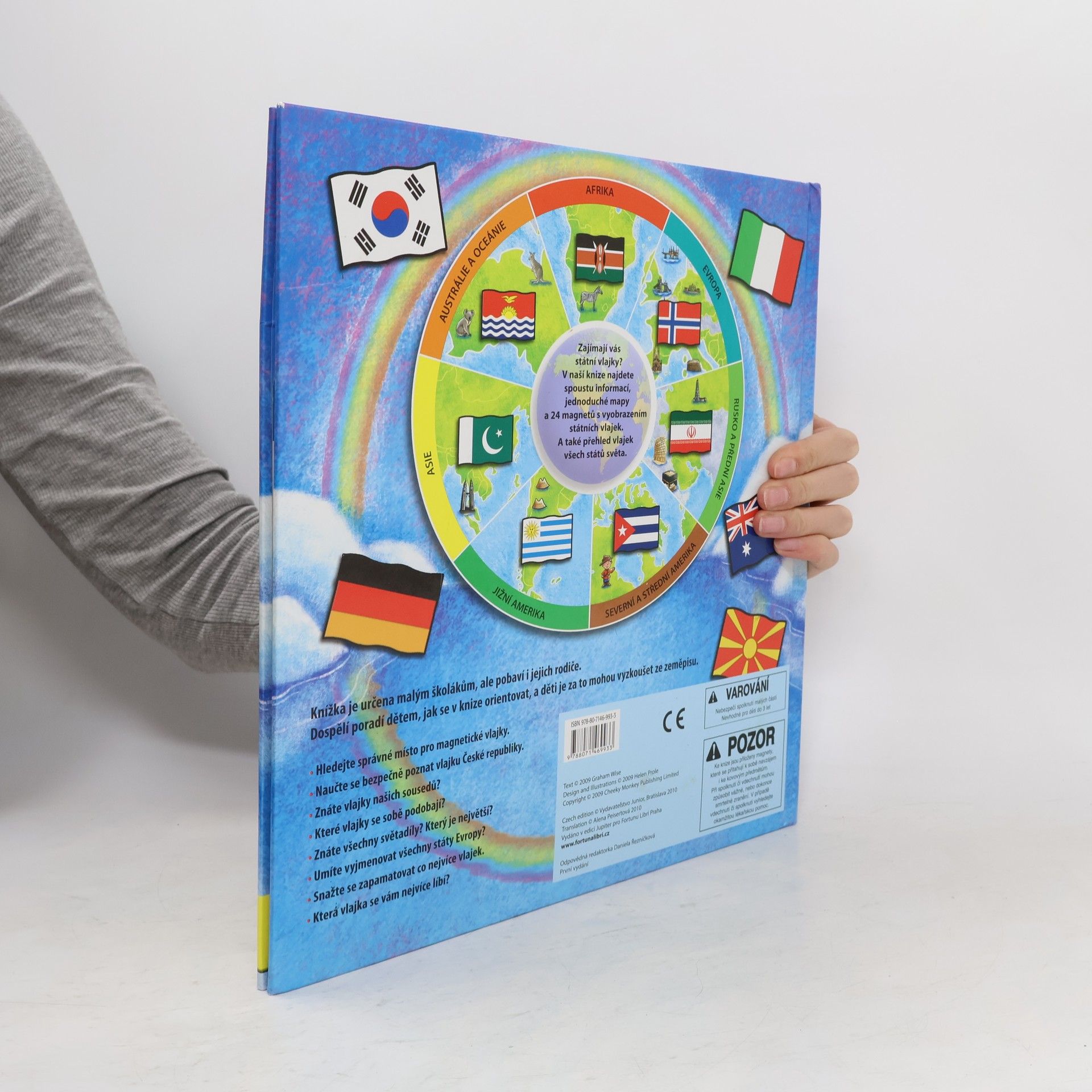 Maxi leporelo s magnety pro děti, které se zajímají o zeměpis, a hlavně o vlajky jednotlivých států. V knize najdou spoustu informací, jednoduché mapy a 24 magnetů s vyobrazením státních vlajek. A také přehled vlajek všech států světa. Knížka je určena malým školákům, ale pobaví i jejich rodiče. Dospělí poradí dětem, jak se v knize orientovat, a děti je za to mohou vyzkoušet ze zeměpisu.