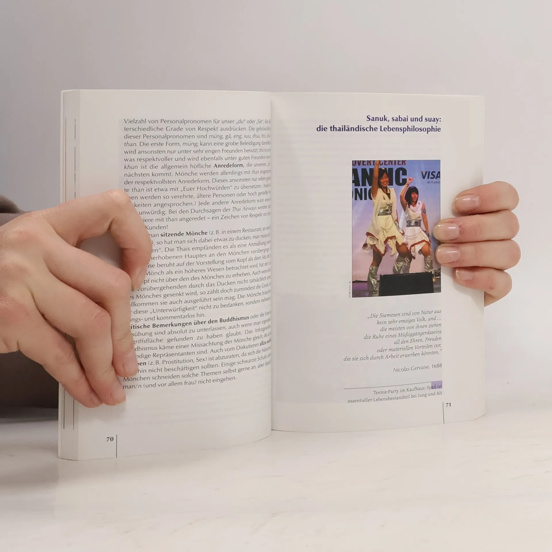 Das Wesen Thailands und seiner Bewohner kann nur der verstehen, der sich mit Kultur, Alltagsleben und Religion der Thailänder auseinandersetzt. Dieses Buch beschreibt die Denk- und Verhaltensweisen der Einwohner, erklärt die geschichtlichen, religiösen und sozialen Hintergründe, die zu diesen Lebensweisen führen und bietet somit eine Orientierung im Dschungel des fremden Alltags. Familienleben, Moralvorstellungen und Anstandsregeln werden genauso erläutert wie Umgangsformen, religiöse Gebote oder Tischsitten. Davon abgeleitet werden Empfehlungen für den Reisealltag, z. B. im Hotel, unterwegs, beim Einkaufen und beim alltäglichen Umgang mit den Einwohnern des Gastlandes.