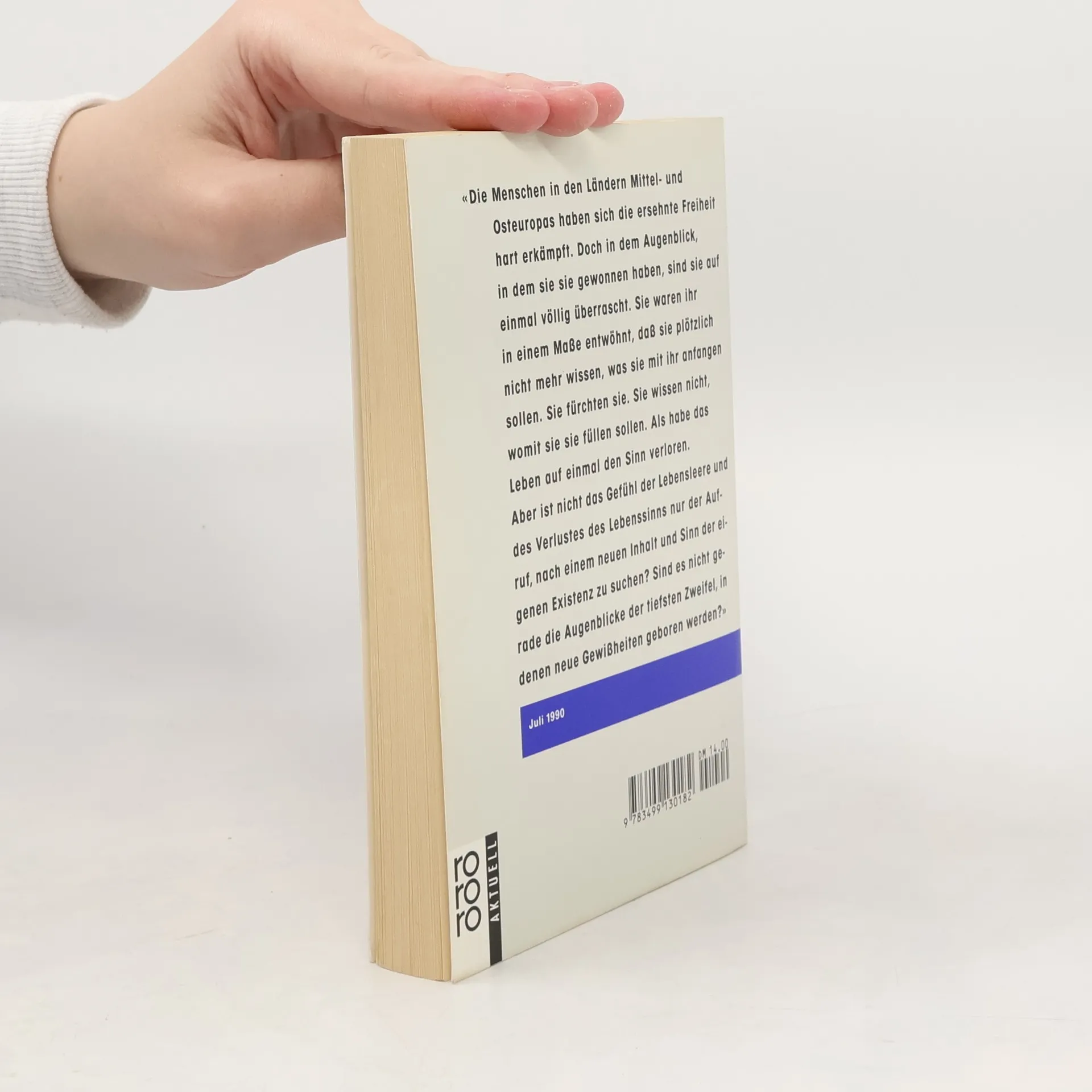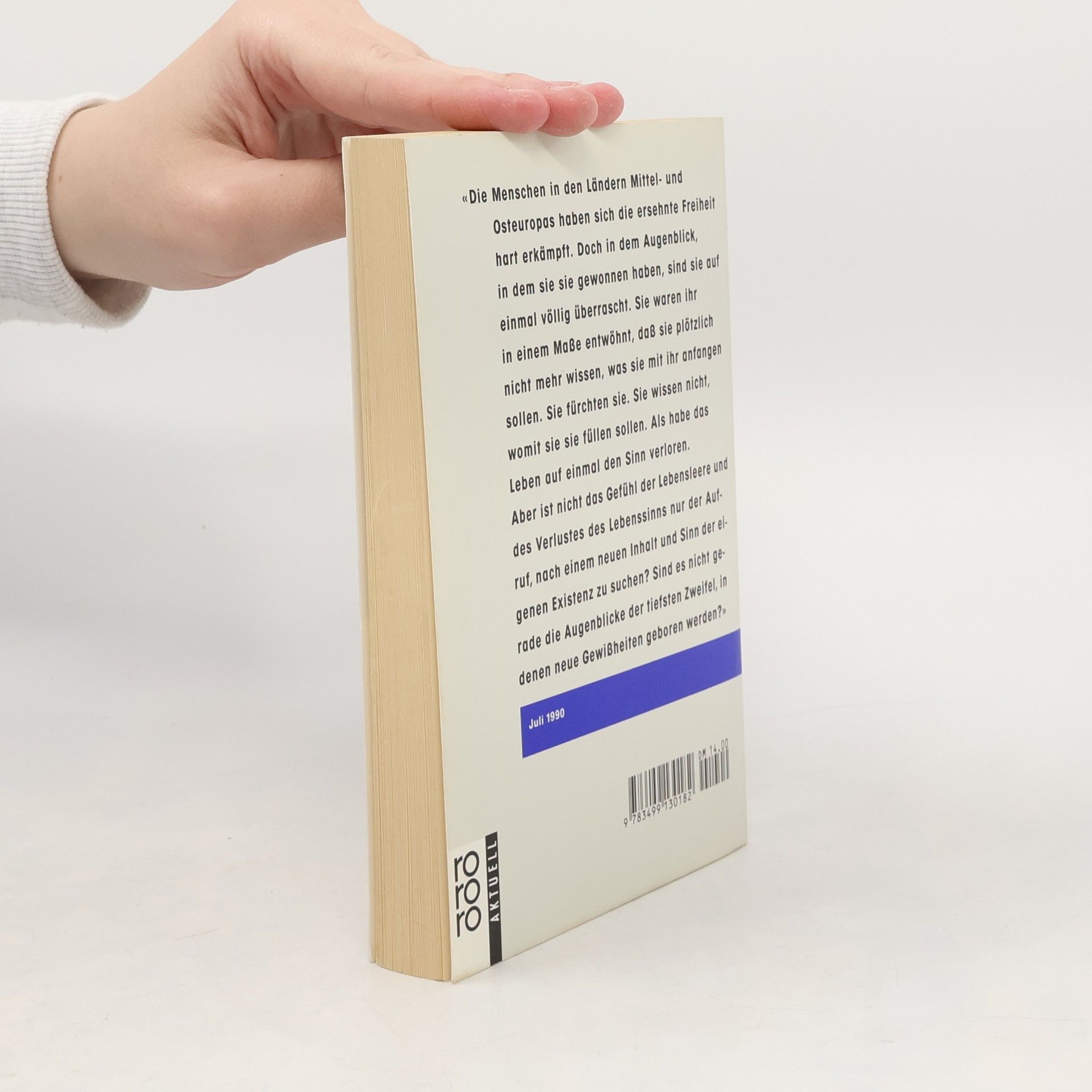 «Die Menschen in den Ländern Mittel- und Osteuropas haben sich die ersehnte Freiheit hart erkämpft. Doch in dem Augenblick, in dem sie sie gewonnen haben, sind sie auf einmal völlig überrascht. Sie waren ihr in einem Maße entwöhnt, daß sie plötzlich nicht mehr wissen, was sie mit ihr anfangen sollen. Sie fürchten sie. Sie wissen nicht, womit sie sie füllen sollen. Als habe das Leben auf einmal den Sinn verloren. Aber ist nicht das Gefühl der Lebensleere und des Verlustes des Lebenssinns nur der Aufruf, nach einem neuen Inhalt und Sinn der eigenen Existenz zu suchen? Sind es nicht gerade die Augenblicke der tiefsten Zweifel, in denen neue Gewißheiten geboren werden?» Juli 1990