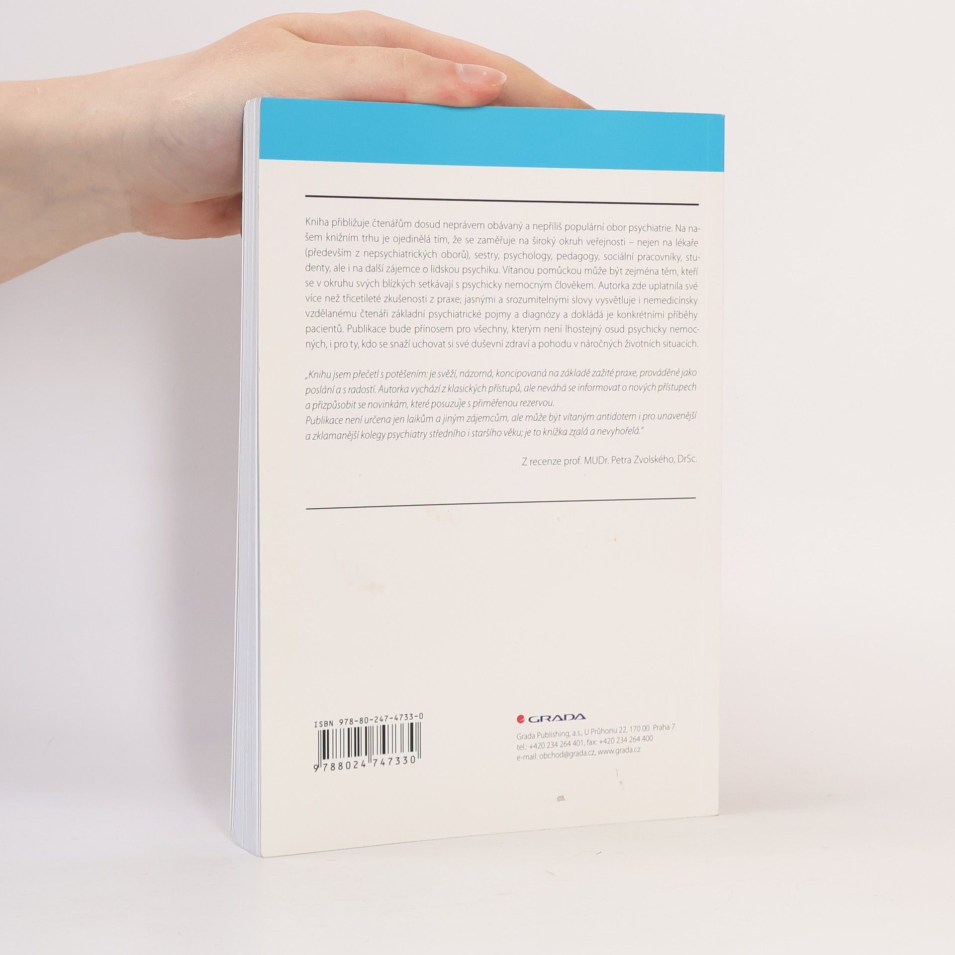 Kniha přibližuje čtenářům obor psychiatrie. Na našem knižním trhu je ojedinělá tím, že se zaměřuje na široký okruh veřejnosti – nejen na lékaře (především z nepsychiatrických oborů), sestry, psychology, pedagogy, sociální pracovníky, studenty, ale i na další zájemce o lidskou psychiku. Vítanou pomůckou může být zejména těm, kteří se v okruhu svých blízkých setkávají s psychicky nemocným člověkem. Autorka zde uplatnila své více než třicetileté zkušenosti z praxe; jasnými a srozumitelnými slovy vysvětluje i nemedicínsky vzdělanému čtenáři základní psychiatrické pojmy a diagnózy a dokládá je konkrétními příběhy pacientů. Publikace bude přínosem pro všechny, kterým není lhostejný osud psychicky nemocných, i pro ty, kdo se snaží uchovat si své duševní zdraví a pohodu v náročných životních situacích.